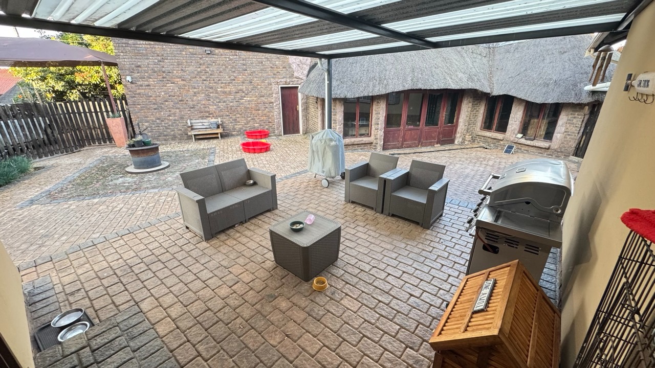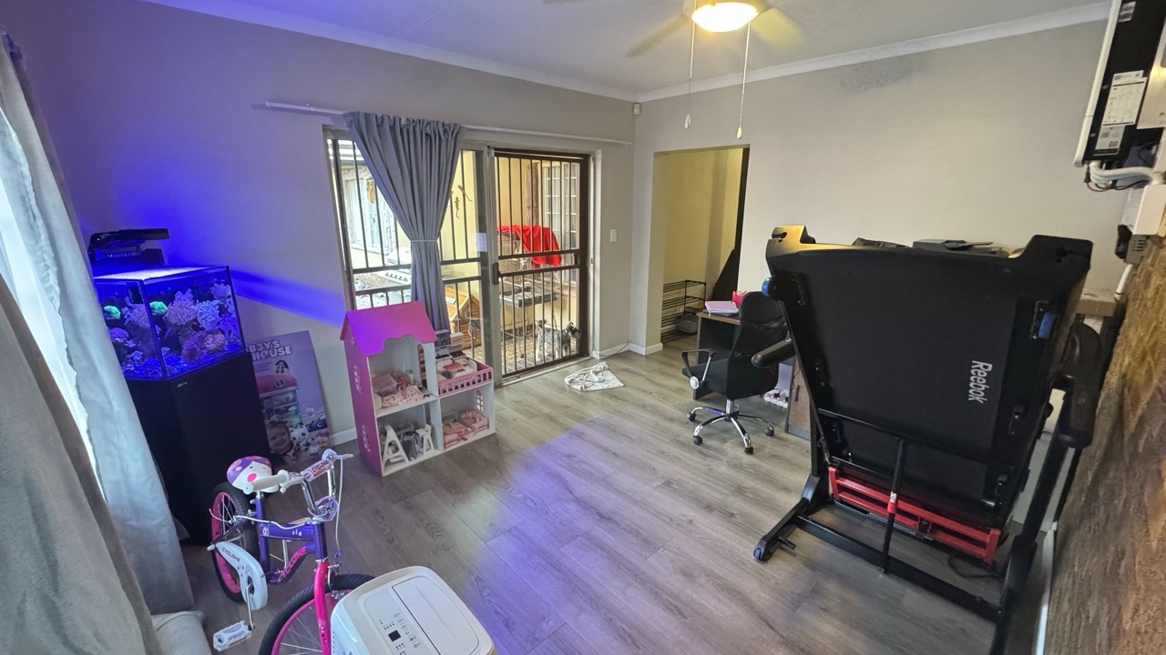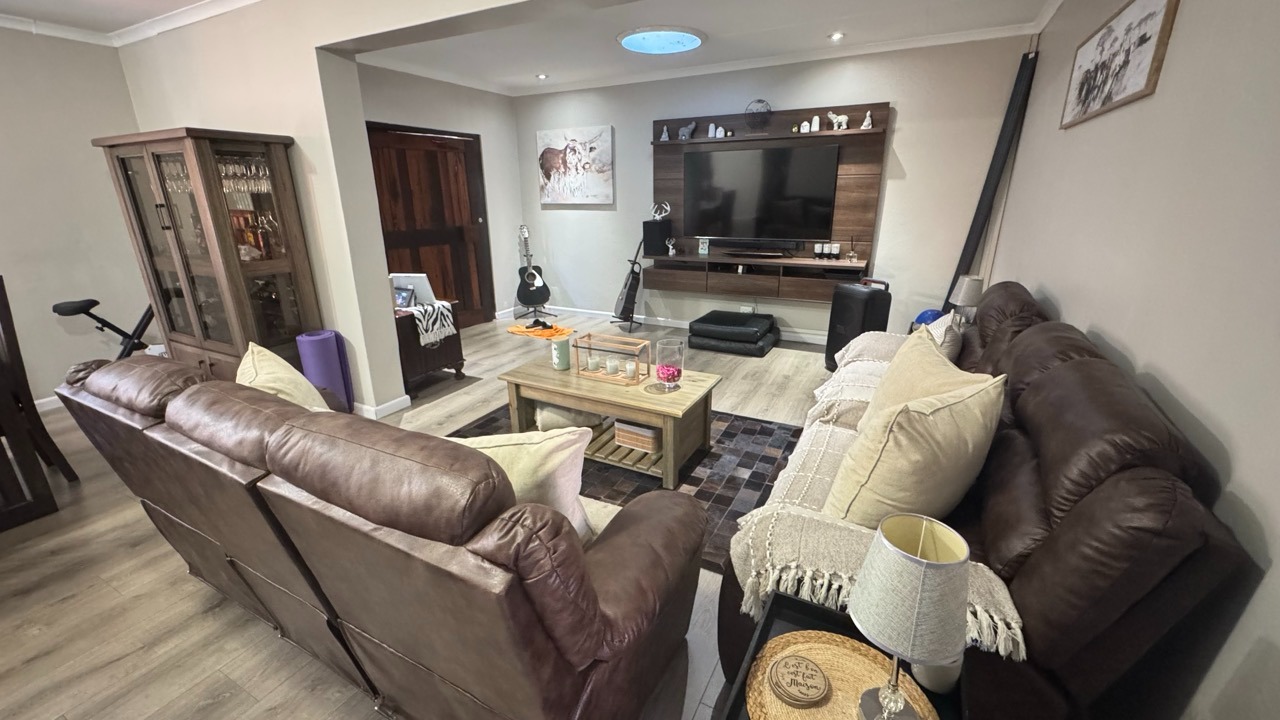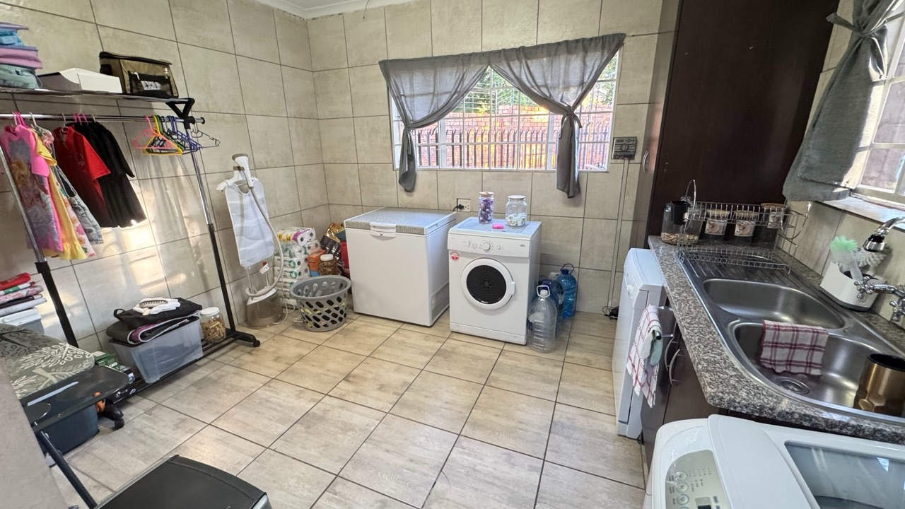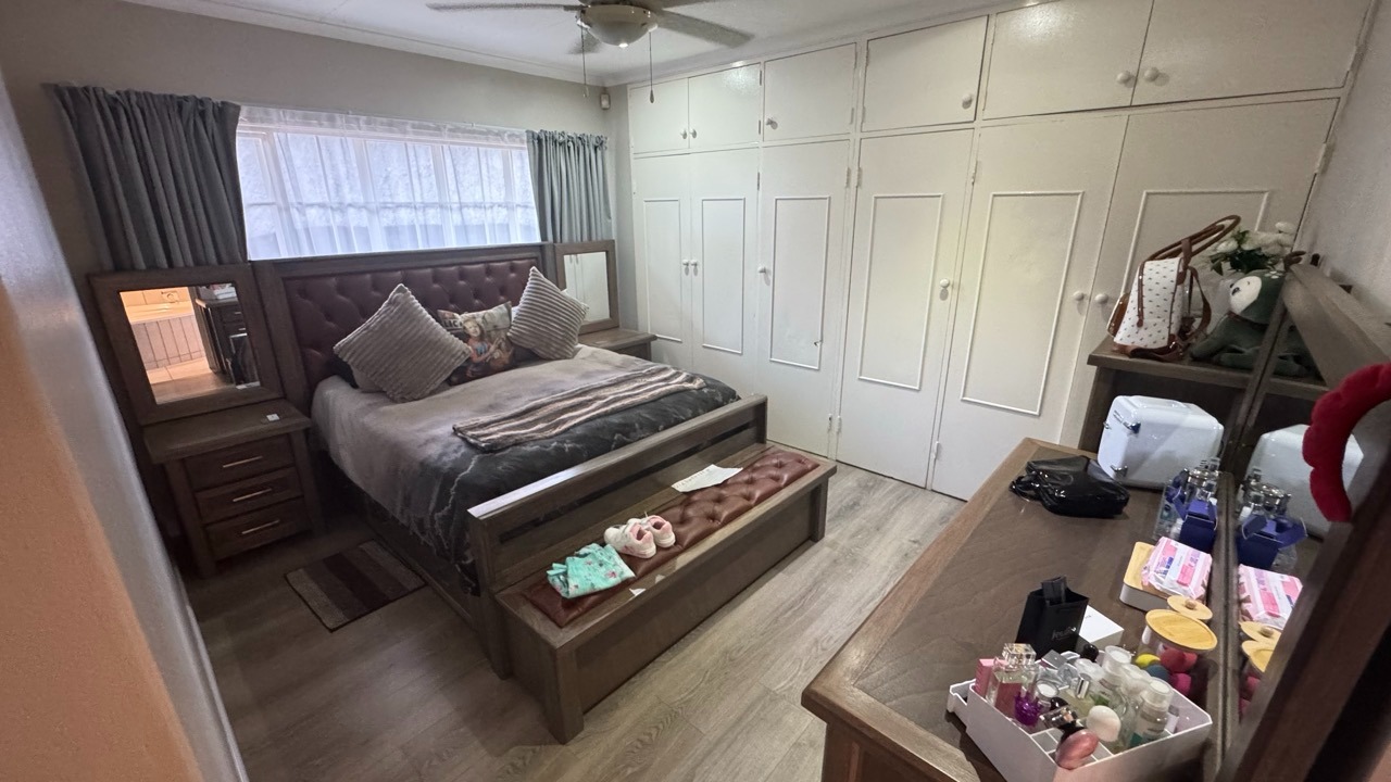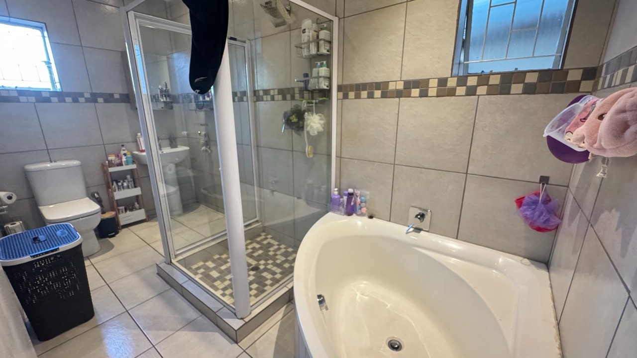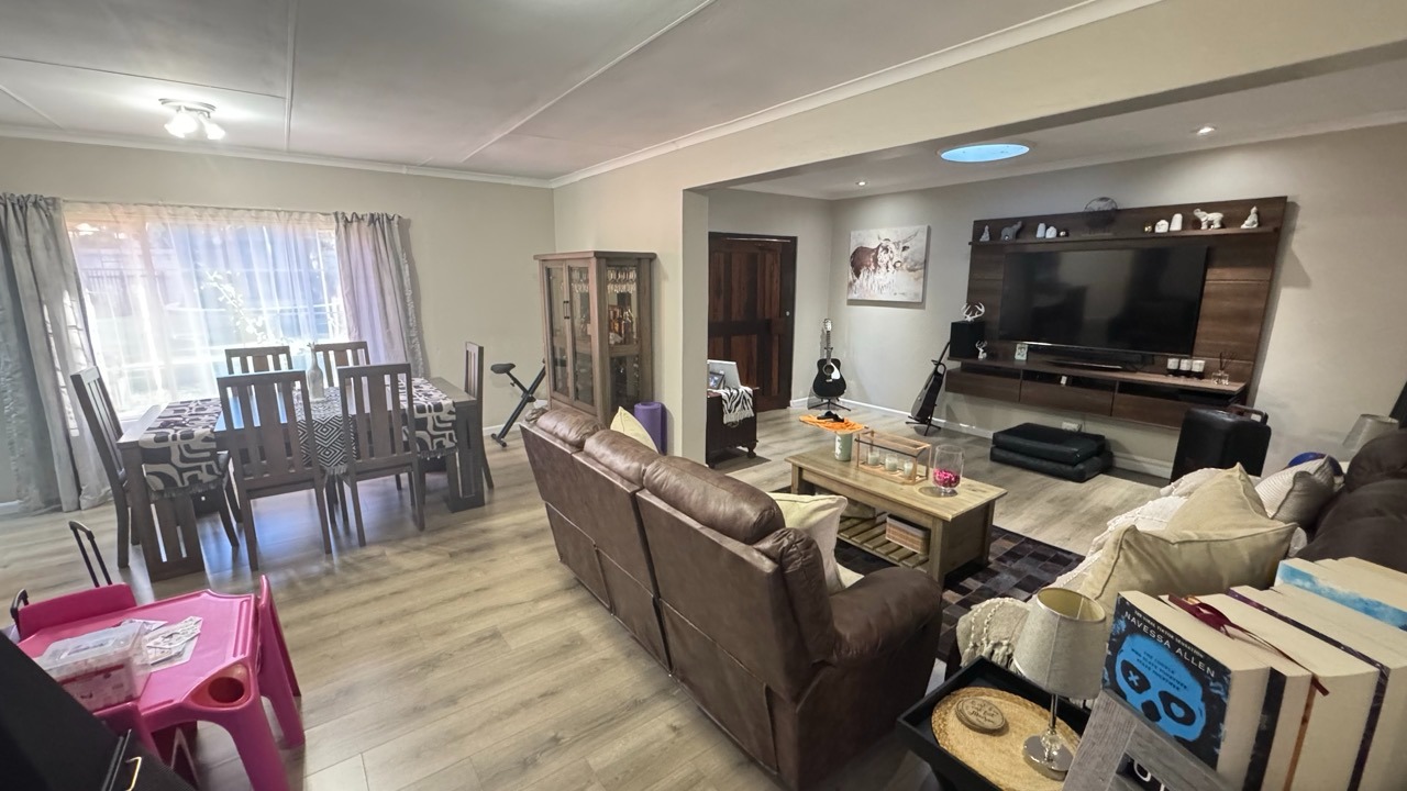 This inviting four-bedroom, two-bathroom family home is nestled in the established suburban area of Rooihuiskraal, Centurion. The property features a distinctive exterior with a textured facade and earthy tones, complemented by a durable tiled roof. A brick paved driveway offers ample covered parking, while a mature shade tree enhances the garden's appeal, creating a welcoming first impression. Inside, the 250 sqm residence boasts an open-plan layout, seamlessly connecting two spacious lounges and a dining area, all with modern wood-look laminate flooring and neutral walls. A contemporary black fireplace adds warmth. The modern kitchen is a highlight, featuring dark wood cabinetry, granite-style countertops, an integrated oven and gas hob, and sleek tiled flooring, with an open pass-through. The home offers four comfortable bedrooms, including one with an ensuite bathroom. Built-in wardrobes provide practical storage. Large windows allow for abundant natural light, creating a bright and airy atmosphere. Outdoor living is well catered for with a private garden and a patio, ideal for relaxation or entertaining on the generous 1004 sqm erf. Four garages ensure ample parking and storage. Pets are allowed, making this an ideal home for animal lovers. Security is paramount, with an alarm system, electric fencing, security gates, and burglar bars providing peace of mind. The home is also fibre-ready, ensuring high-speed internet connectivity. This property combines comfort, style, and security in a desirable Centurion location. Key Features: * 4 Bedrooms, 2 Bathrooms (1 Ensuite) * 2 Lounges, 1 Dining Room * Modern Kitchen with Gas Hob * Open-Plan Living Areas * Wood-Look Laminate Flooring * 4 Garages & Covered Parking * Alarm System & Electric Fencing * Fibre Ready * Private Garden & Patio * Pets Allowed