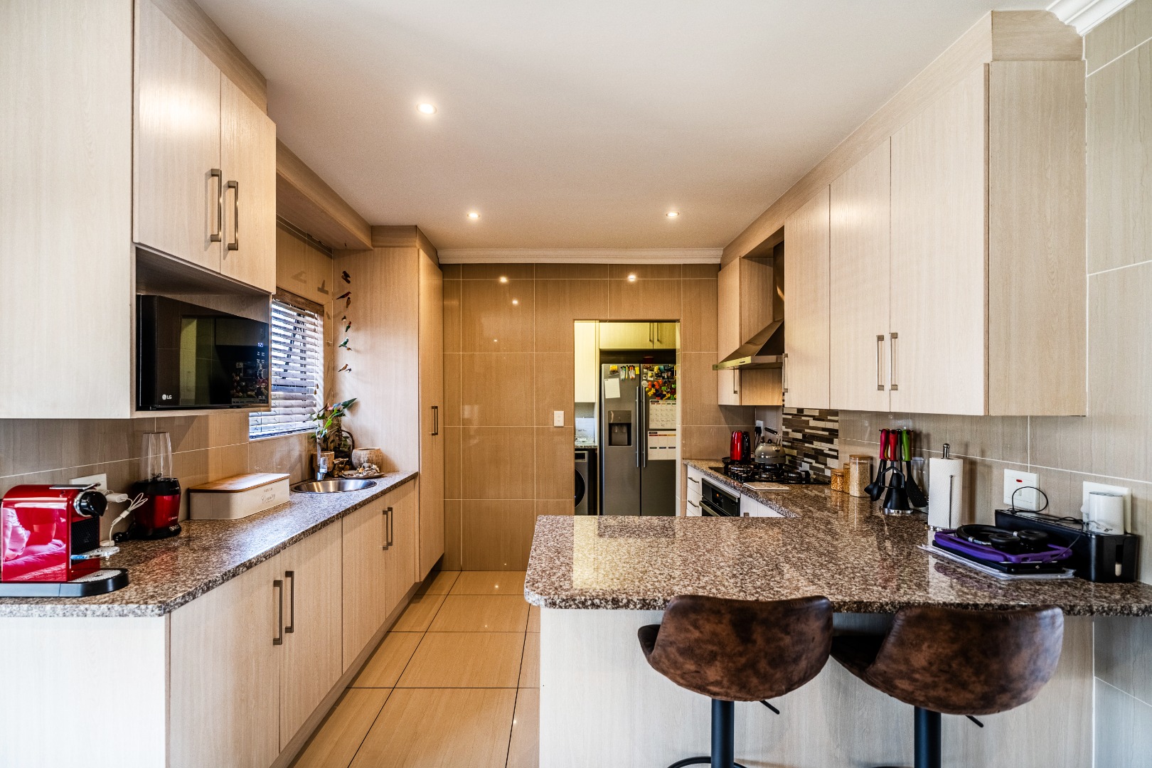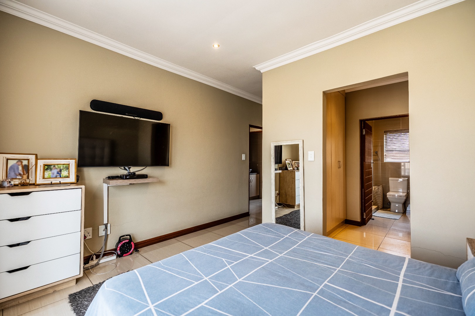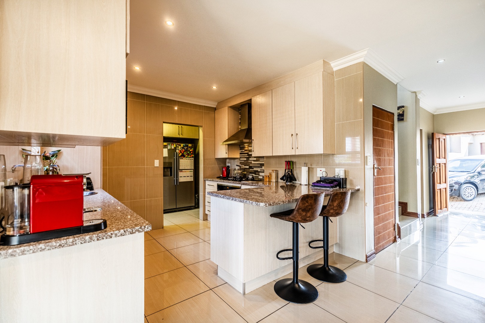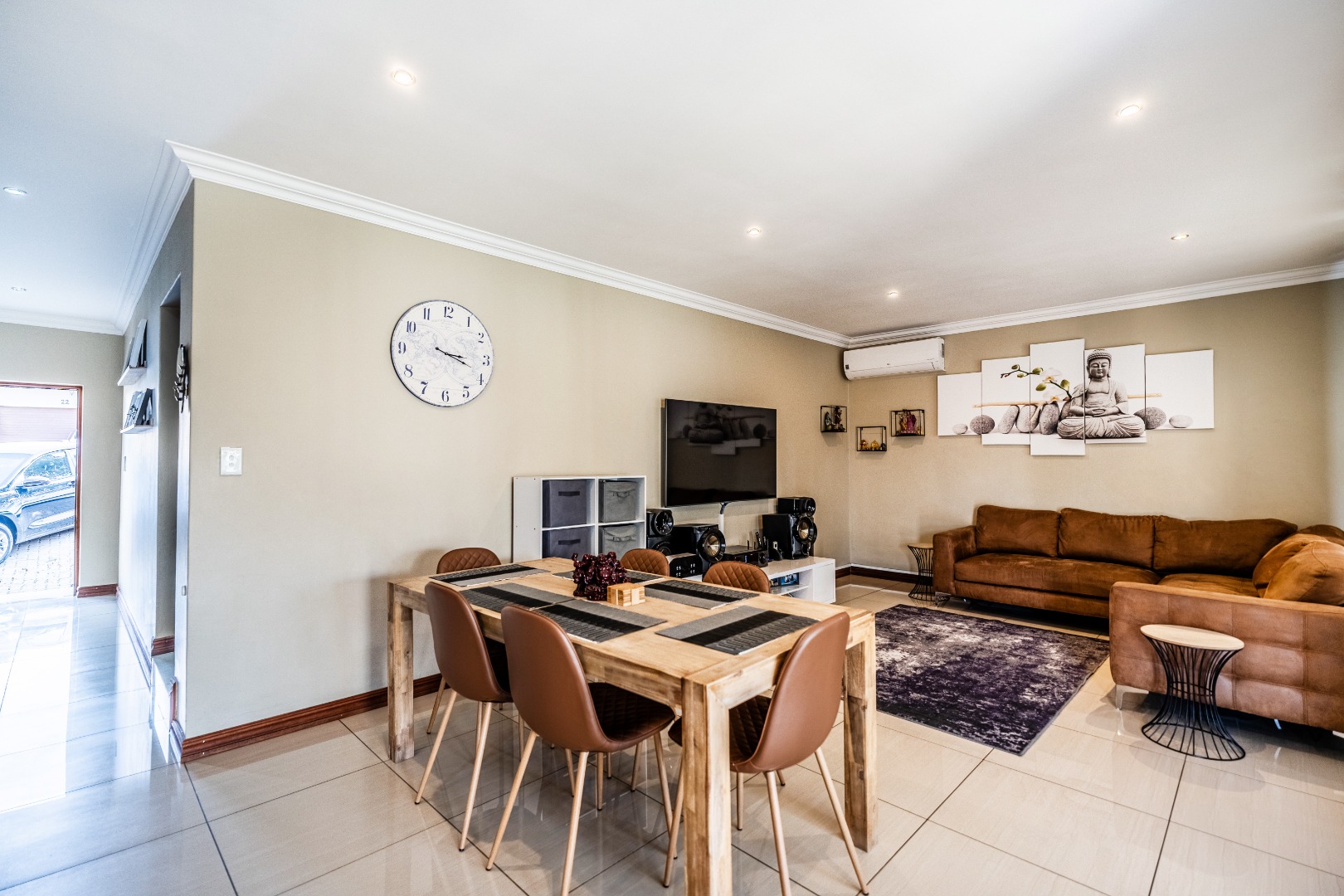 Residents benefit from comprehensive security features, including 24-hour security, an access gate, security post, and electric fencing, providing peace of mind. The home is also equipped with modern sustainability solutions, featuring solar panels, a solar geyser, a battery inverter, and fibre connectivity, ensuring energy efficiency and reliable internet.