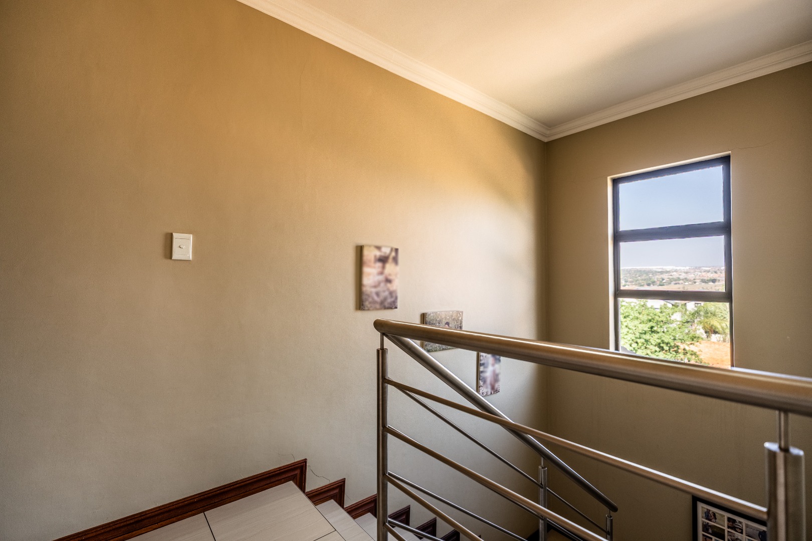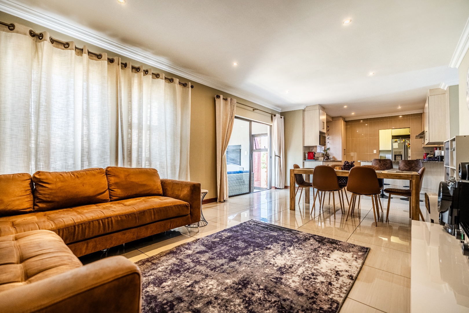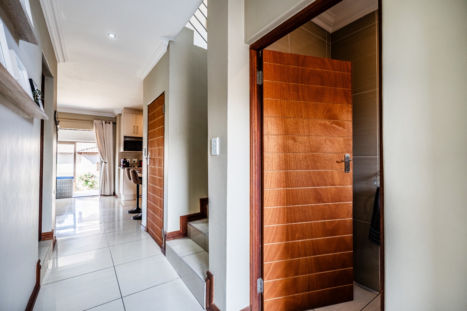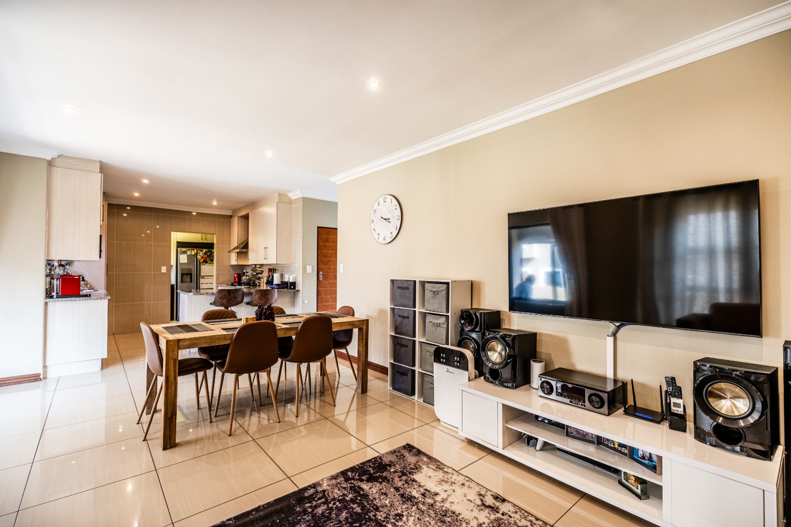 Dual Mandate. This contemporary two storey residence, nestled within the sought after Thatchfield Hills security estate in Centurion, offers an exceptional family lifestyle with access to a golf course. The property boasts appealing kerb appeal with its modern grey stucco exterior, tiled roof accents, and a paved front area leading to an integrated double garage. Step inside to discover an inviting open plan living environment, seamlessly connecting the lounge, dining area, and a dedicated family TV room, with aircon. This bright space features sleek tiled flooring, elegant crown molding, recessed lighting, and large sliding glass doors opening to the outdoor patio.
