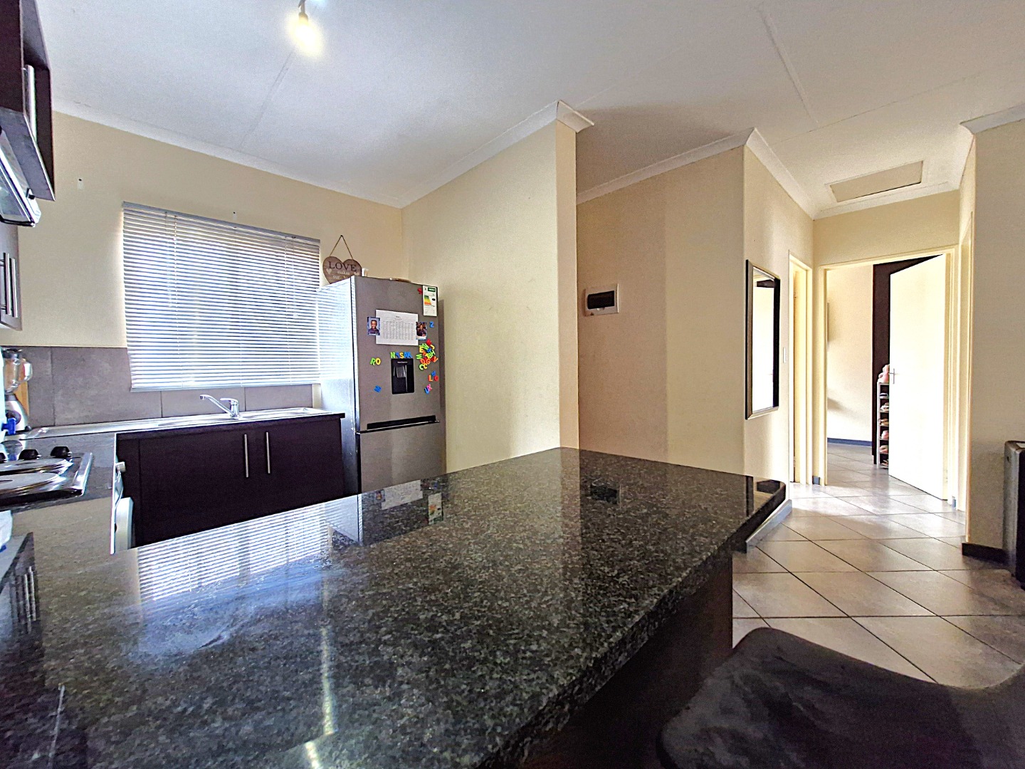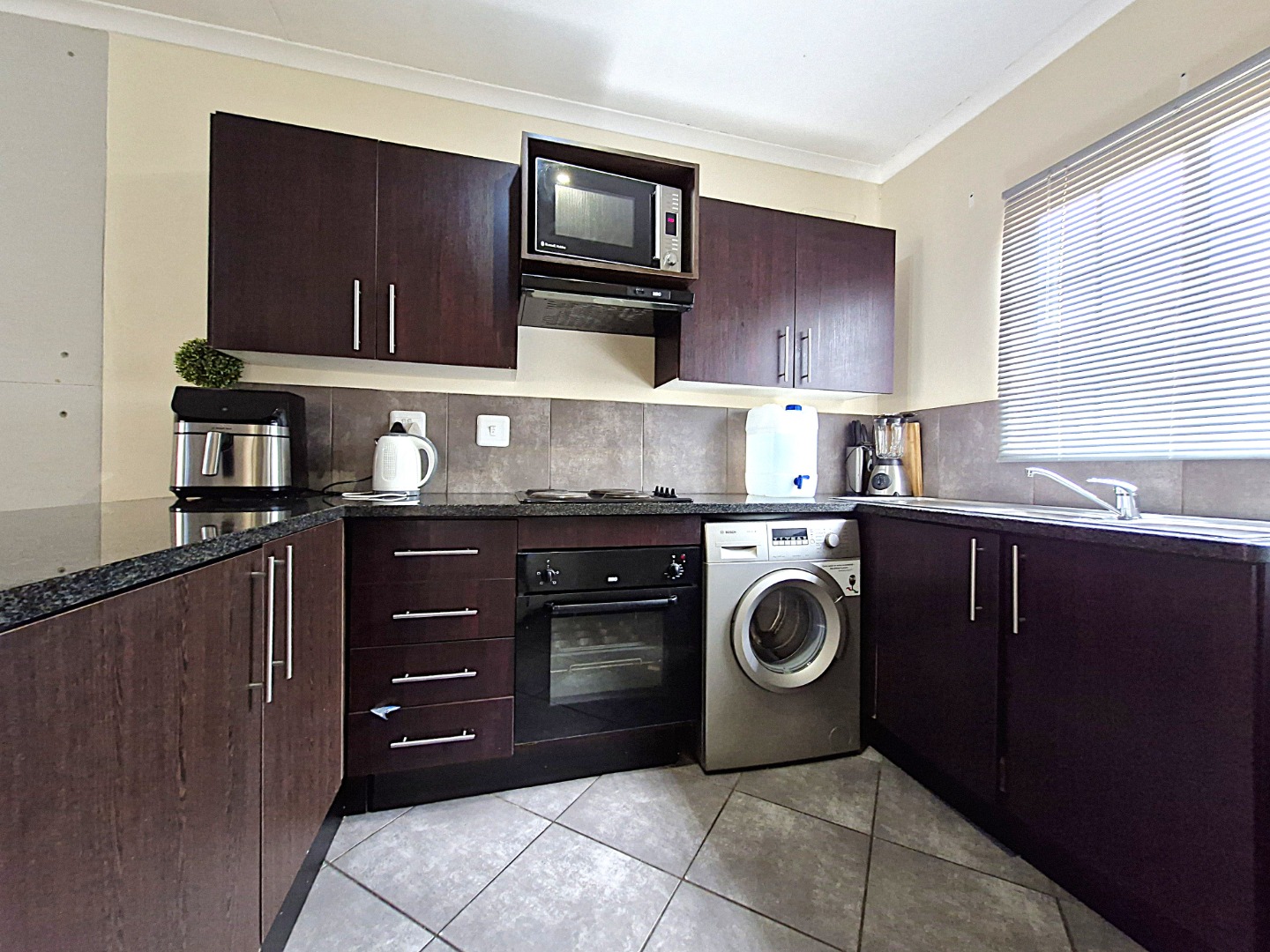 The modern hybrid geyser provides both solar and electric options for added efficiency. Inside, the home boasts low-maintenance tiled flooring throughout, while the kitchen stands out with its sleek and durable granite countertops.