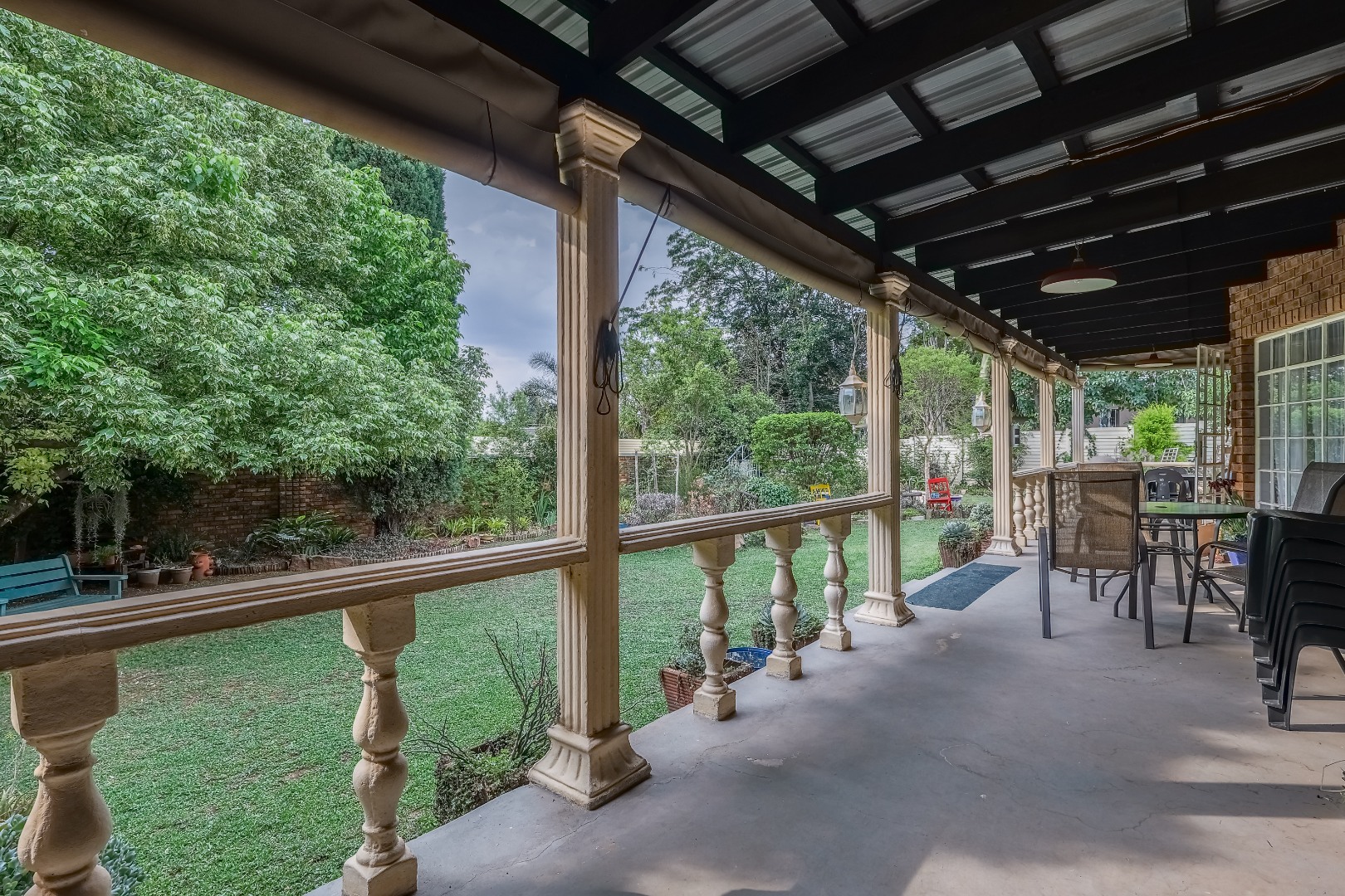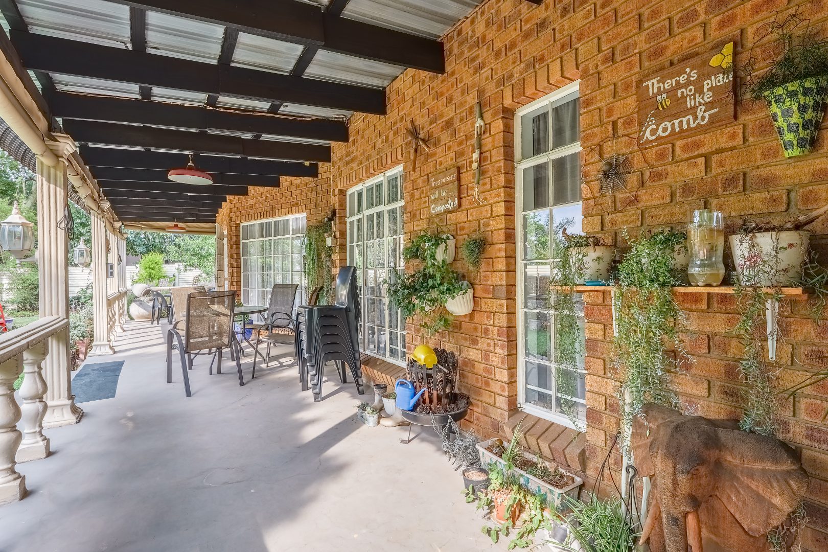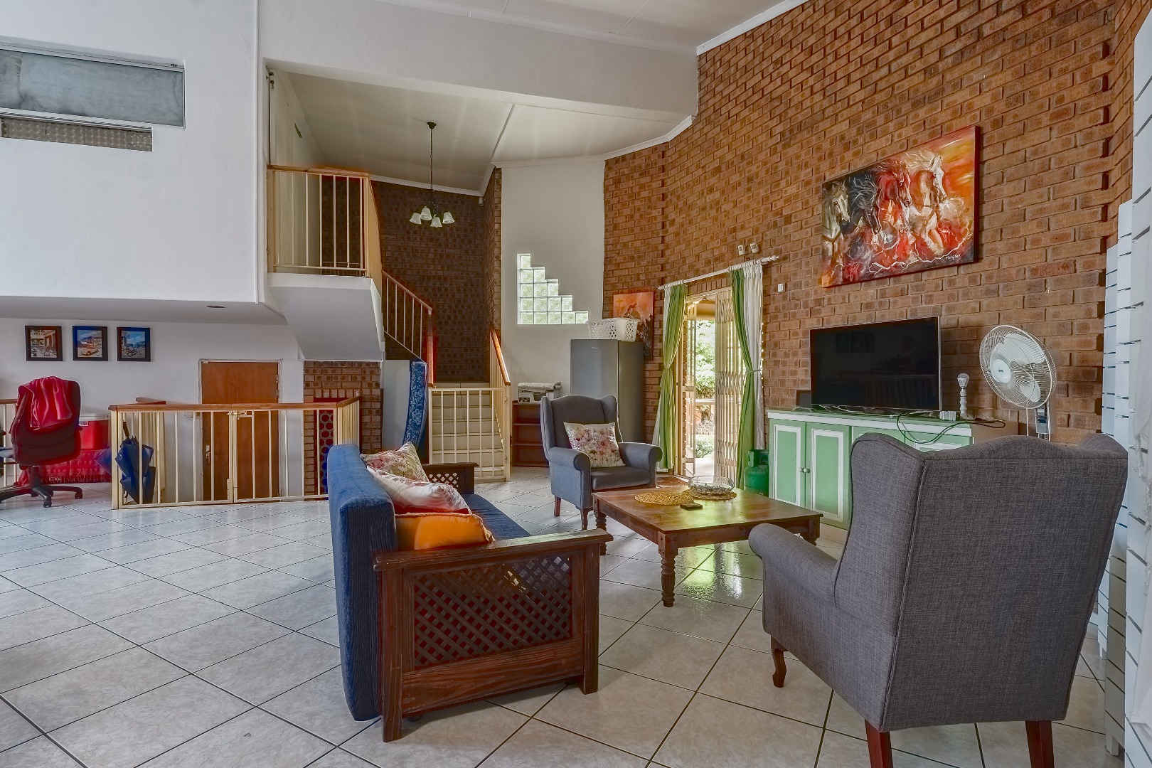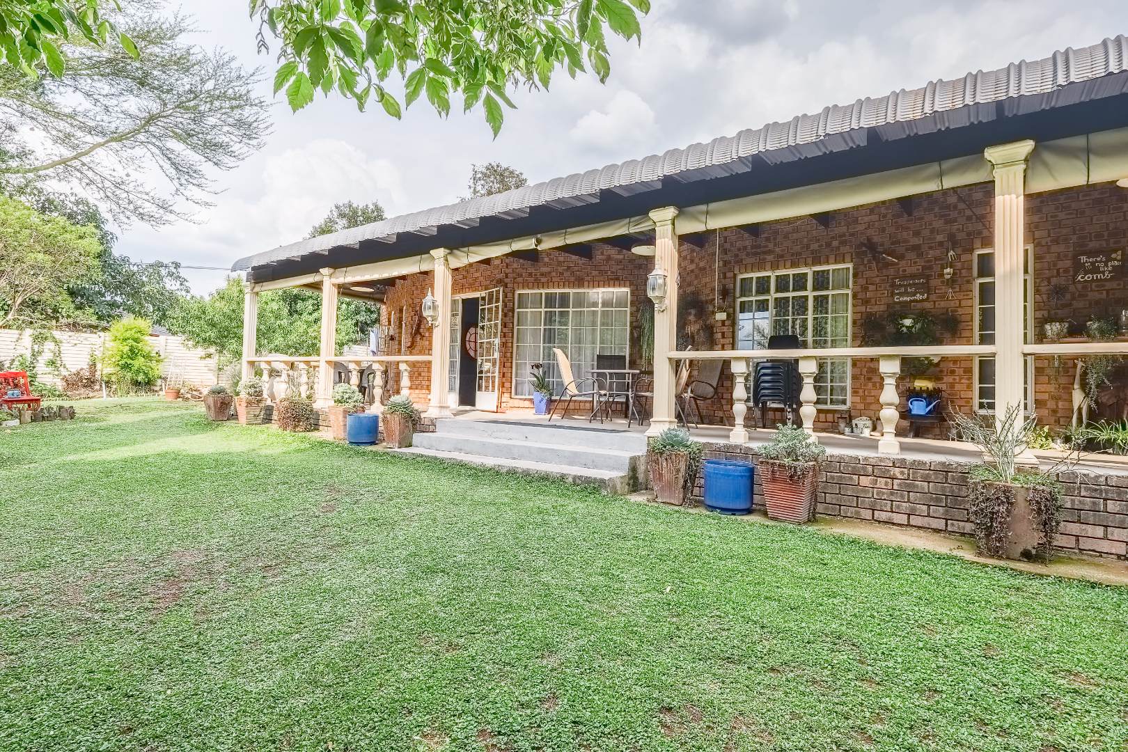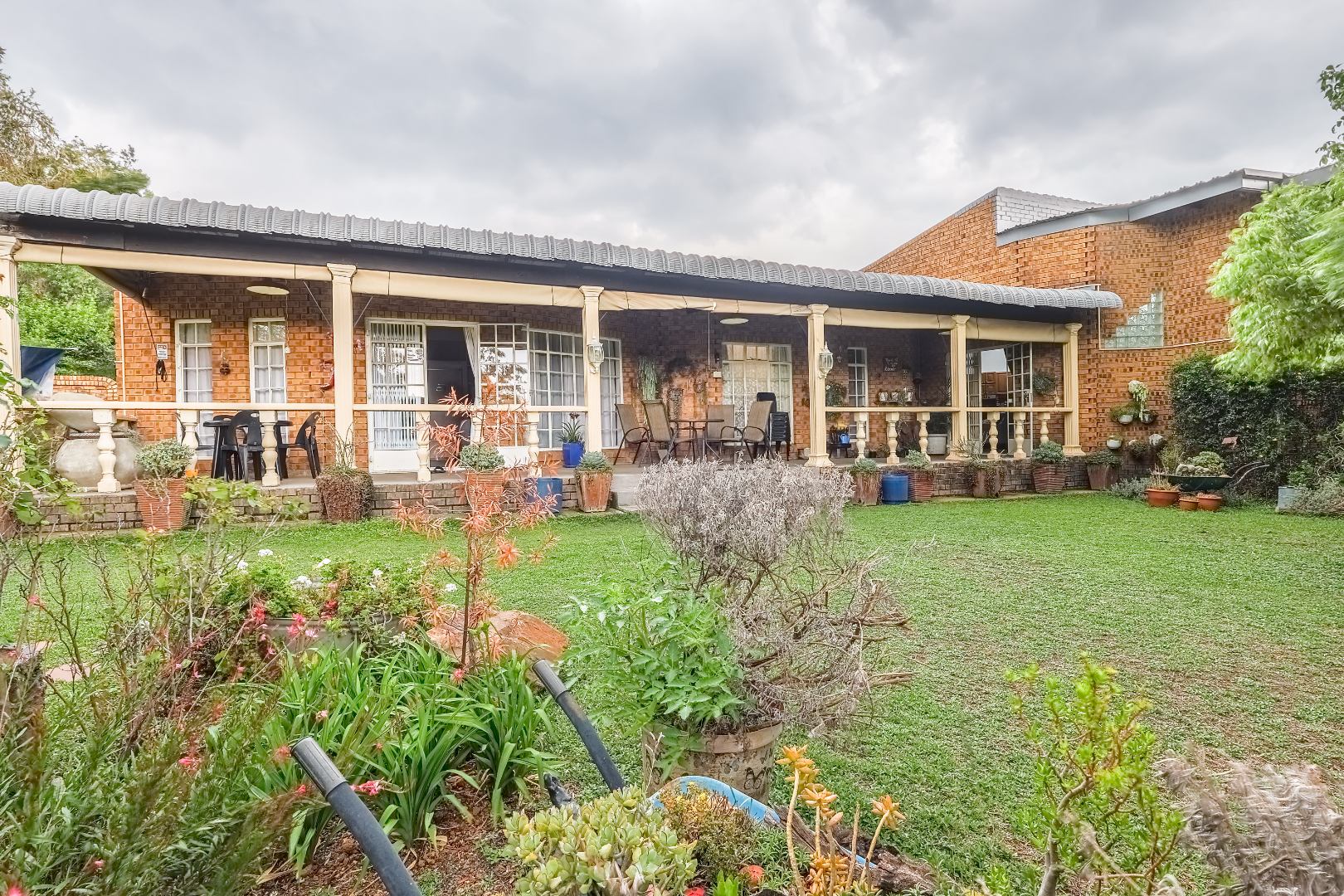 This impressive residential property in The Reeds, Centurion, offers a unique blend of space and character, ideal for a large family or versatile living. The brick exterior, featuring distinctive circular windows and a long, covered veranda, creates an inviting kerb appeal. Set on a generous 1030 sqm erf, the mature garden and spacious backyard provide ample outdoor enjoyment. Inside, the substantial 350 sqm floor plan reveals multiple living areas, including three lounges and two dining rooms. Durable tiled flooring, characterful exposed brick walls, and high vaulted ceilings create an inviting open-plan flow, enhanced by natural light from large sliding doors. With four distinct kitchens and 2 dedicated flatlet, this home offers unparalleled convenience and potential for multi-generational living or rental income. Accommodation includes six well-proportioned bedrooms and five bathrooms, three of which are en-suite, ensuring privacy and comfort. The versatile layout provides ample personal space, adaptable to various family needs. Outdoor living is a highlight, with expansive covered patios perfect for relaxation and entertaining, overlooking the established garden. Practical amenities include a three-car garage, an additional parking space, and a paved driveway, ensuring ample secure parking. Pets are welcome, making this a true family haven. Security is paramount, featuring 24-hour security, CCTV surveillance, an alarm system, electric fencing, and an access gate. Additional peace of mind comes from security gates and burglar bars. The property is also fibre-ready, ensuring high-speed internet connectivity.