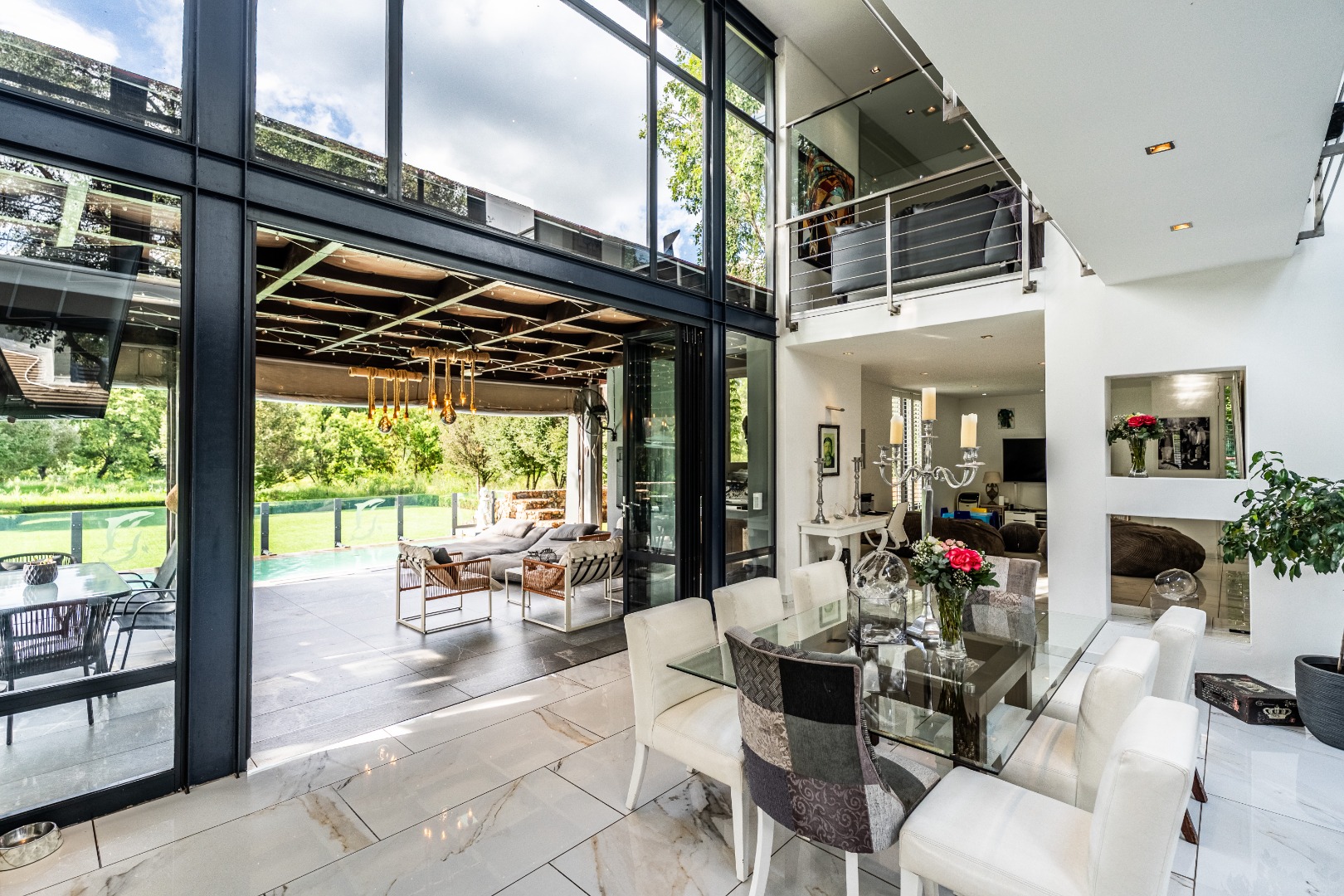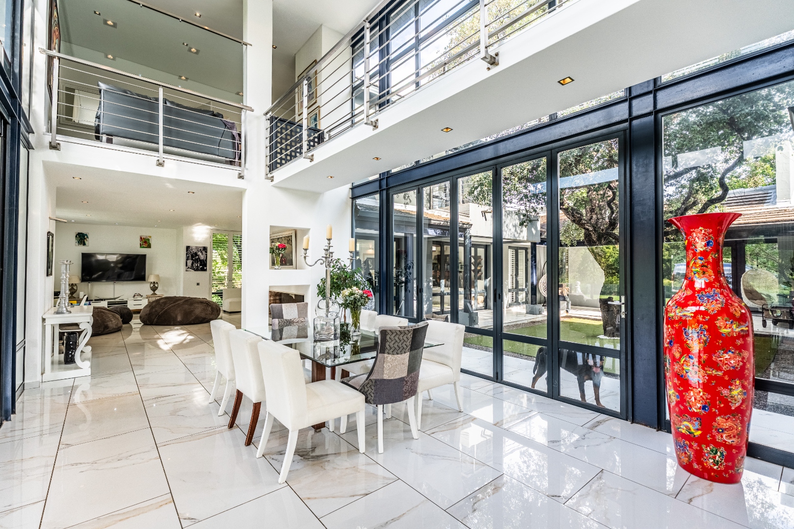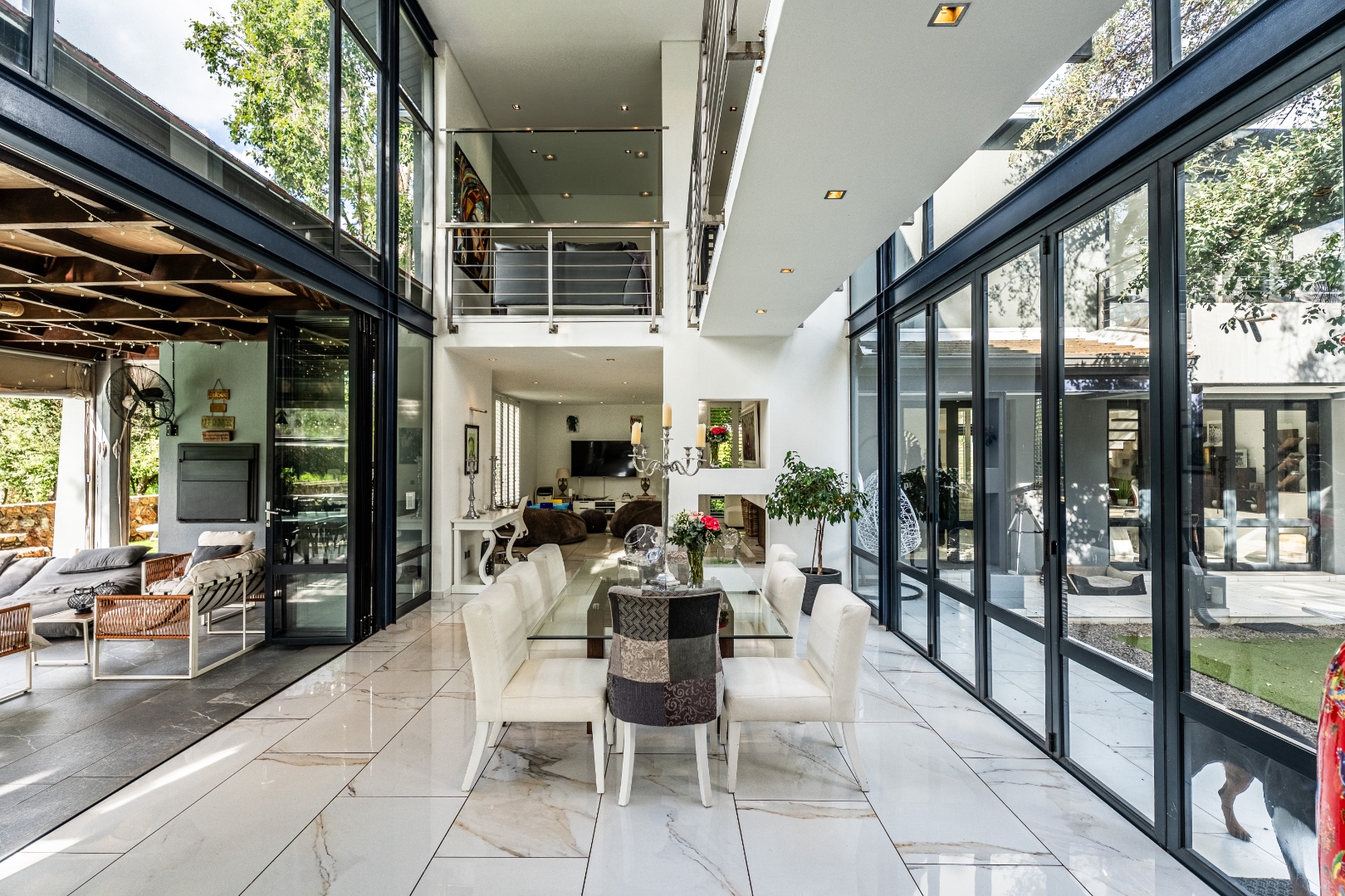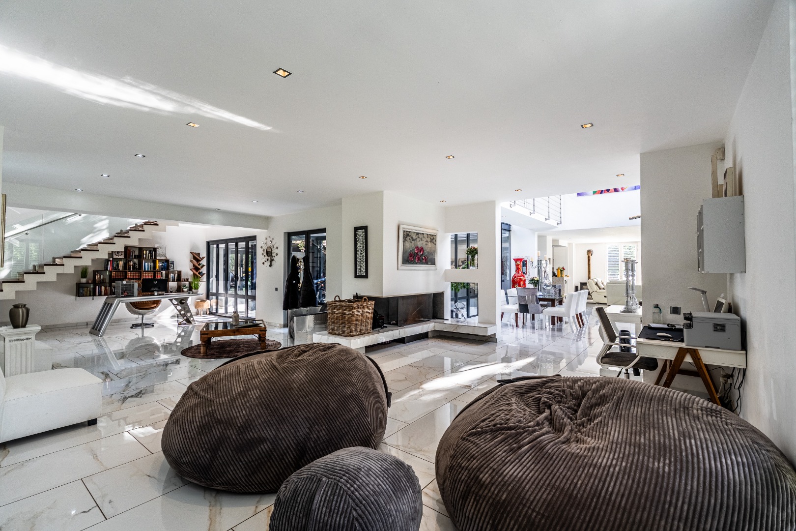 - Large open plan living space raps around the courtyard connected with large stack doors for easy flow and creates space for a study area, TV room, dining area with double volume and family room boasting 2 fireplaces