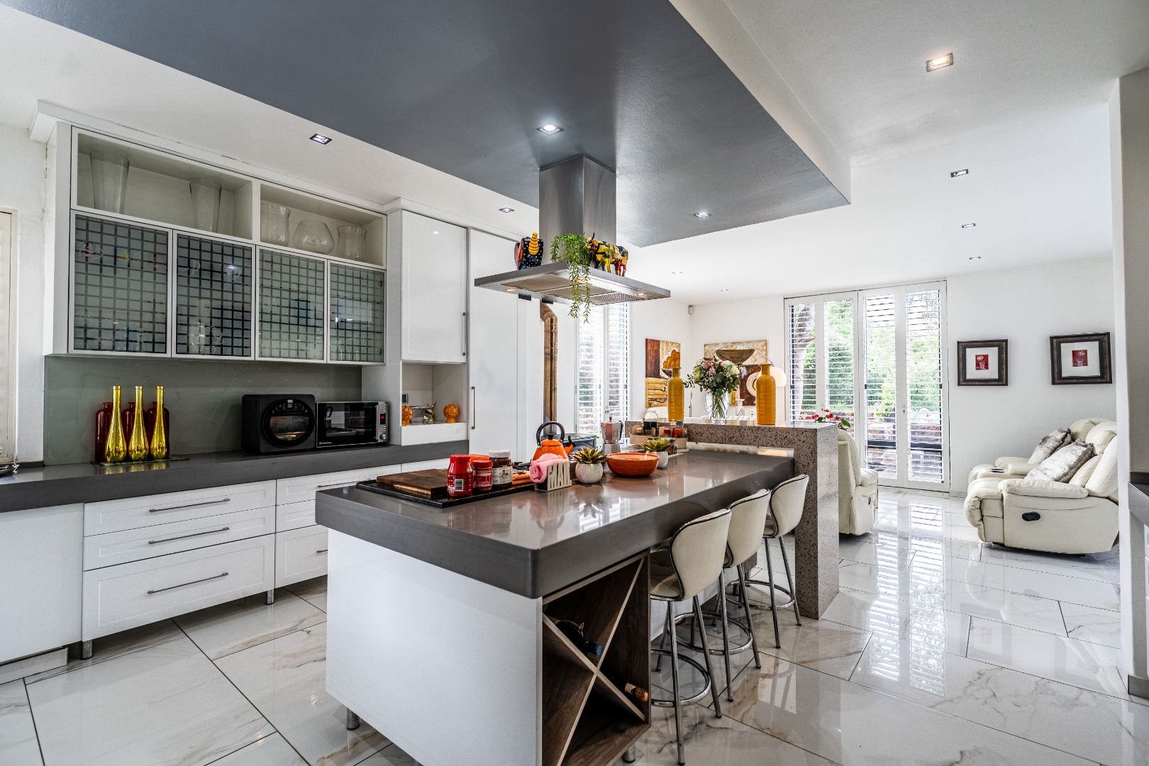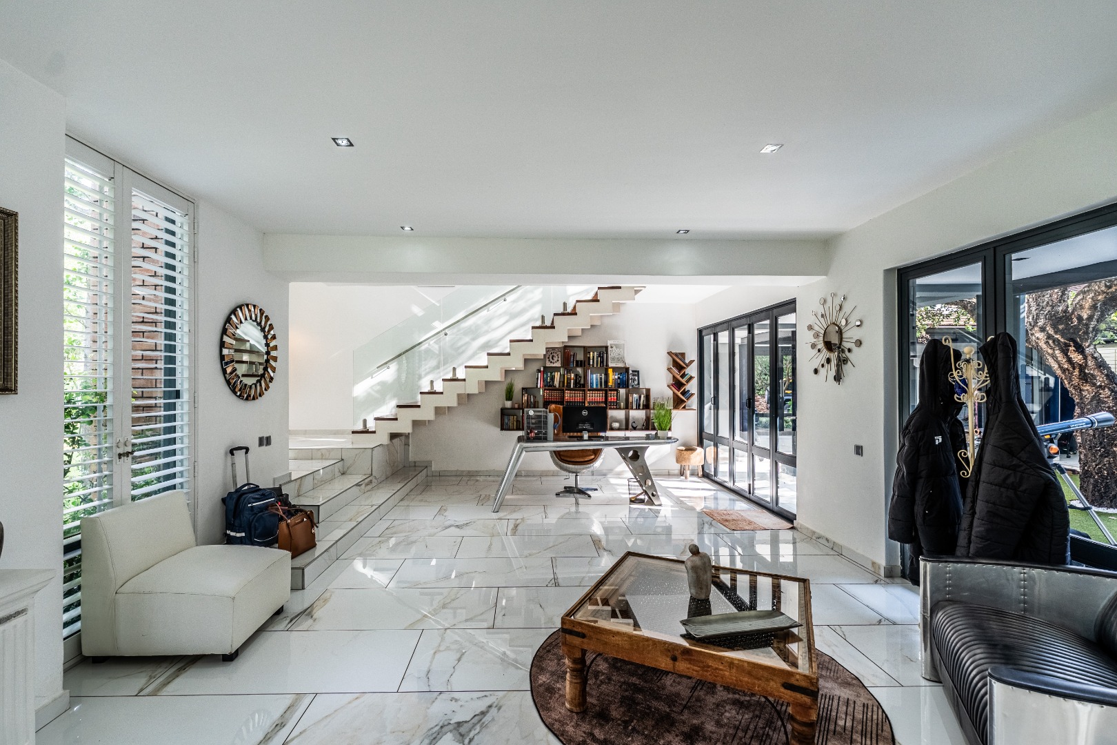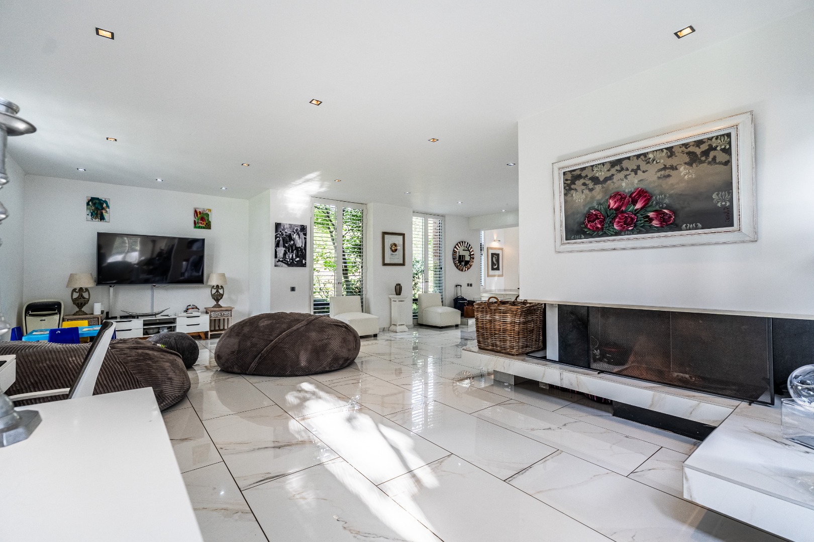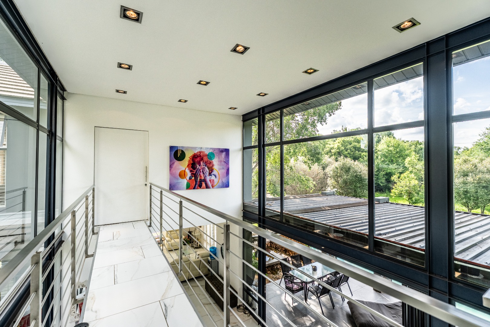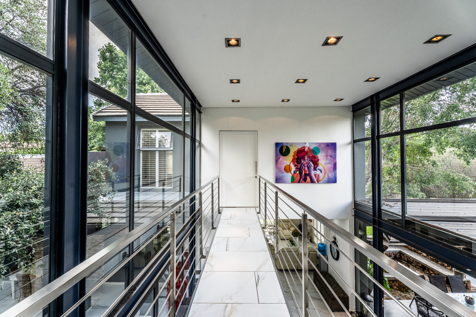 - Large open plan living space raps around the courtyard connected with large stack doors for easy flow and creates space for a study area, TV room, dining area with double volume and family room boasting 2 fireplaces