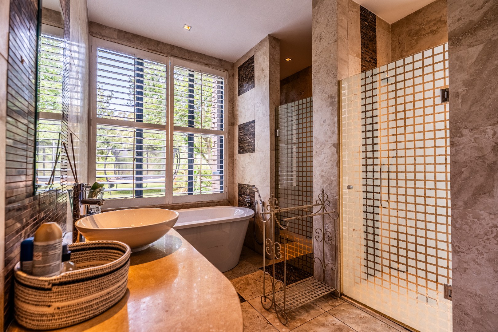 - 2 Bathrooms caters for the bedrooms upstairs, the main is en-suite with open plan cupboards