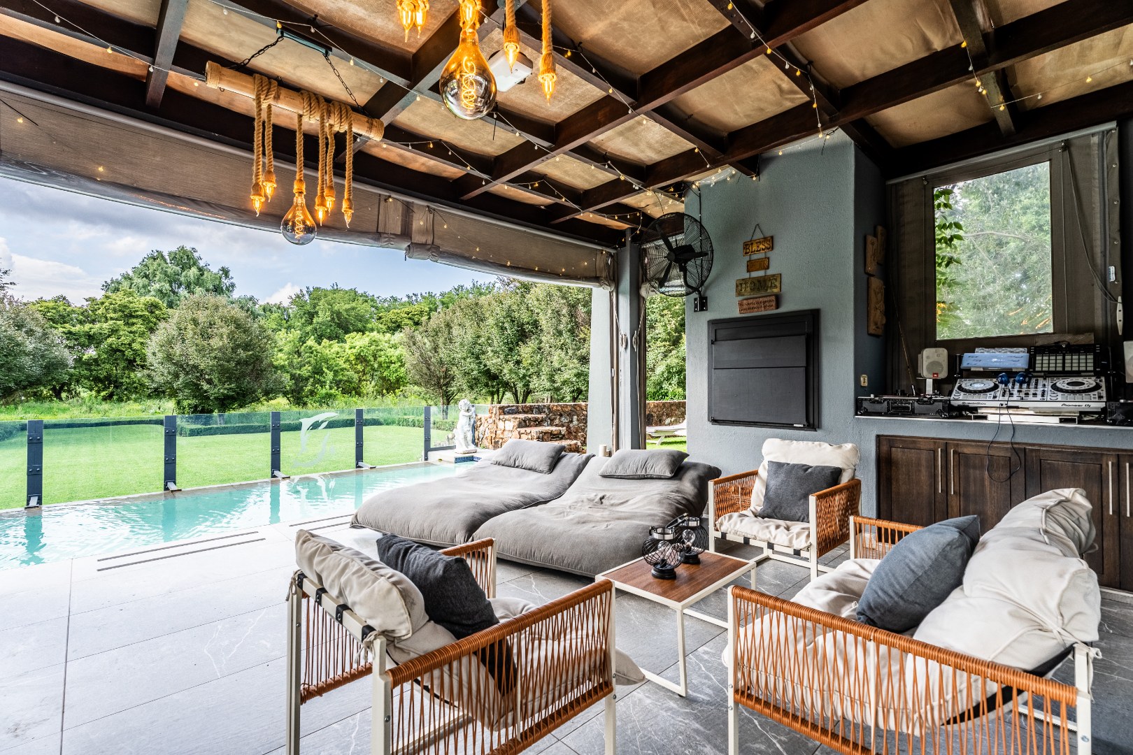 - Large undercover entertainment area with space for a dining area, lounge area, built in braai that overlooks the sparkling pool