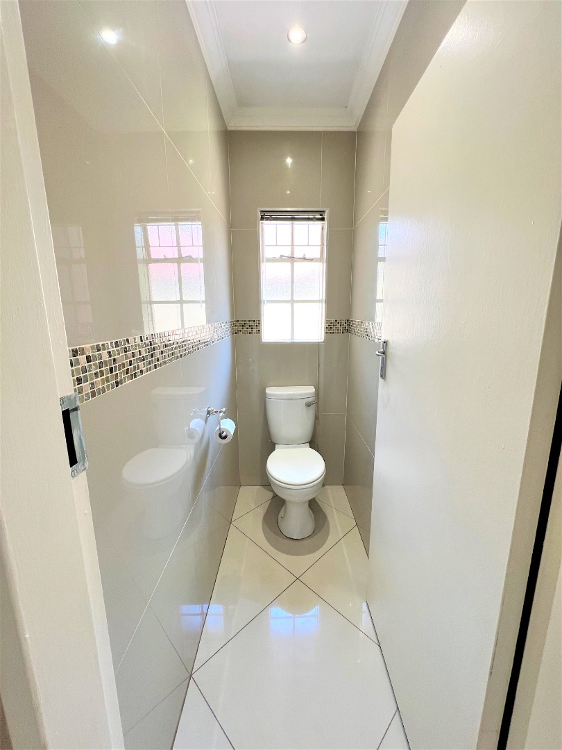 This stunning modern 2 Bedroom Town House is ideal for a young couple or your first home, nestled in the ever sunny historic Valhalla. As you enter the front door you will find a spacious lounge with a open plan kitchen and dining area with modern finishes, beautifully tiled and well lit with downlights and a washing machine connection. Just outside through the lounge sliding door is a patio with a build in braai and a low maintenance spacious garden. The main bedroom is sunny, spacious and has sun throughout the day, both bedrooms have built in cupboards, beautiful tiled floors and down lights. There is one bathroom with a bath and a separate toilet. This stunning complex is very private as their are only 5 units and there is also a shared borehole and prepaid electricity.