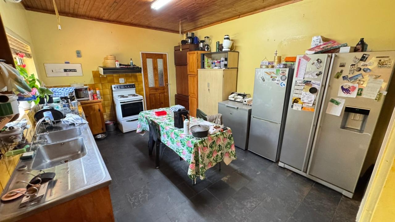 Step inside and you'll find a welcoming interior that's ready for your personal touch. The home features three comfortable bedrooms and one bathroom, perfect for family living. There's a spacious lounge area, complete with a cozy fireplace, ideal for those cooler evenings. You'll also find a dedicated dining room, making family meals a breeze. The kitchen is a good size, boasting wooden cabinetry, an air conditioning unit, and even a charming stained-glass front door, adding a unique character.