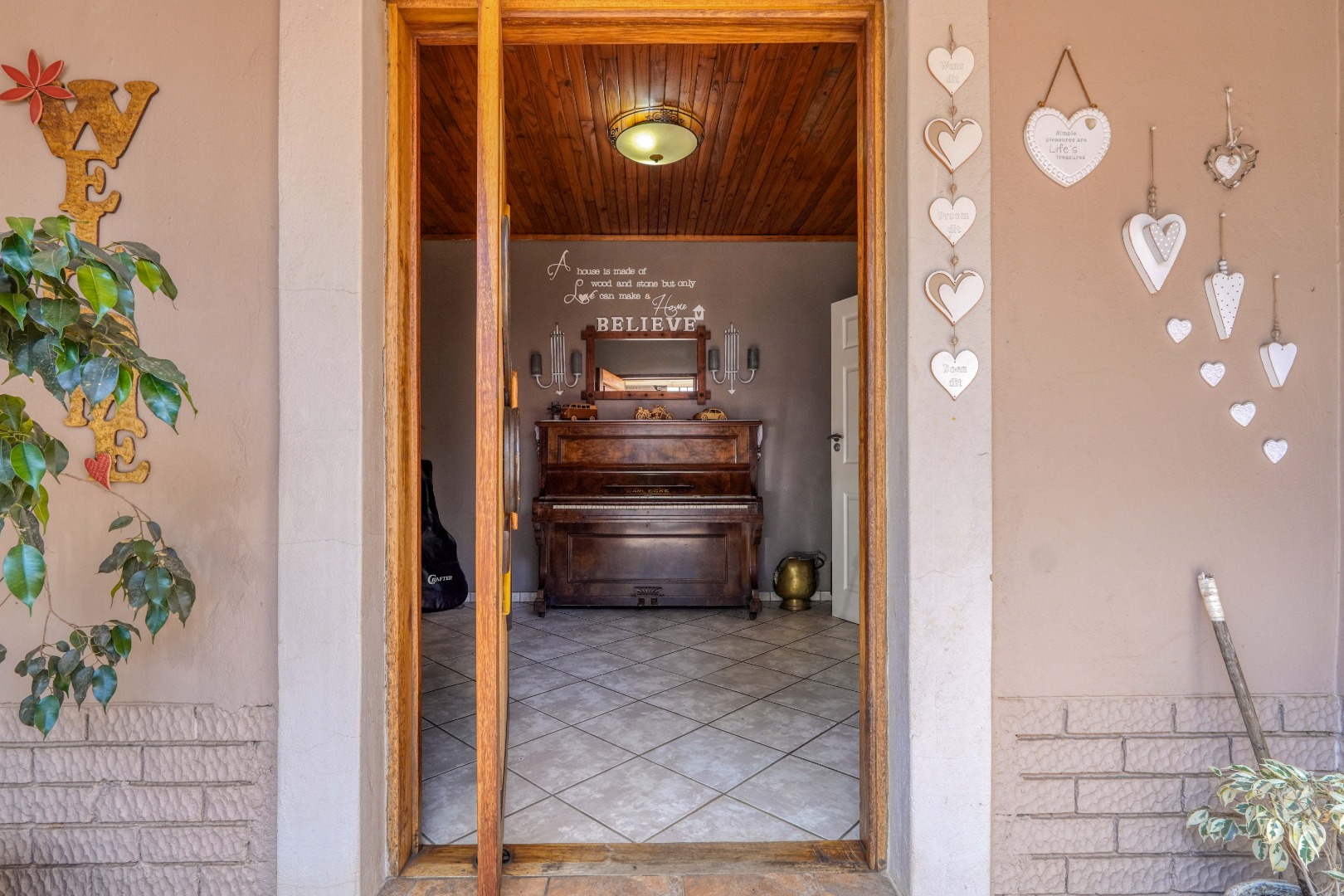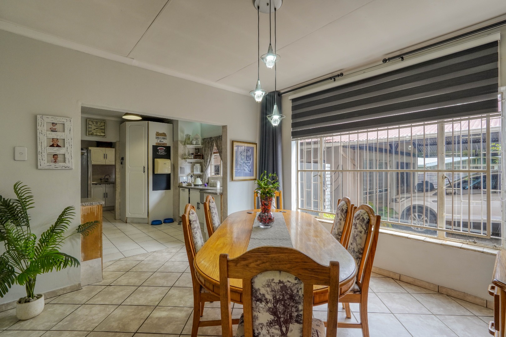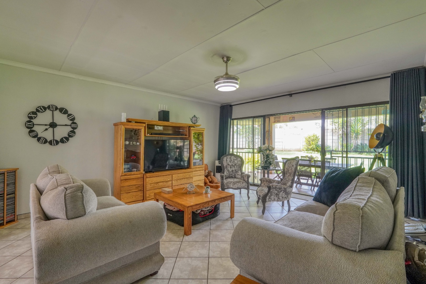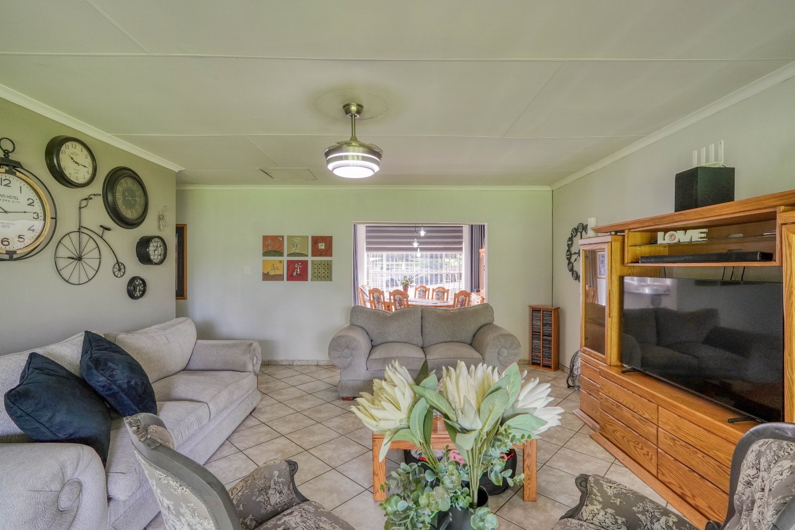 On the one side of the property, you’ll find a generous entertainment room designed for hosting. This space includes a lounge area, a built-in bar, and a braai, and also opens directly onto the patio, creating a seamless indoor-outdoor gathering zone.