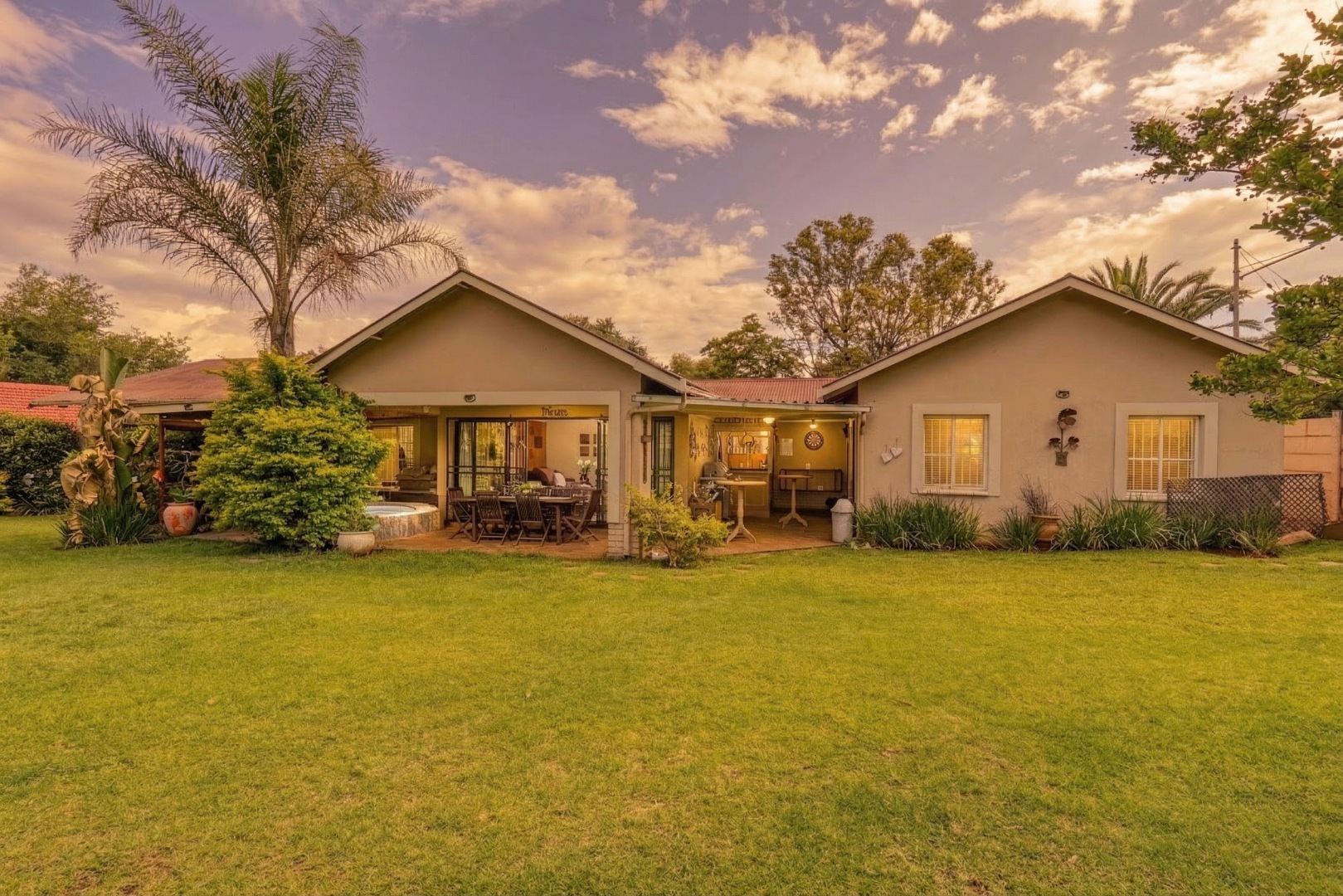 On the one side of the property, you’ll find a generous entertainment room designed for hosting. This space includes a lounge area, a built-in bar, and a braai, and also opens directly onto the patio, creating a seamless indoor-outdoor gathering zone.