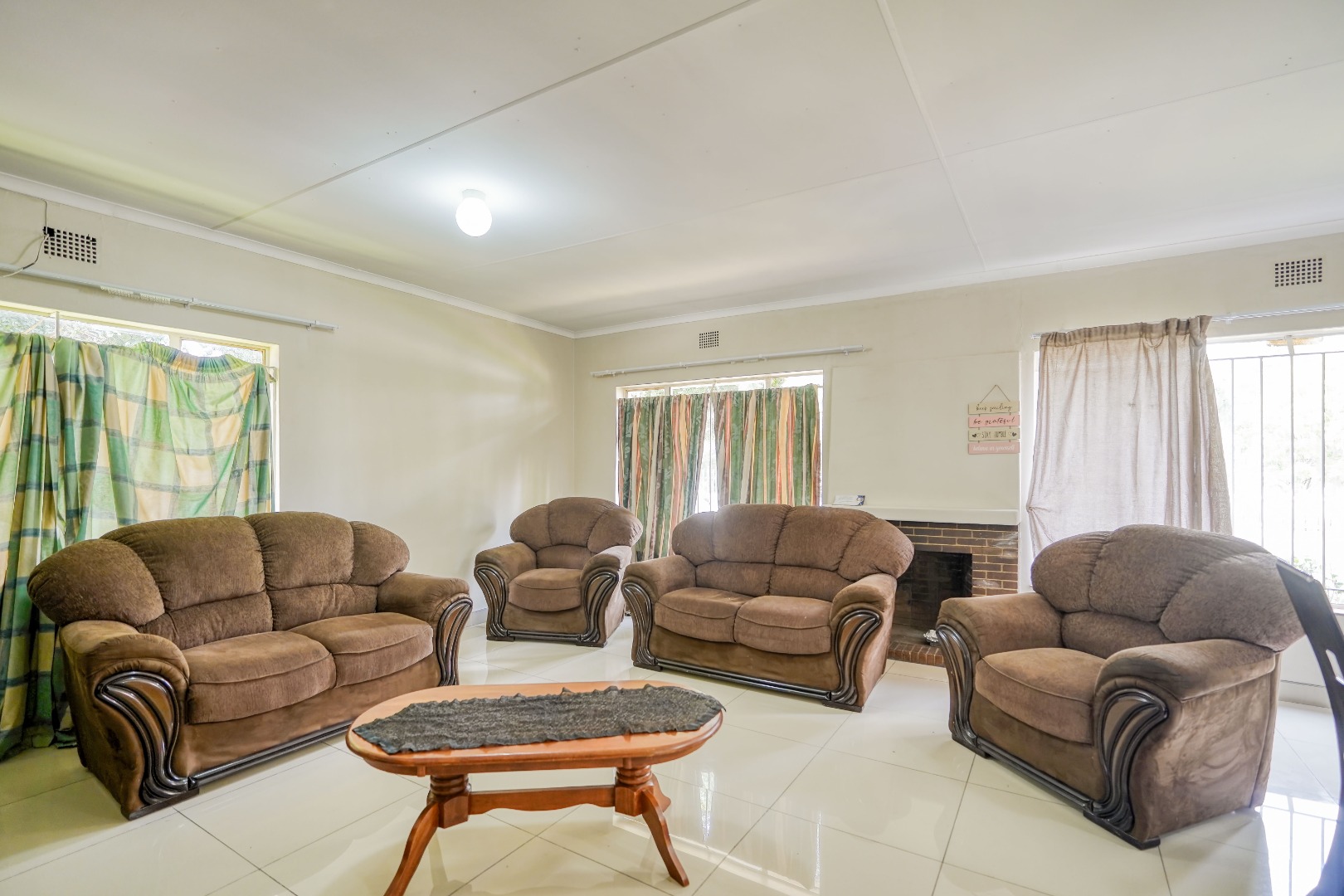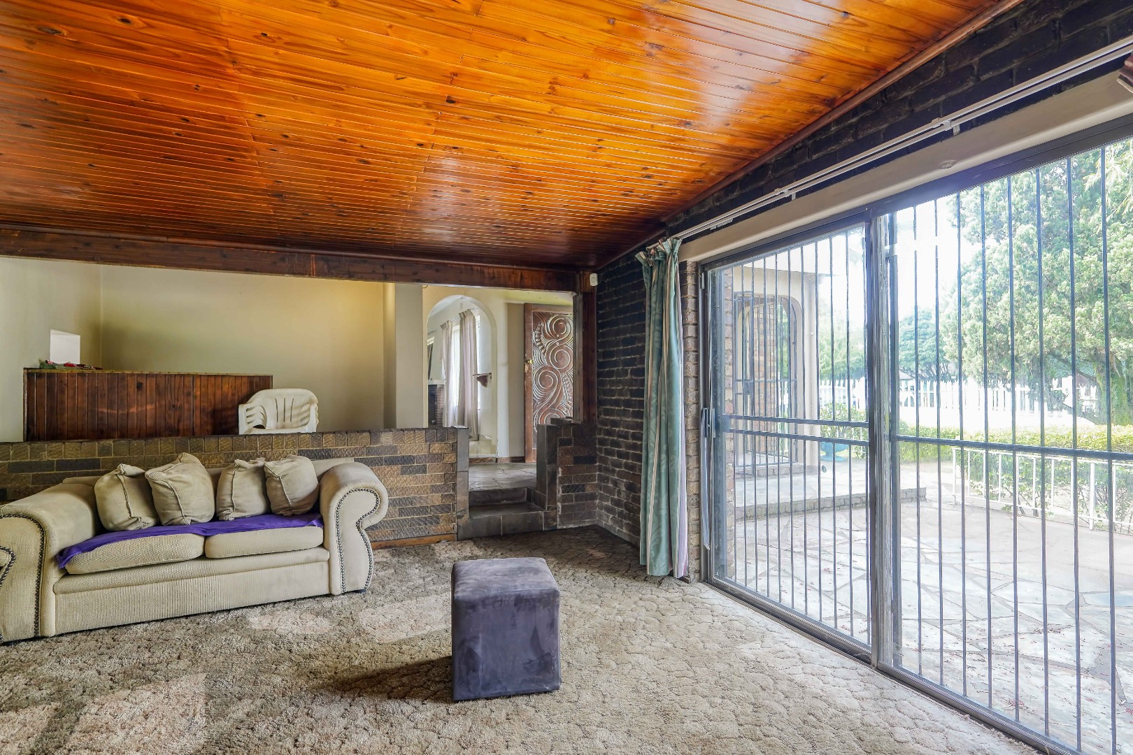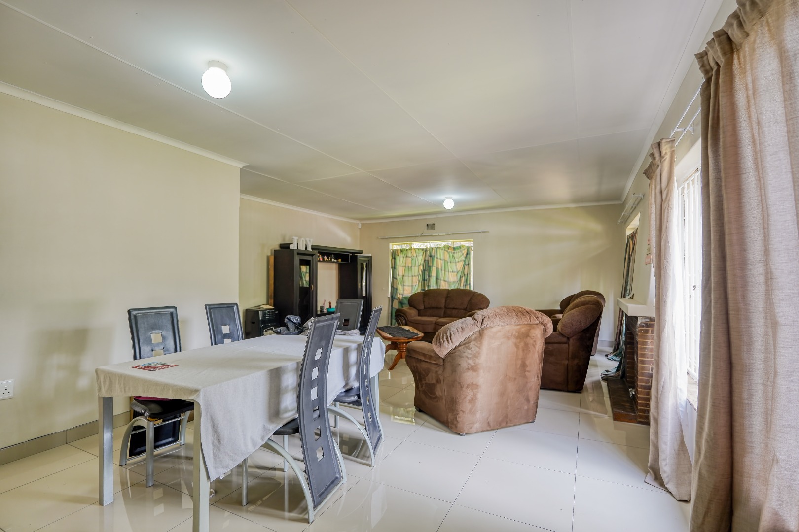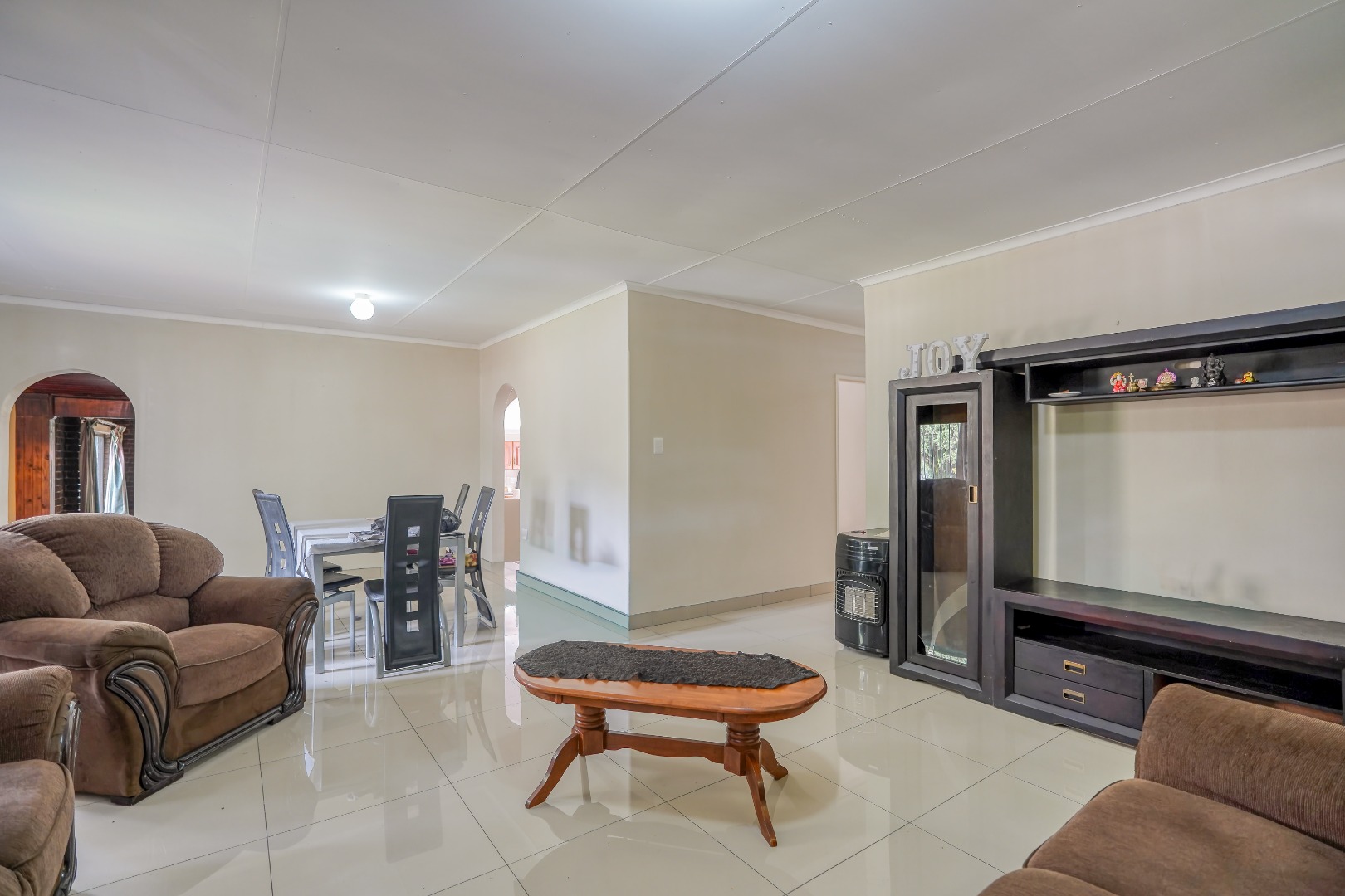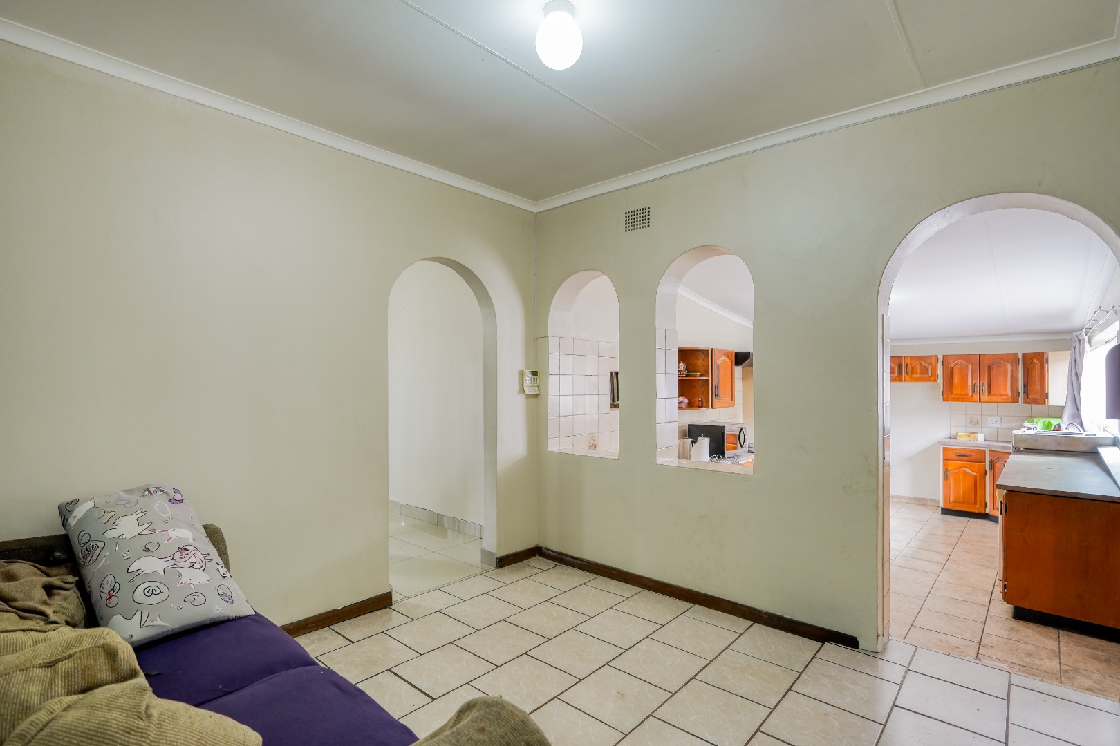 As you enter the home, a lounge sits to your left while a second lounge and dining area is positioned to your right, creating two separate living spaces from the start. From the lounge/dining room, a main hallway leads further into the home, connecting three of the bedrooms along with a standalone bathroom and a separate toilet.