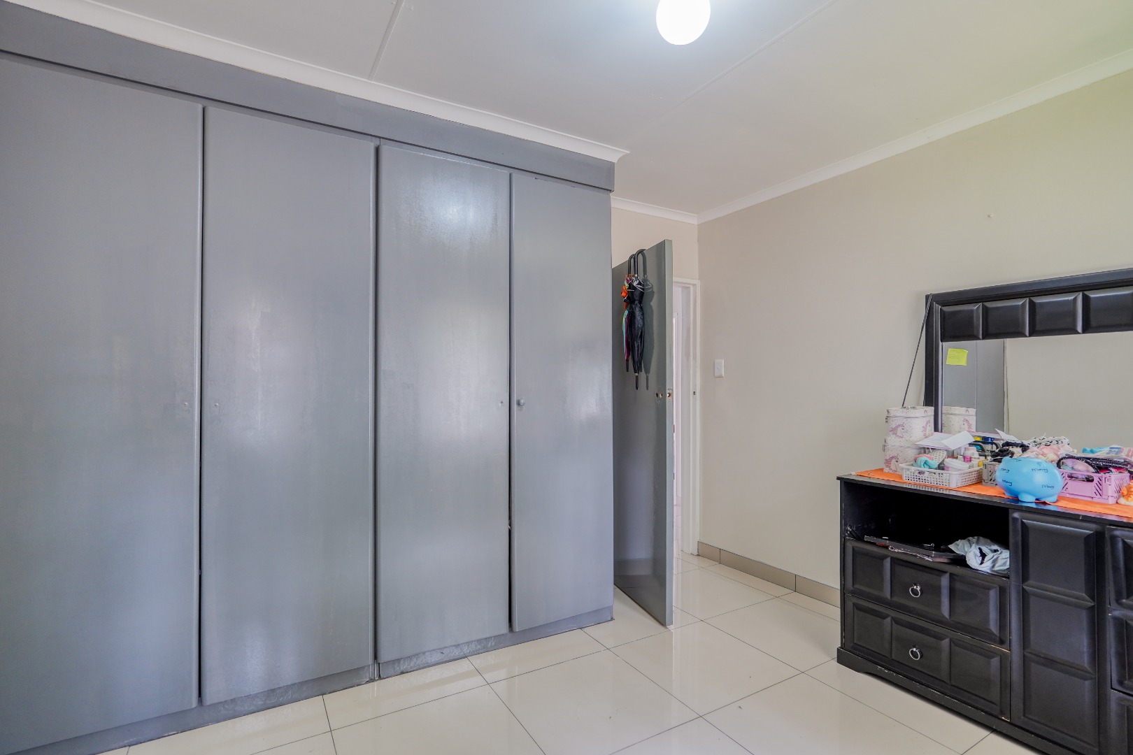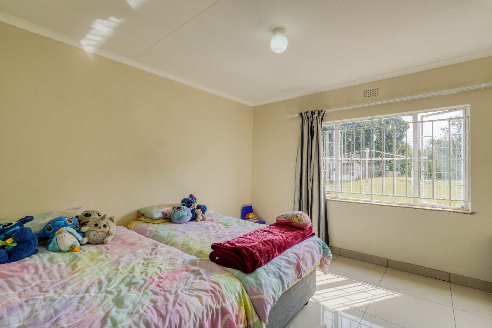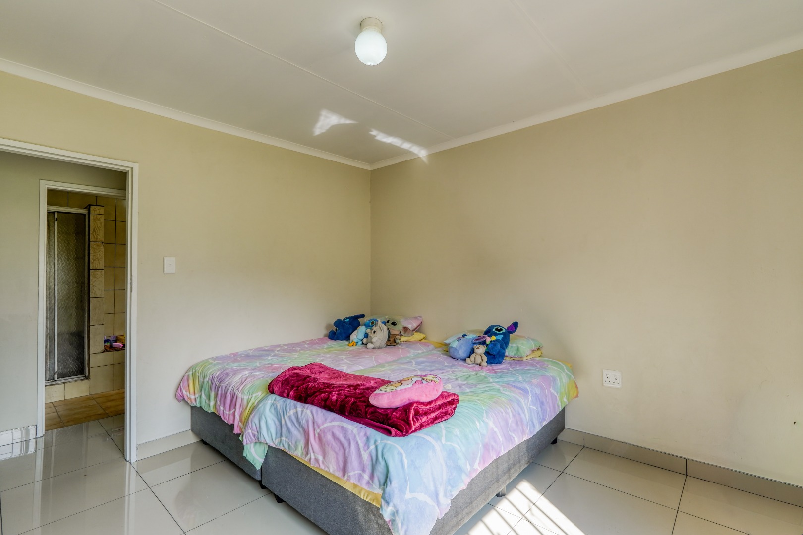 A fourth bedroom is tucked away behind the kitchen, forming an extension to the home. This room includes its own toilet and shower, offering a more private setup that could suit guests or extended family.