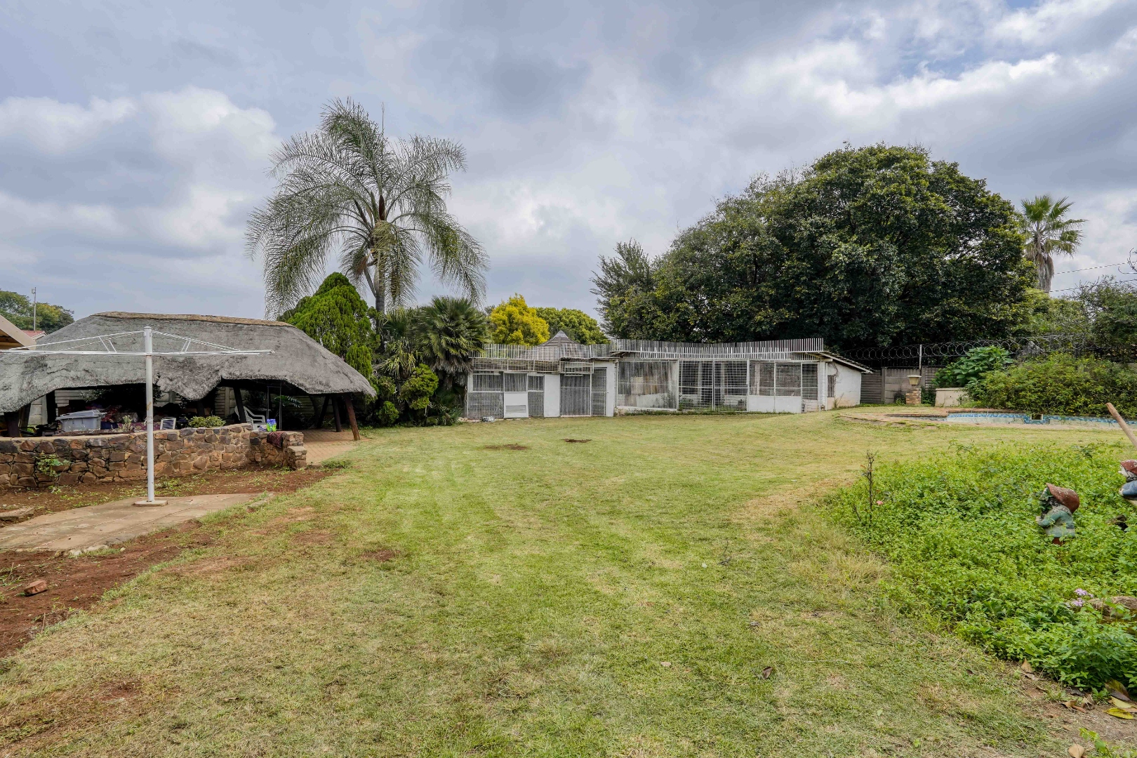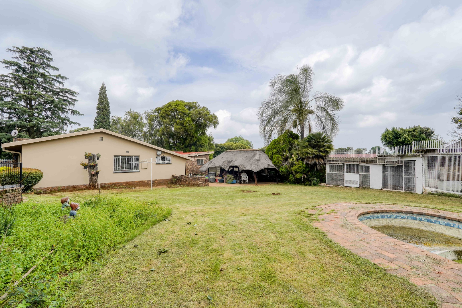 Outside, the garden offers a range of features, including a lapa, a bird cage, and a swimming pool positioned next to the double garage. Behind the garage, an additional room provides extra space that could be developed into an office, an extra room, or simply used for storage. The front garden is well established and adds to the overall feel of the property.