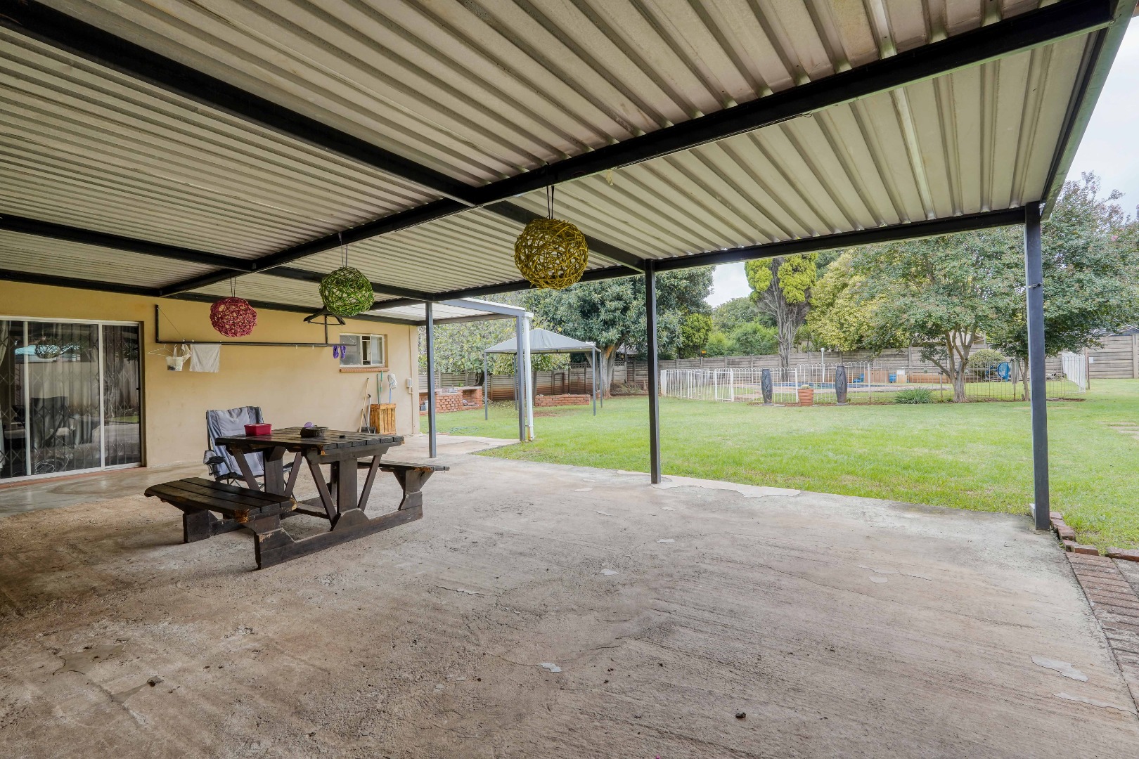 Outside, the yard is open and pet friendly, with a swimming pool adding to the lifestyle on offer. Parking is well planned with three covered parking spaces that serve the home and flatlet, along with an additional carport for three vehicles.