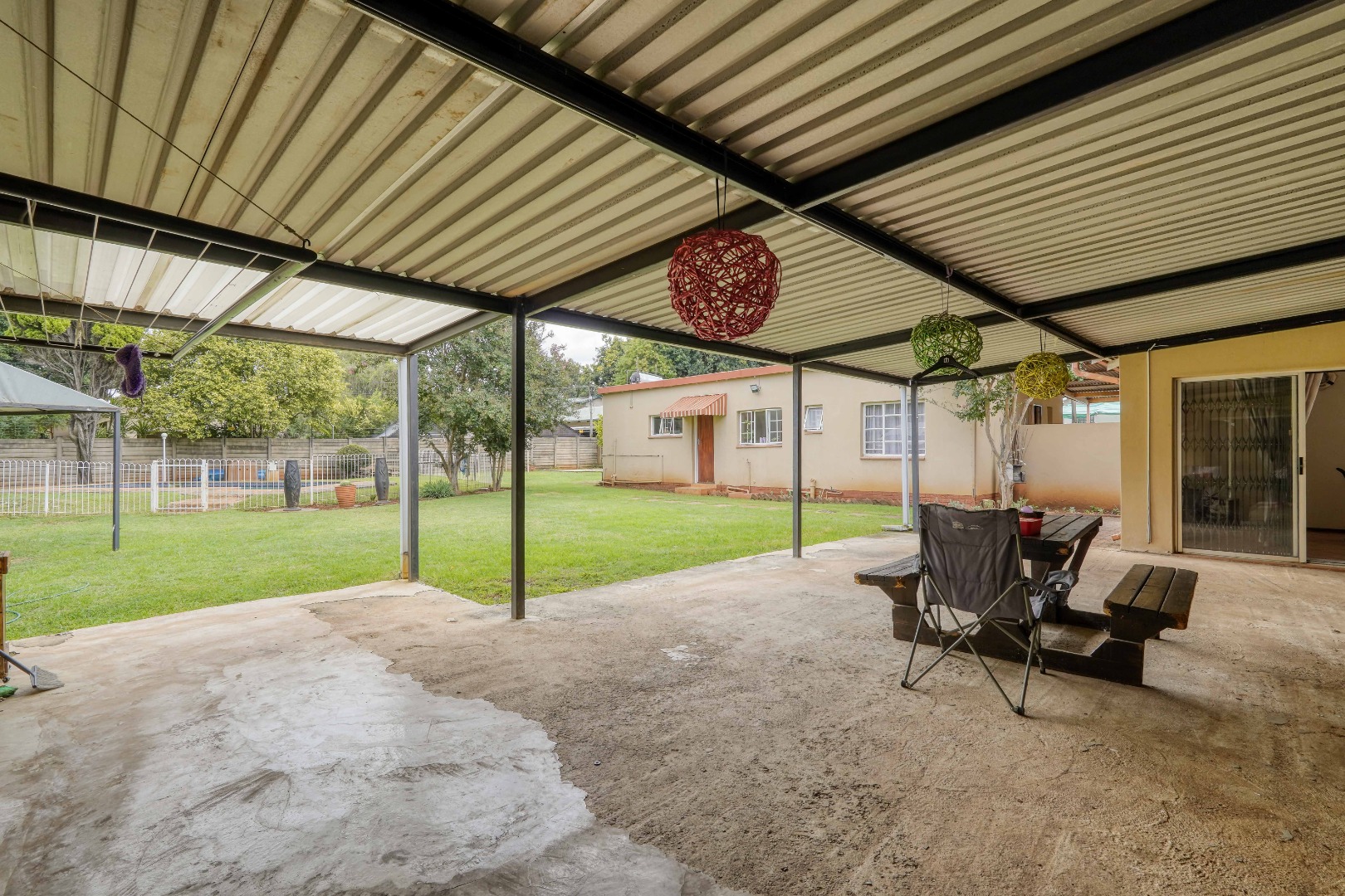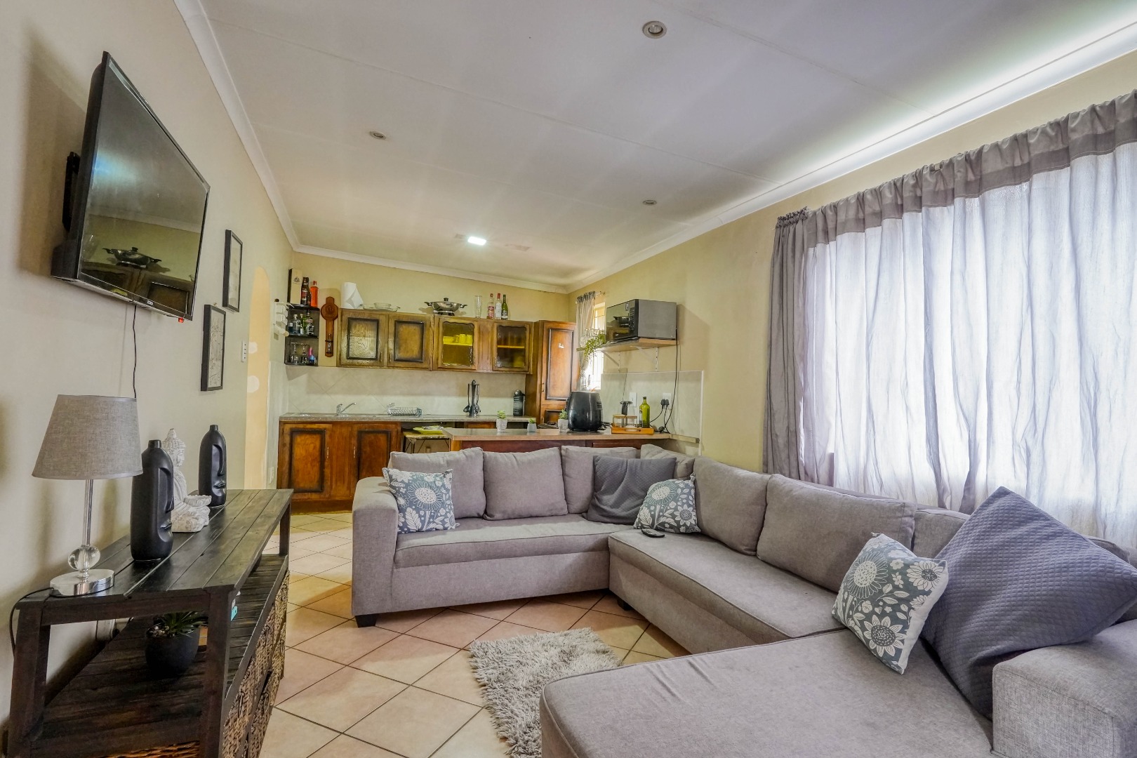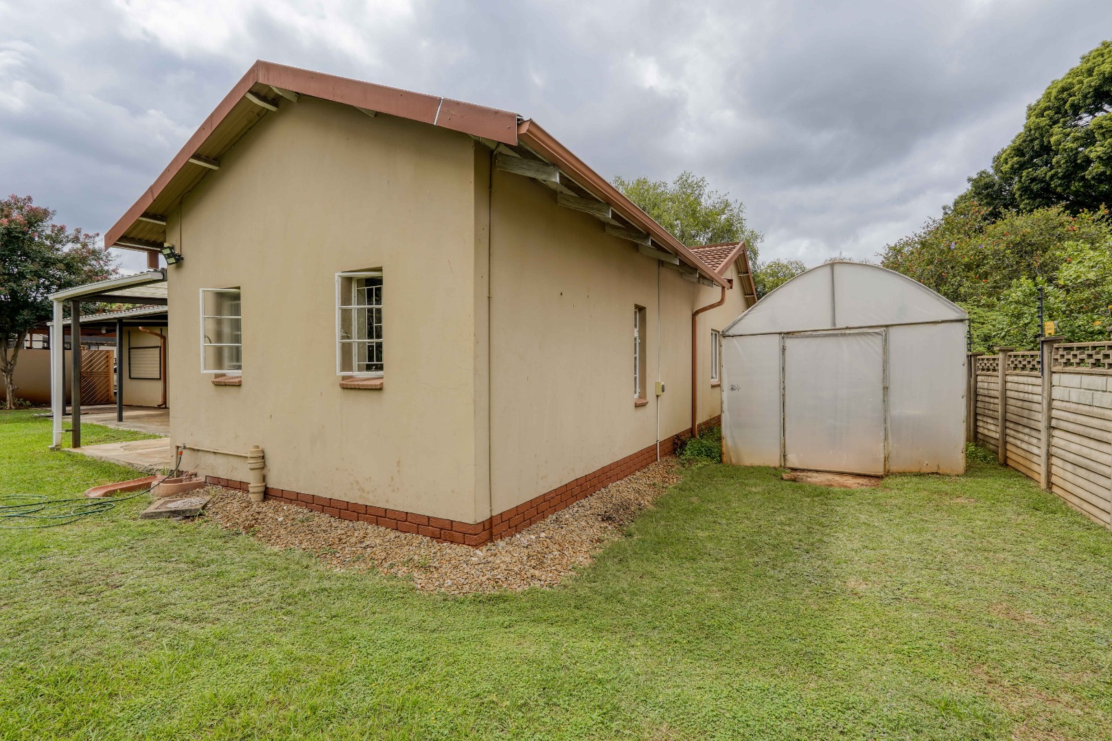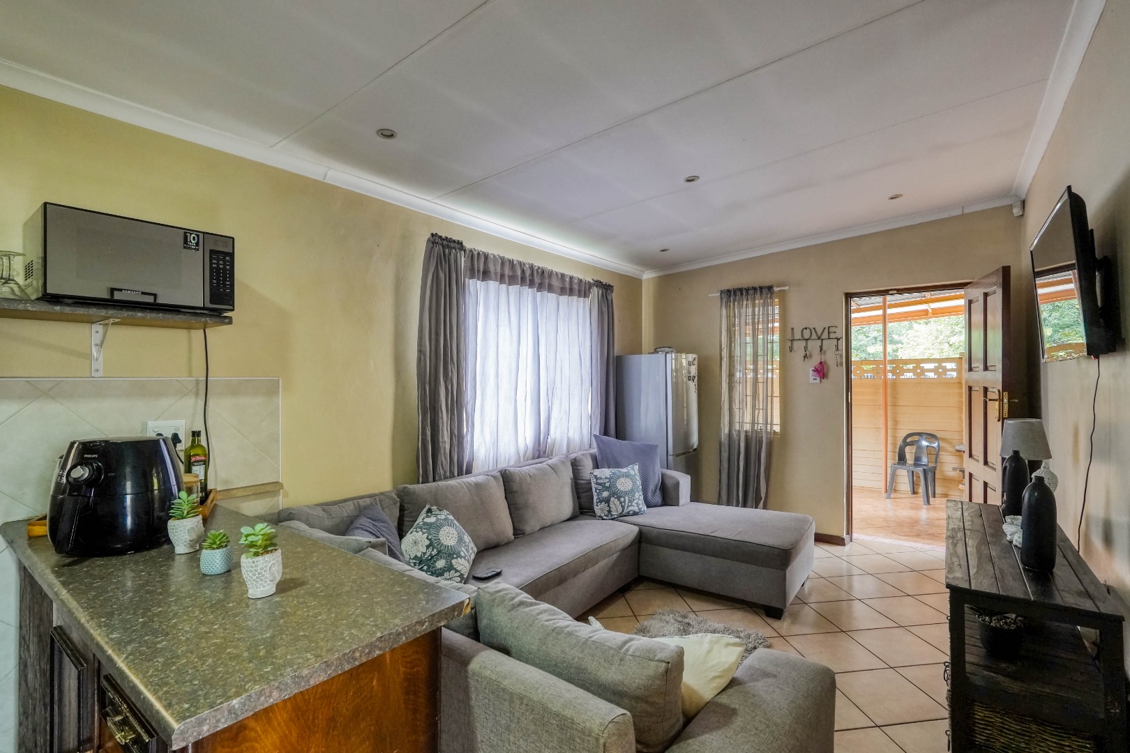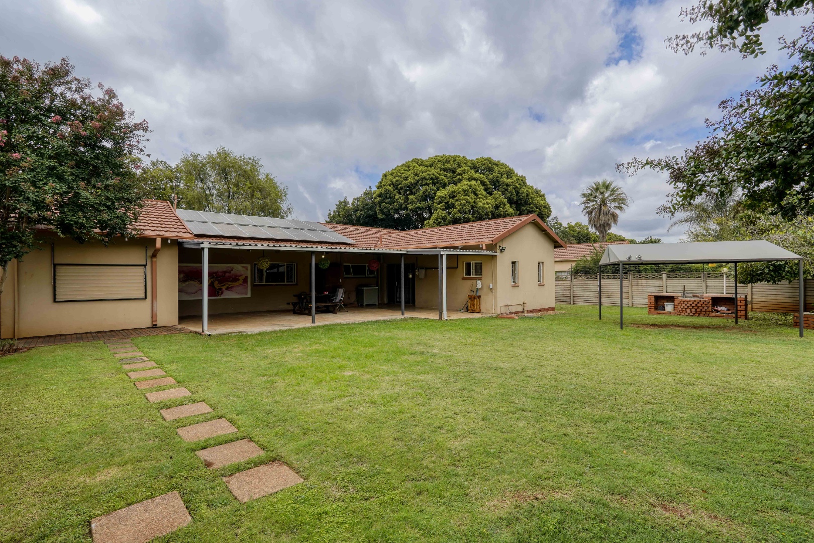 Set alongside the main house is a fully self contained two bedroom granny flat. It includes its own living room and kitchen, as well as a bathroom and a separate geyser, making it ideal for extended family or rental use.