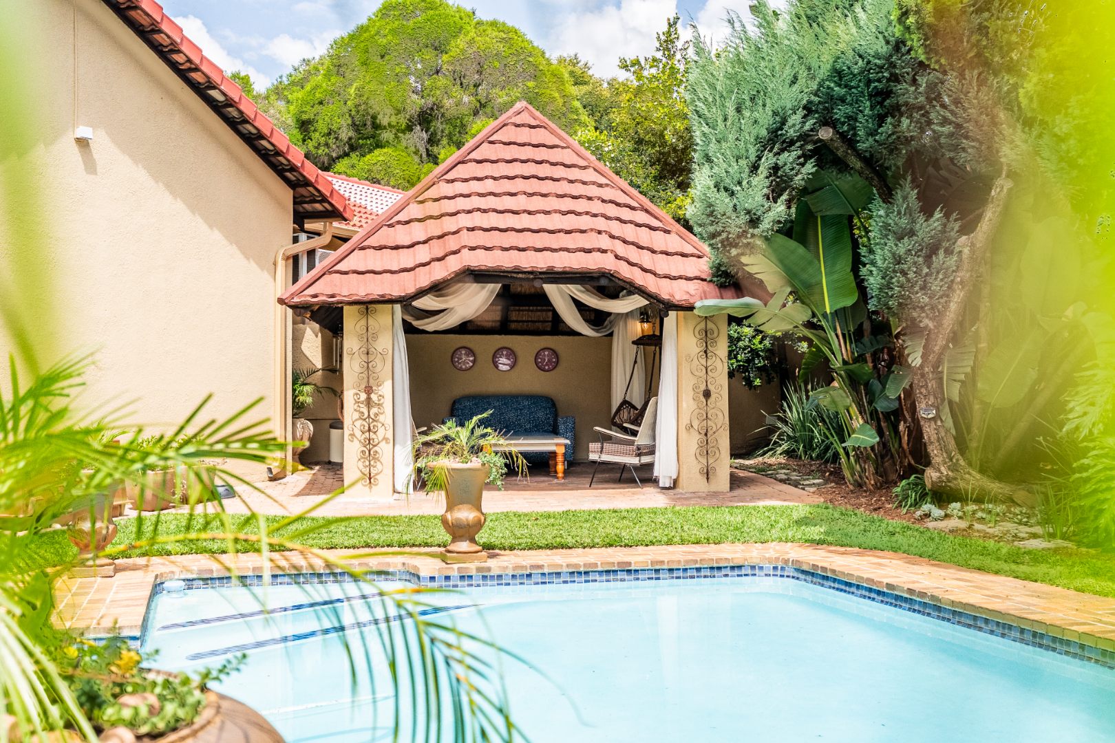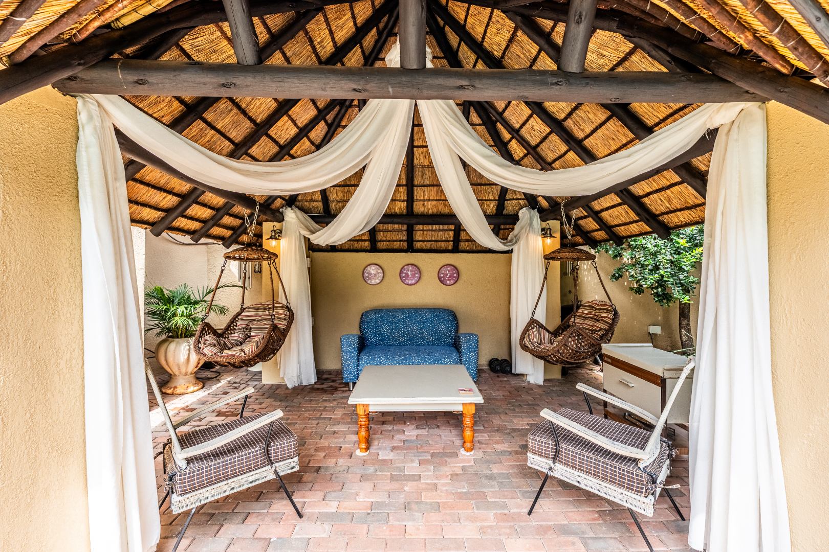 Step outside to a beautifully landscaped, lush garden. The outdoor entertainment area features a sparkling swimming pool and a lapa, equipped with electricity and lighting, perfect for hosting gatherings. Parking is ample with a double carport featuring censored lights, and additional paved areas. This fully walled property, secured by 8-foot walls and two entrances, also benefits from a borehole with a 5,000 L tank connected to the main water supply, ensuring water independence. A 3x4 wooden Wendy house with a veranda provides additional utility, and fibre internet connectivity is available.