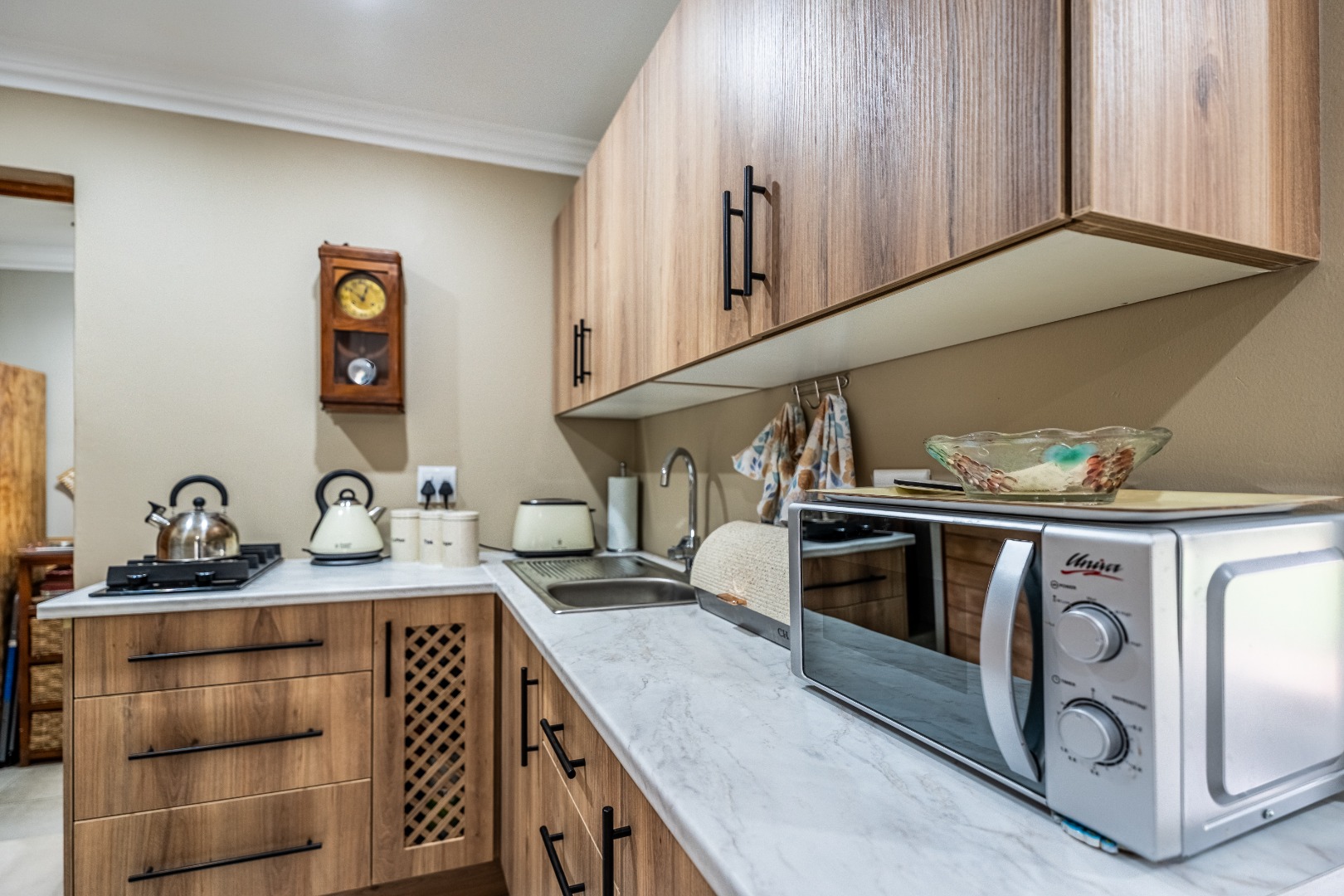 Adding significant value, an attached spacious open-plan granny flat offers an en-suite bathroom, a kitchen with a gas hob, and a private entrance, ideal for extended family or rental income. Furthermore, approved plans are in place to build an additional 85 m² flatlet, presenting further expansion or income opportunities. A generator with a changeover switch guarantees an uninterrupted power supply. With easy access to local schools and shopping centres, this property combines suburban tranquility with urban convenience. Pets are permitted, and an outside toilet is available for convenience. We invite you to call for an appointment to view this exceptional property.