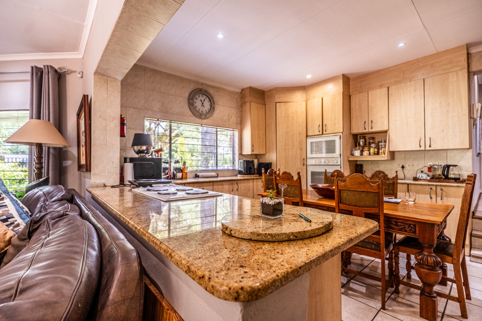 * Spacious Open-Plan Kitchen with Granite Countertops.