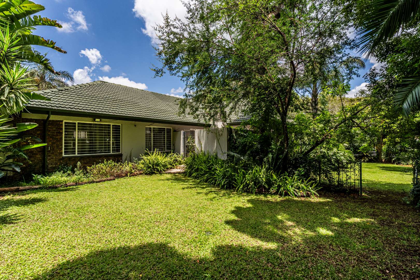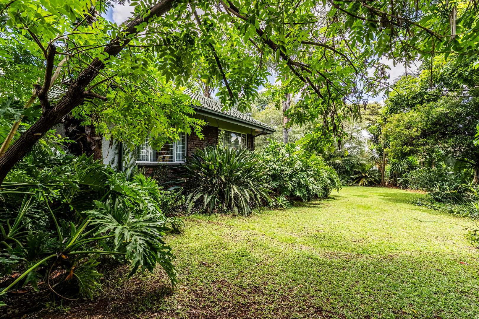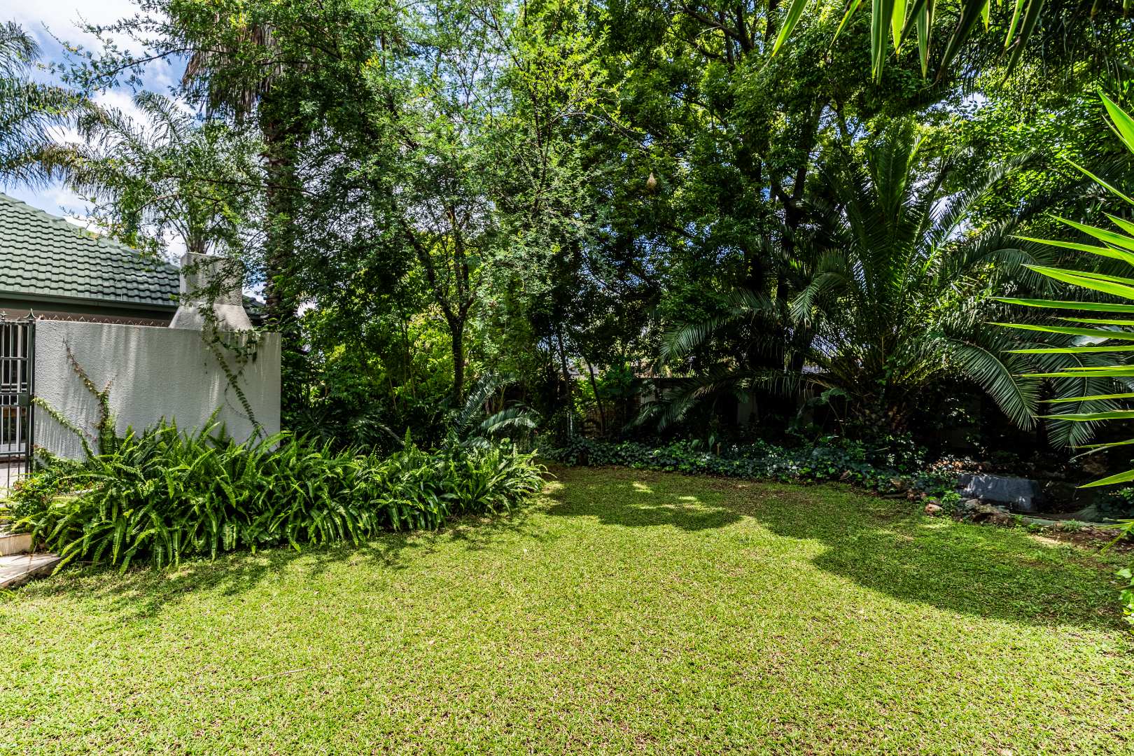 * Lush Garden with Mature Trees.