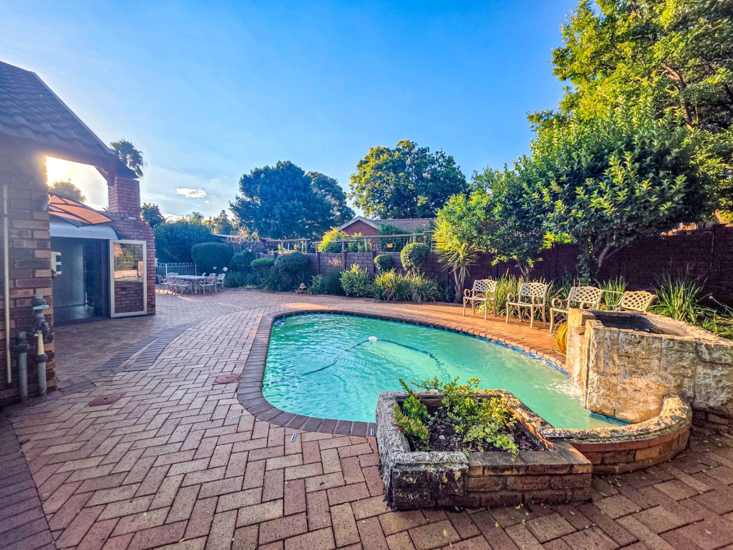 This spacious 5-bedroom, 3-bathroom family home in Wierda Park, Centurion, offers versatile living. It features two kitchens, a lounge, dining room, and a family TV room, plus a flatlet ideal for extended family or rental income. Enjoy outdoor living with a swimming pool, built-in braai, and a braai room within a private garden on a 1000 sqm erf. Two garages and two additional parking spaces are included. Security is robust with an alarm, access gate, burglar bars, security gates, and a walled perimeter. Solar panels and fibre connectivity enhance this desirable Centurion home.