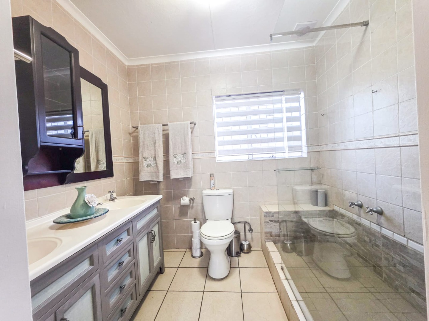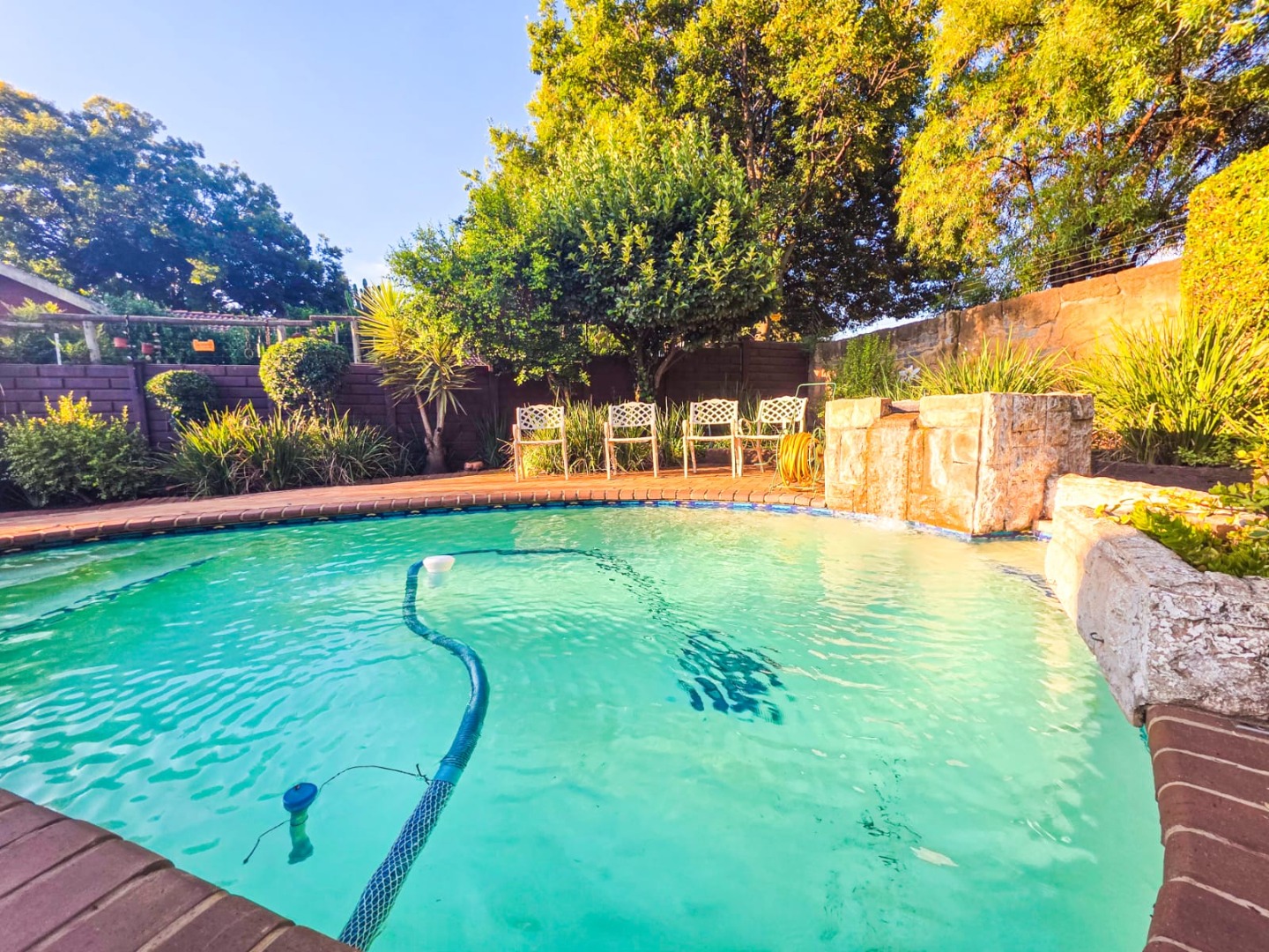 This spacious 5-bedroom, 3-bathroom family home in Wierda Park, Centurion, offers versatile living. It features two kitchens, a lounge, dining room, and a family TV room, plus a flatlet ideal for extended family or rental income. Enjoy outdoor living with a swimming pool, built-in braai, and a braai room within a private garden on a 1000 sqm erf. Two garages and two additional parking spaces are included. Security is robust with an alarm, access gate, burglar bars, security gates, and a walled perimeter. Solar panels and fibre connectivity enhance this desirable Centurion home.