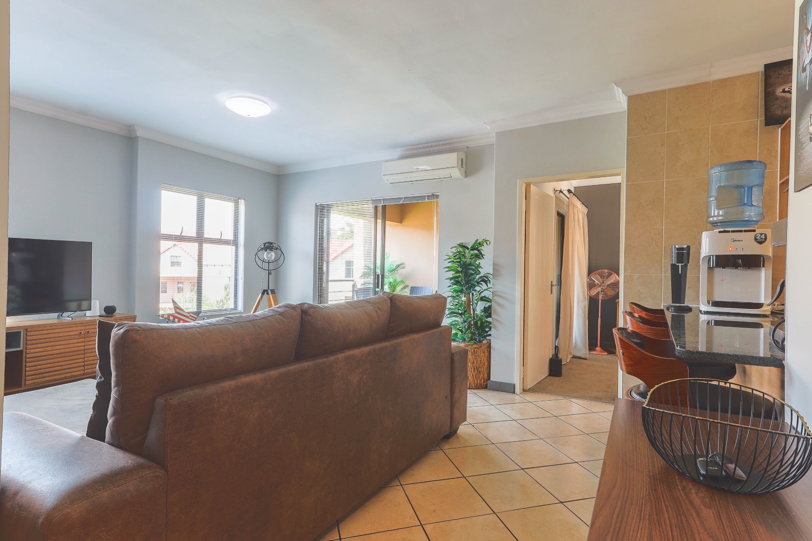 Discover modern living within the prestigious Zwartkop Golf Estate, Centurion, offering a secure and vibrant lifestyle. This well-appointed 74 sqm apartment presents an exceptional opportunity for those seeking comfort, convenience, and peace of mind in a sought-after residential sale property. The estate environment provides a tranquil backdrop, combining the allure of golf course living with robust security measures, making it an ideal choice for discerning buyers. Step inside to an inviting open-plan layout that seamlessly connects the living spaces, designed for contemporary comfort and functionality. The property features a spacious lounge, perfect for relaxation or entertaining, complemented by a well-equipped kitchen. The inclusion of sliding doors enhances the flow, allowing for an abundance of natural light and easy access to outdoor areas. An air-conditioning unit ensures a comfortable climate throughout the year, adding to the property's appeal. This apartment boasts two comfortable bedrooms, providing ample space for residents. These rooms are thoughtfully designed to offer a private retreat after a busy day. A single, well-maintained bathroom serves both bedrooms, featuring modern fixtures and finishes that align with the property's overall aesthetic. The layout is practical and efficient, catering to a variety of lifestyle needs.