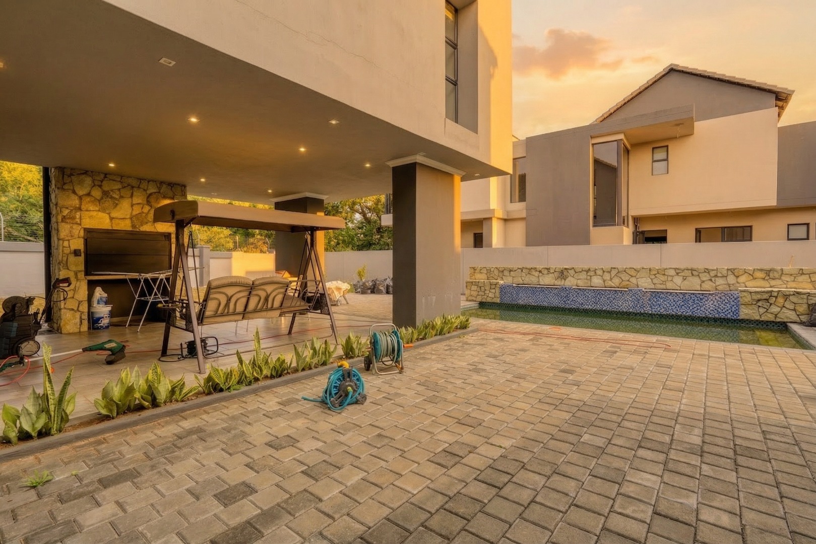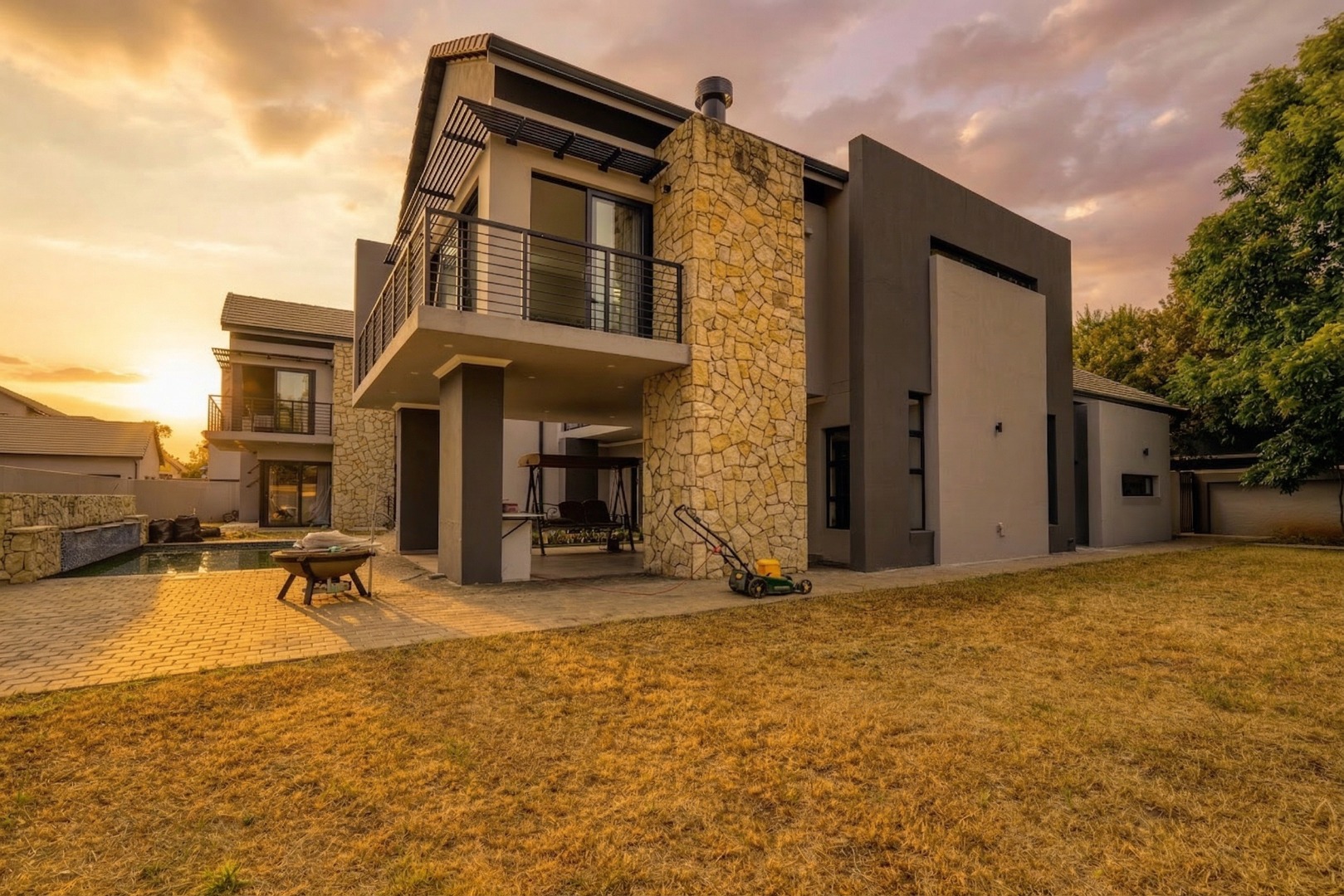 Set within the sought after Zwartkop Golf Estate, this four bedroom home offers a well balanced layout with comfortable living spaces and a strong connection to the outdoors. The entrance hall welcomes you in and leads past the staircase into an open plan dining and lounge area, creating a central space where daily life naturally comes together. The lounge flows easily to a covered patio with a built in braai and overlooks the pool, making it ideal for relaxed entertaining and family gatherings.