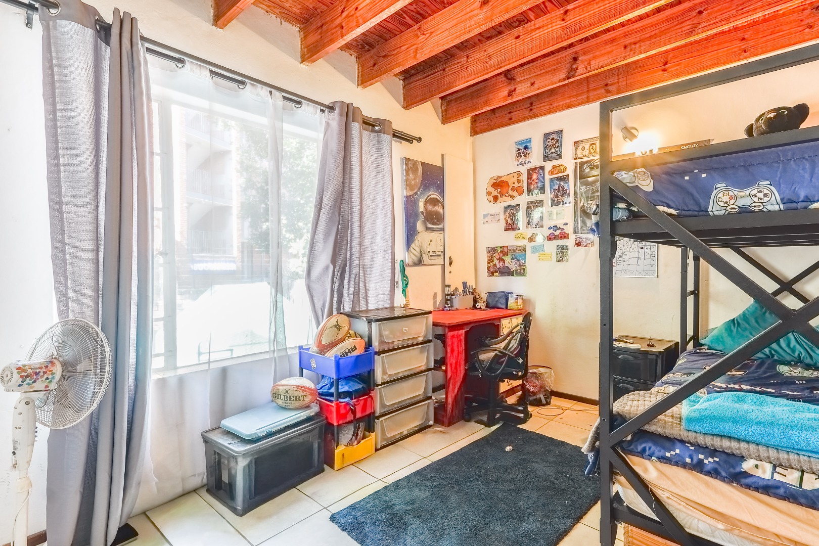 Discover this inviting 3-bedroom, 1-bathroom residence nestled within a secure complex in the desirable Zwartkop area of Centurion. This property offers a practical layout designed for comfortable family living, combining essential amenities with the peace of mind of a secure environment. The interior features a welcoming lounge and a functional kitchen equipped with a pantry, catering to daily needs. The open-plan design enhances the sense of space, creating an ideal setting for both relaxation and entertaining. The home includes a dedicated family TV room, providing additional versatile living space for various activities. Accommodation comprises three bedrooms, each offering a comfortable retreat. Several rooms benefit from practical tiled flooring and unique architectural elements such as exposed wooden ceiling beams, adding character. Built-in wardrobes provide convenient storage solutions. The property also boasts versatile pyjama lounge, which can be adapted to serve as additional bedrooms, a home office, or extra storage, maximizing the usable footprint of the home. A well-appointed bathroom serves the household. Outside, residents can enjoy a private garden area, complemented by paving for easy maintenance. Security is paramount within this complex, featuring an access gate, electric fencing, and 24-hour security services, ensuring a safe living environment. The property is also fibre-ready and pet-friendly, accommodating modern lifestyle requirements. Zwartkop, Centurion, is a well-established suburb known for its convenient access to local amenities, schools, and major transport routes, making it a sought-after location for families and professionals alike.