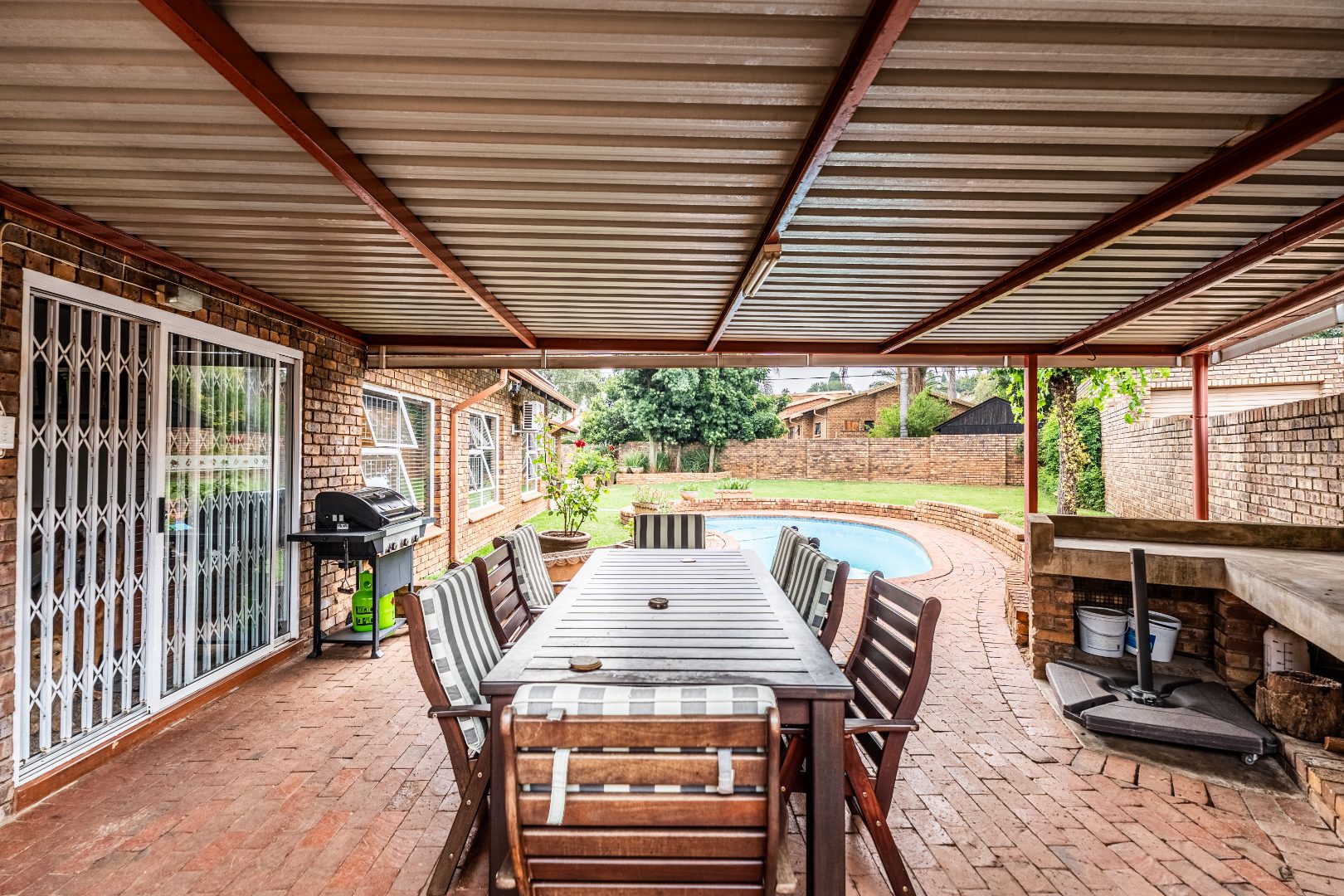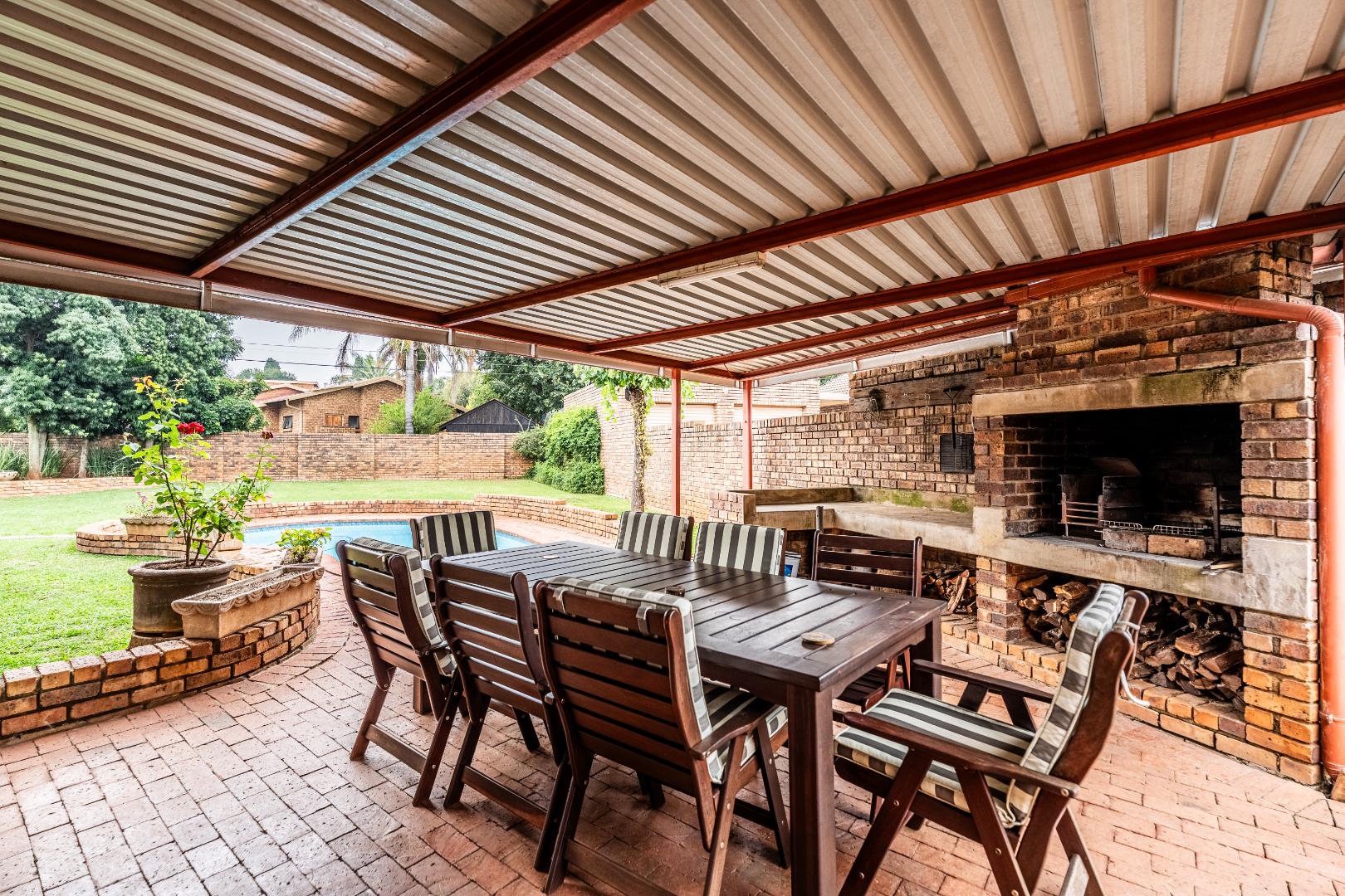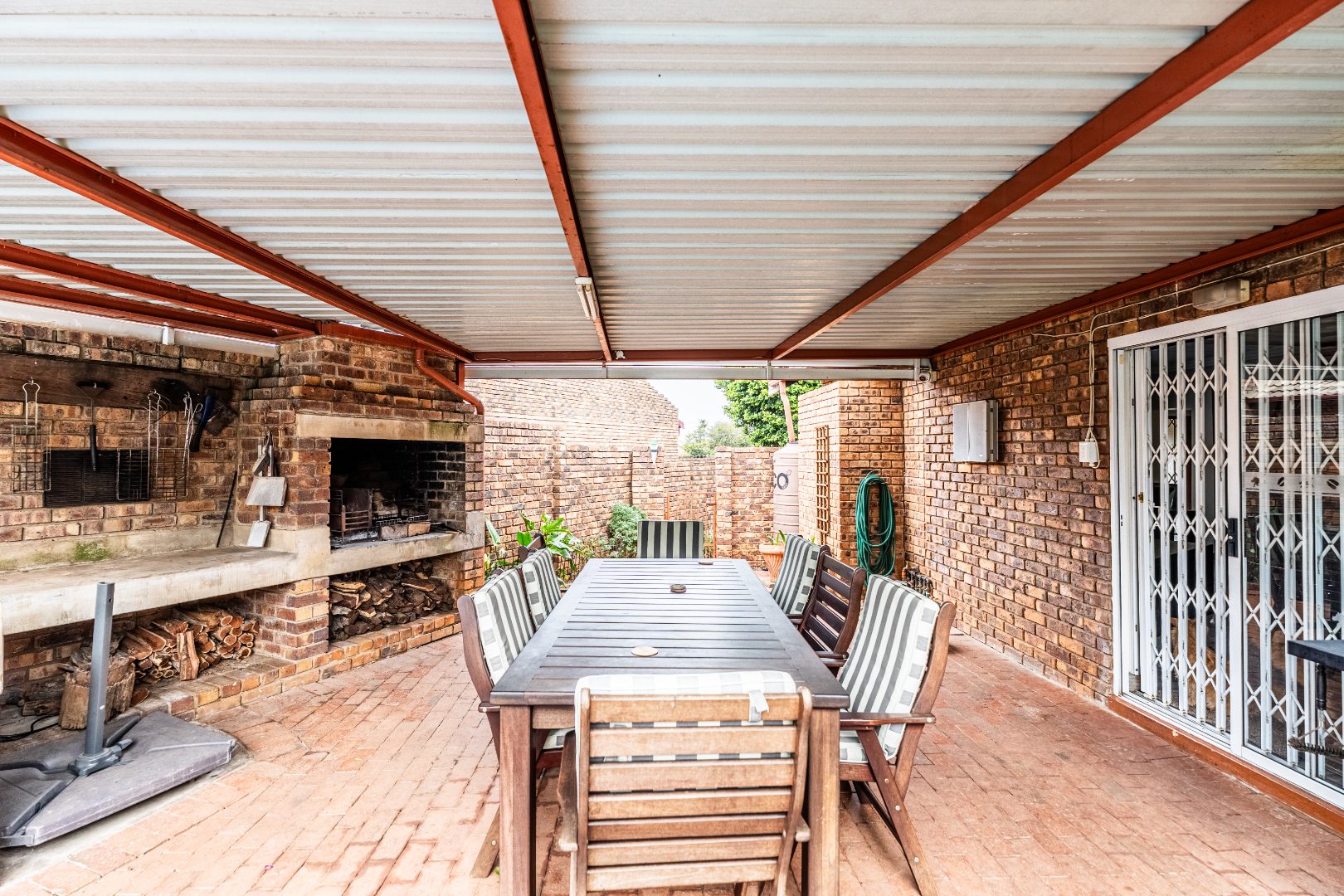 Covered braai area with large built-in braai