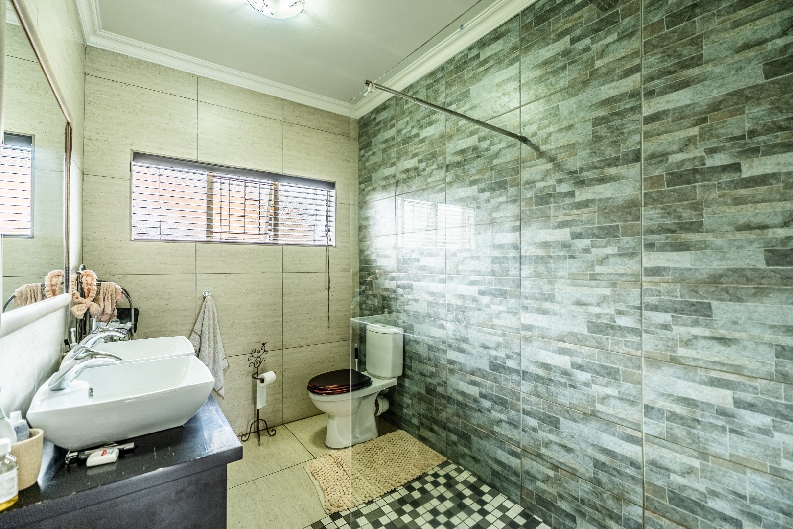 Main en-suite: Large walk-in shower, toilet & double basin