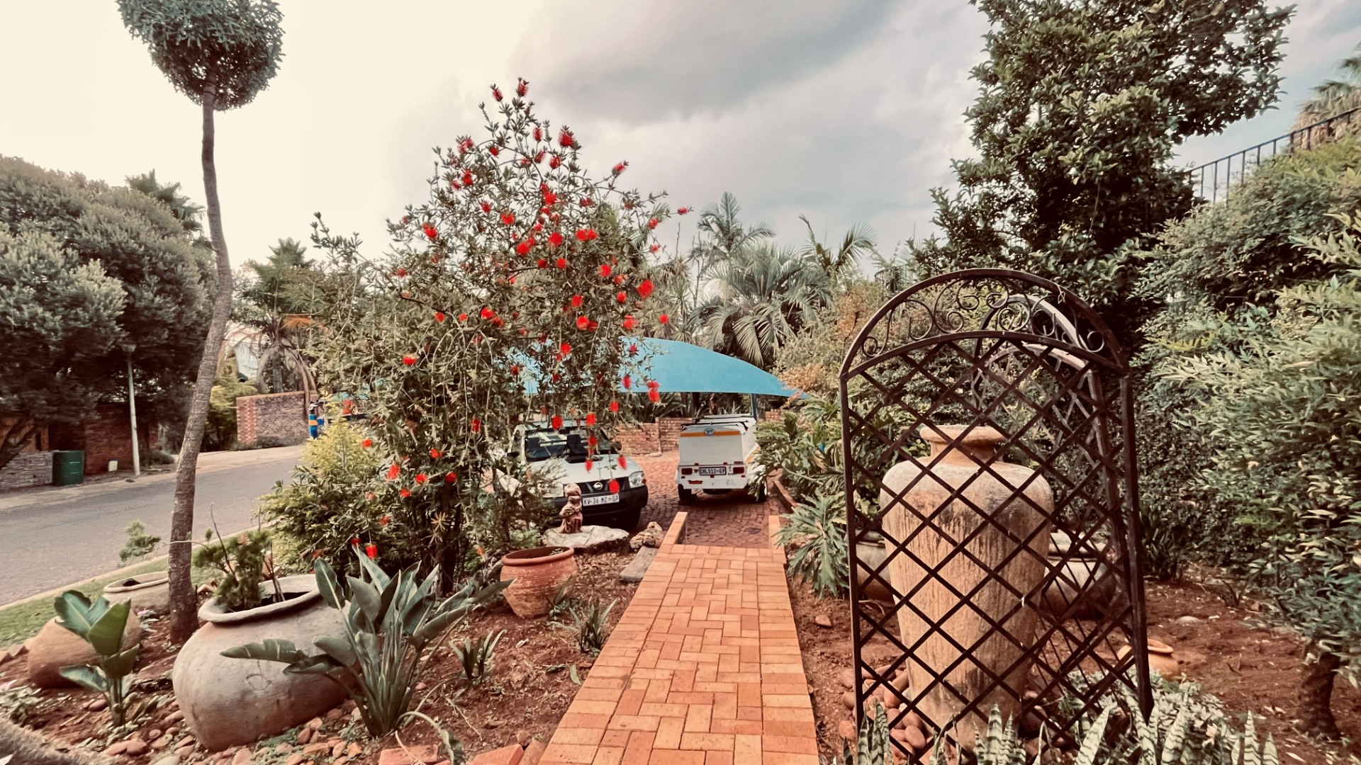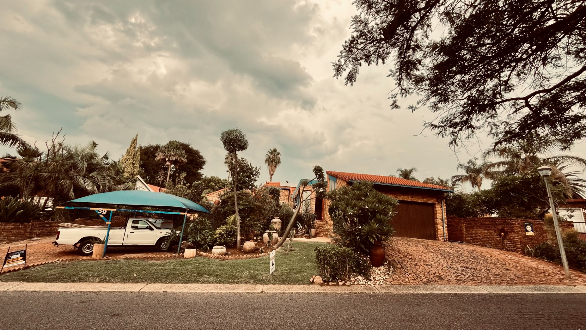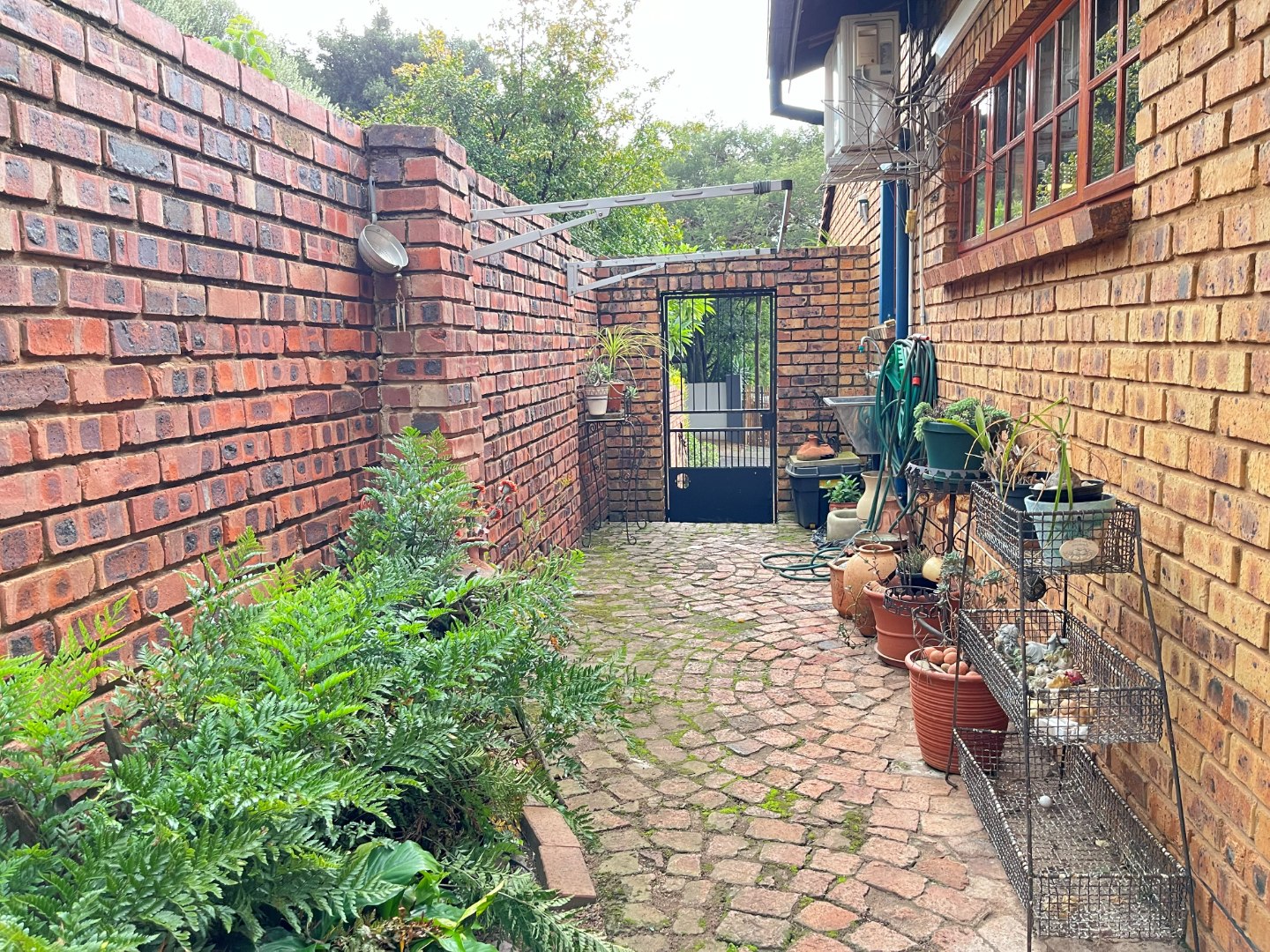 The exterior is equally inviting, featuring a private garden, a refreshing swimming pool, and a welcoming patio. Practical elements include an irrigation system, sprinkler system, and a driveway leading to four garages. Modern infrastructure is in place with fibre connectivity, solar panels, and a battery inverter, contributing to energy efficiency and reliability. The property benefits from a gated community with an access gate, enhancing security and peace of mind. Pets are also welcome.