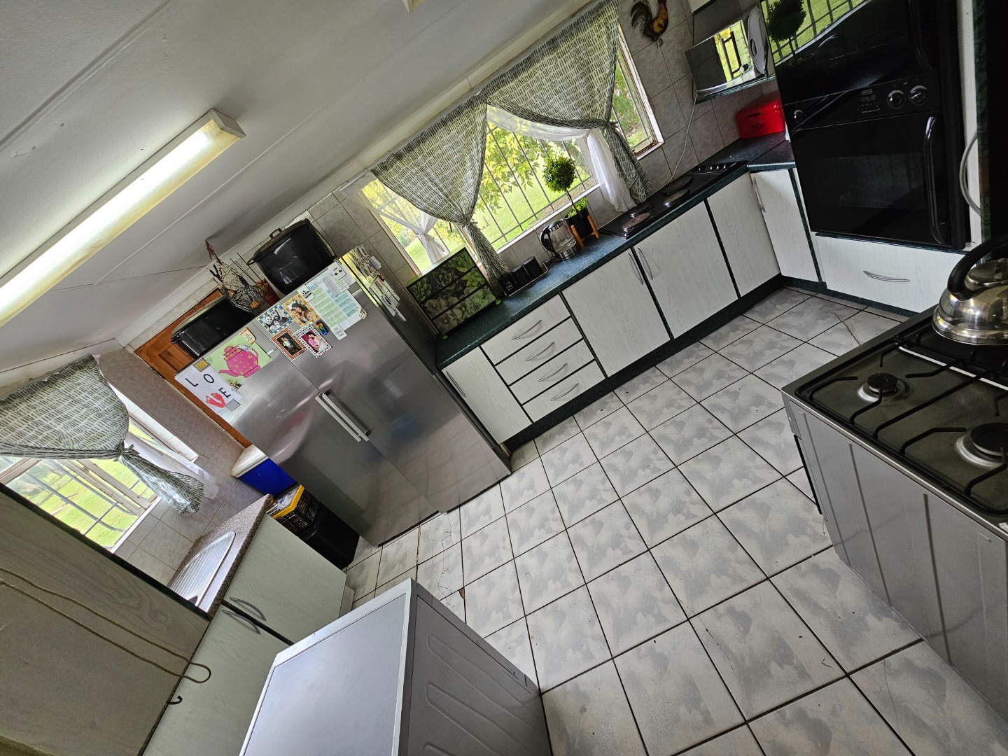 Safety is a priority, with the property fully enclosed by electric fencing, 2 electric entrance gates, an alarm system, reinforced security doors and burglar bars.