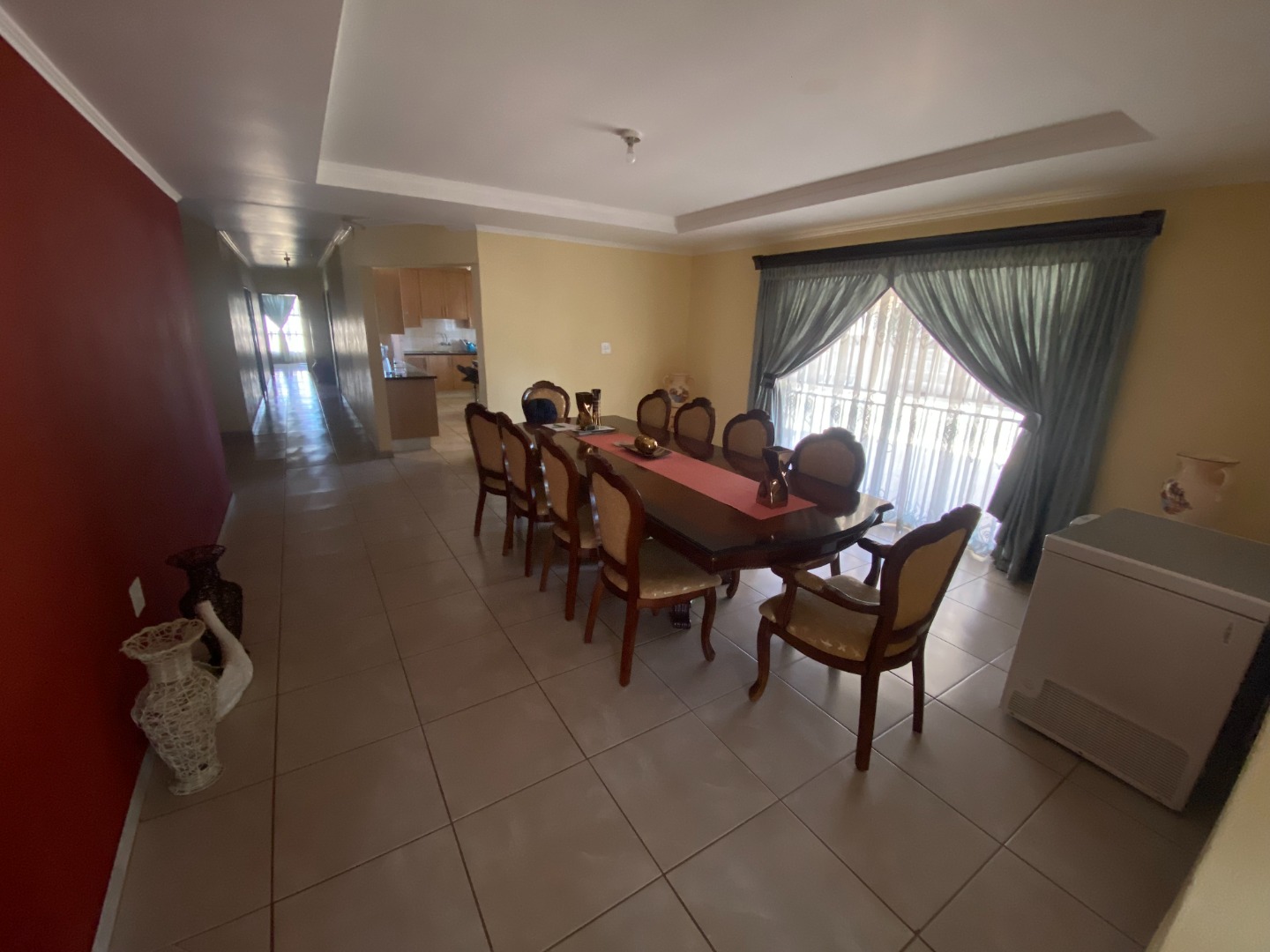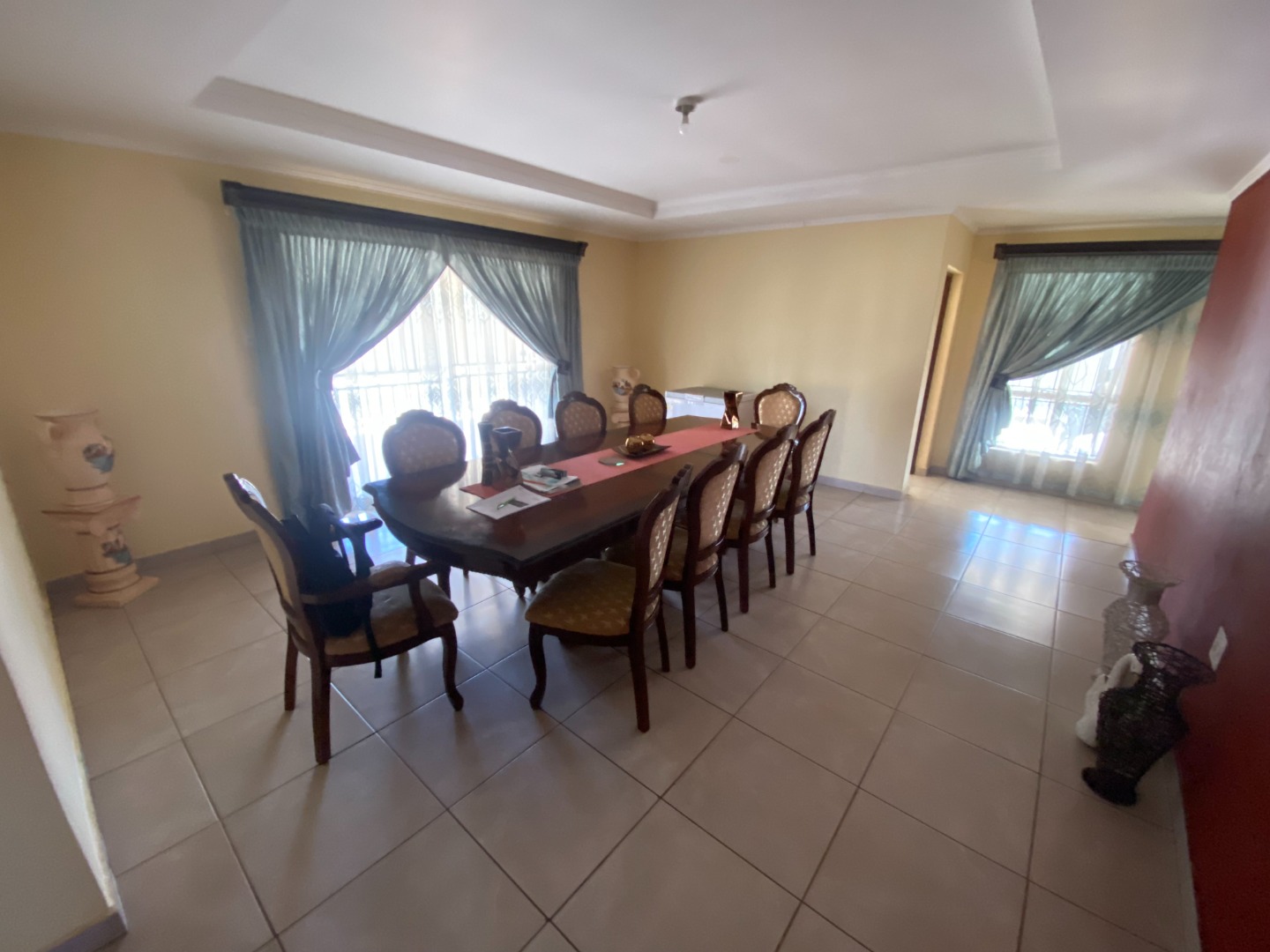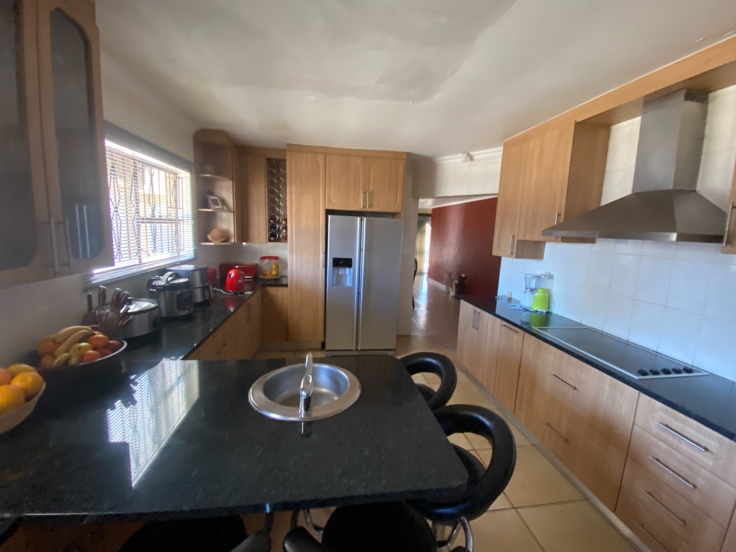 This beautiful and spacious 4-bedroom house is situated on a corner stand in Clayville Ext 7. The house has spacious living areas including a lounge, dining room and a TV/Family room walking onto a large, covered patio (sunroom). The dining room is linked with the open plan kitchen. The kitchen is large with a breakfast nook, many cupboards with granite tops, eye-level oven, glass hob with extractor fan, and washing machine/dishwasher outlet.