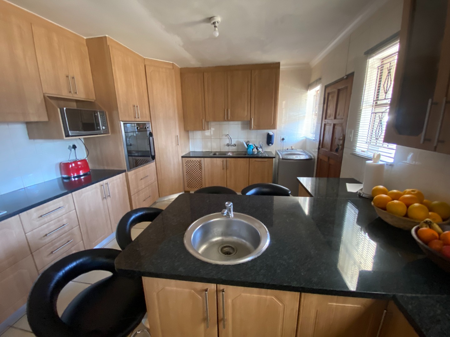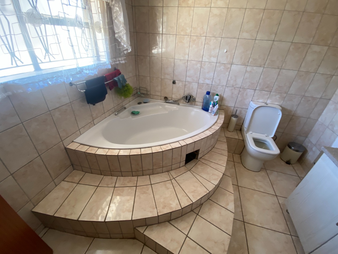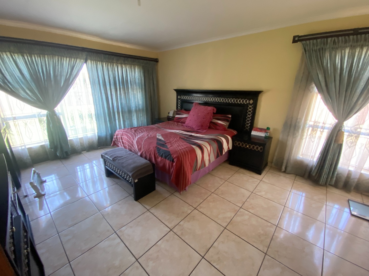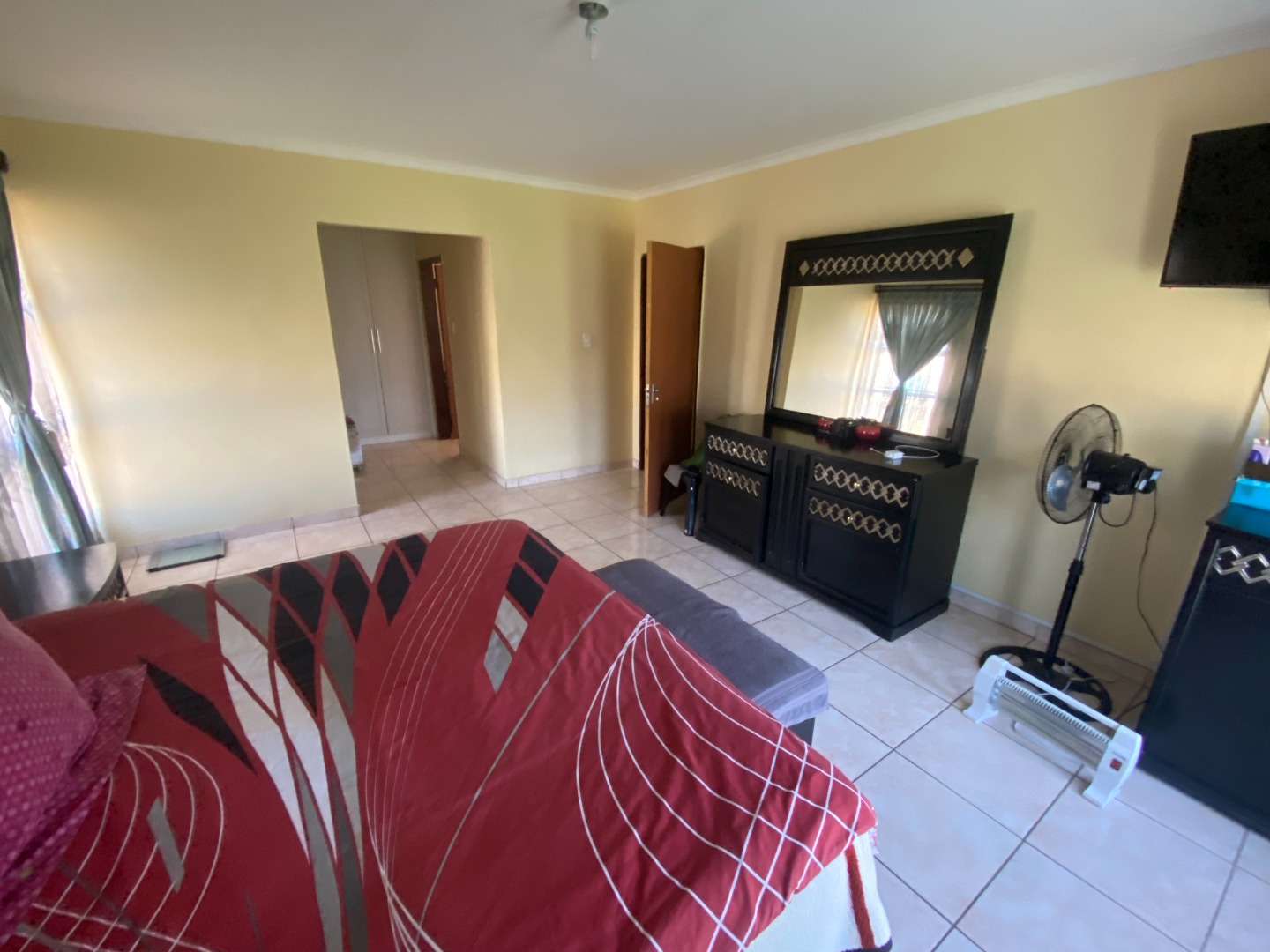 This beautiful and spacious 4-bedroom house is situated on a corner stand in Clayville Ext 7. The house has spacious living areas including a lounge, dining room and a TV/Family room walking onto a large, covered patio (sunroom). The dining room is linked with the open plan kitchen. The kitchen is large with a breakfast nook, many cupboards with granite tops, eye-level oven, glass hob with extractor fan, and washing machine/dishwasher outlet.