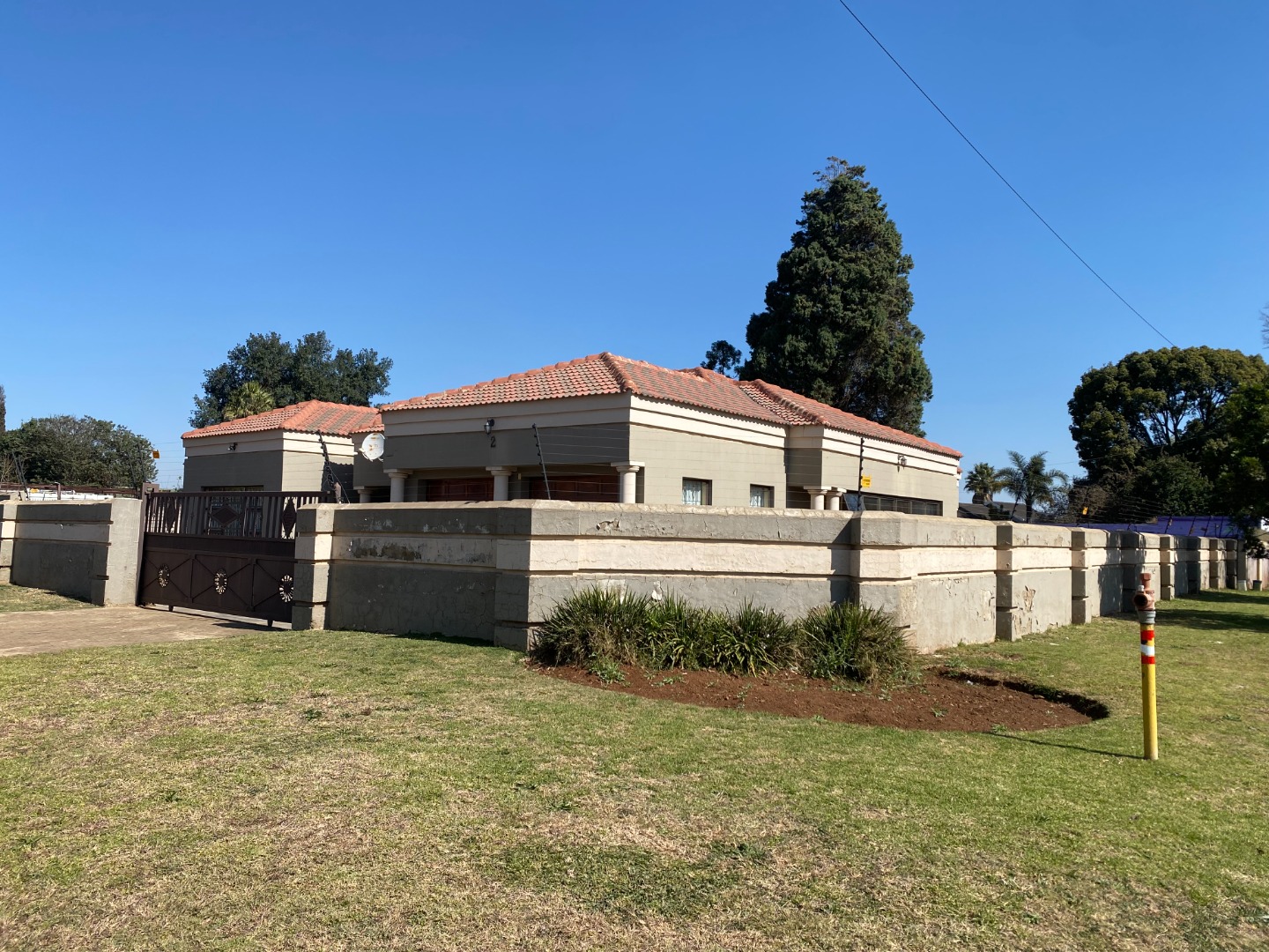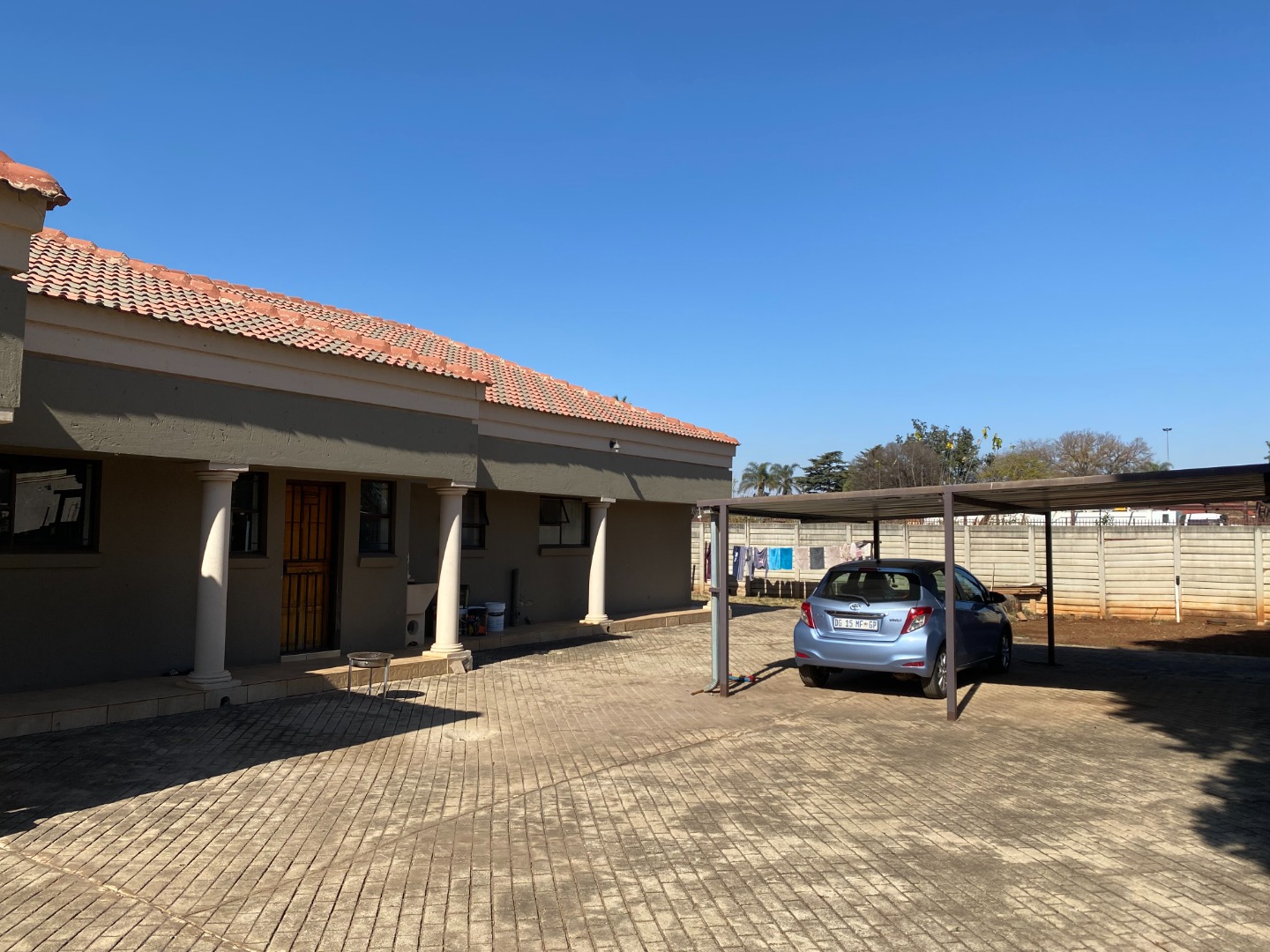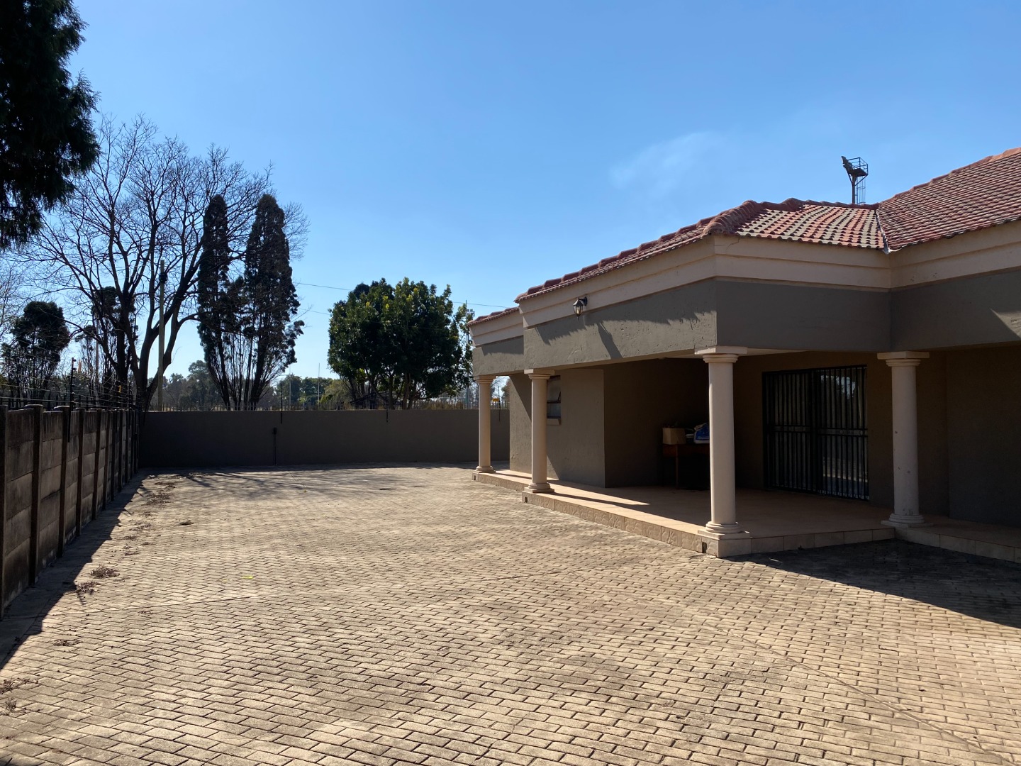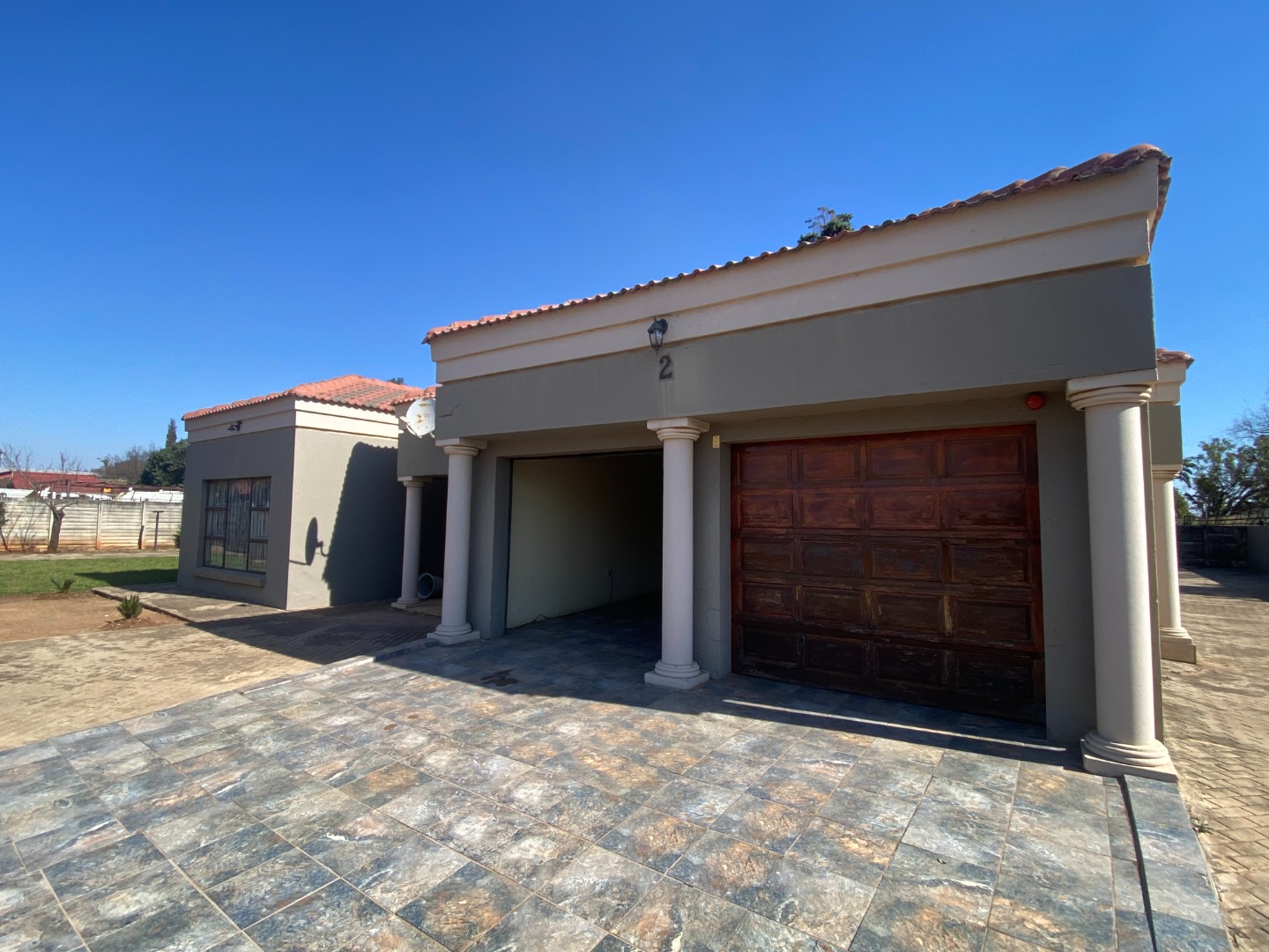 There is a double is a double garage and a double carport at the back of the property. The garden area has large, paved areas. The property is completely walled.