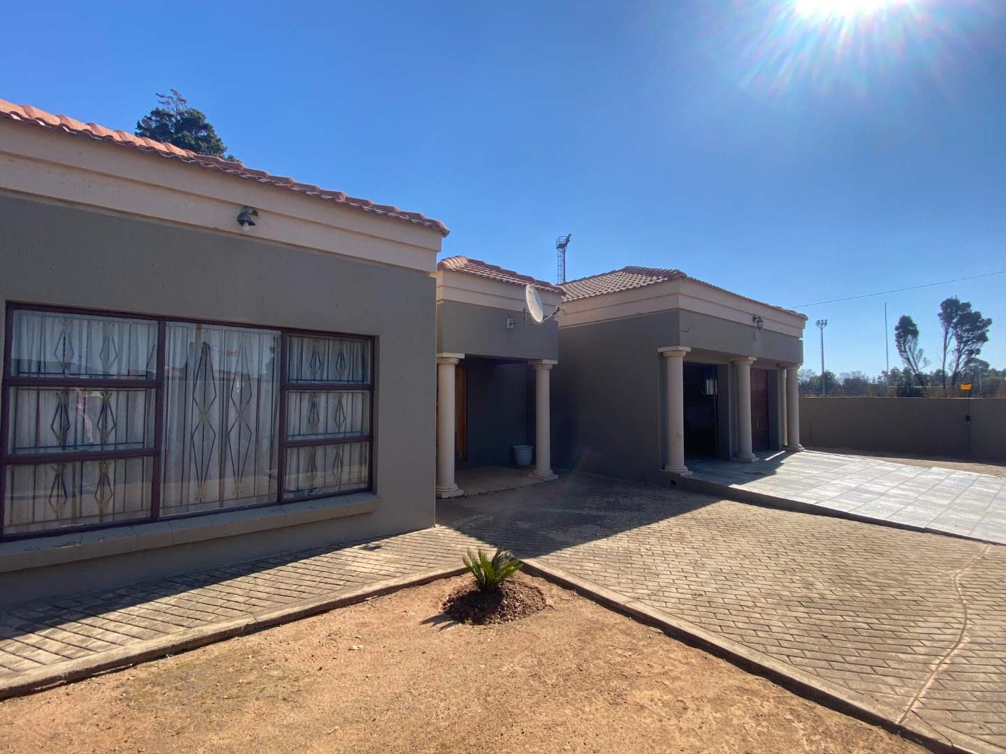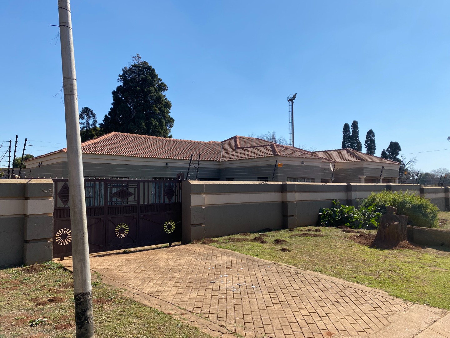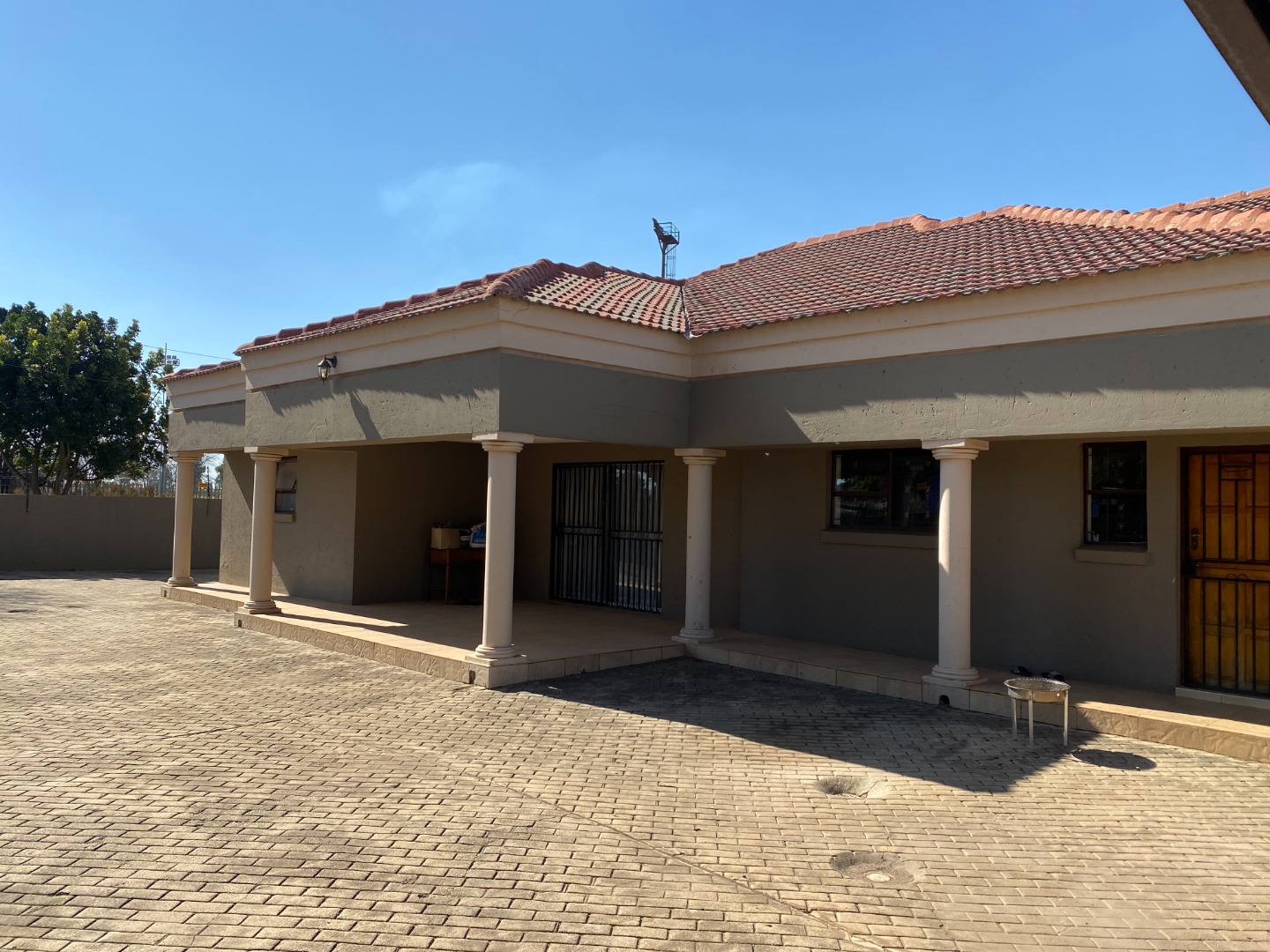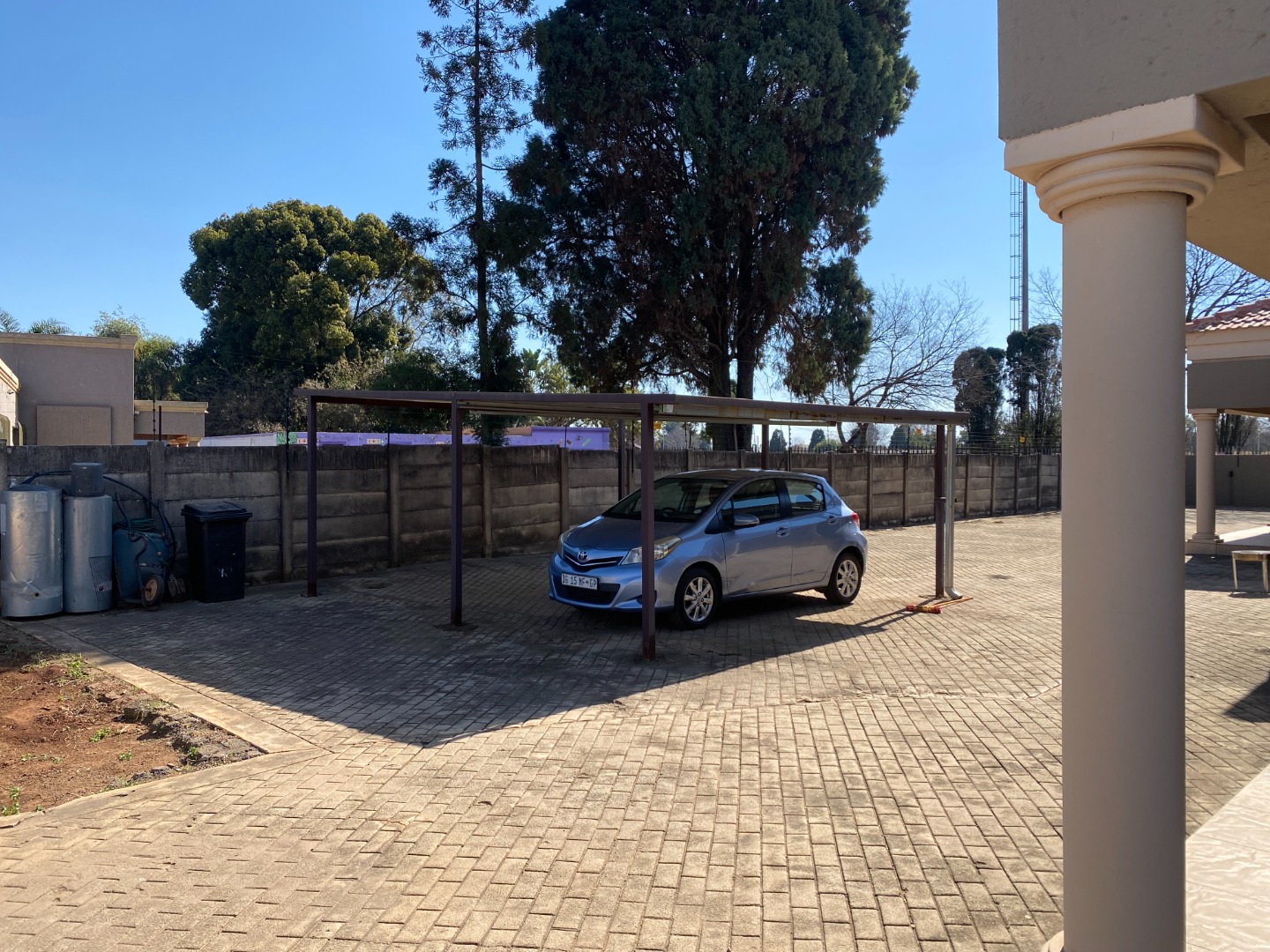 There is a double is a double garage and a double carport at the back of the property. The garden area has large, paved areas. The property is completely walled.