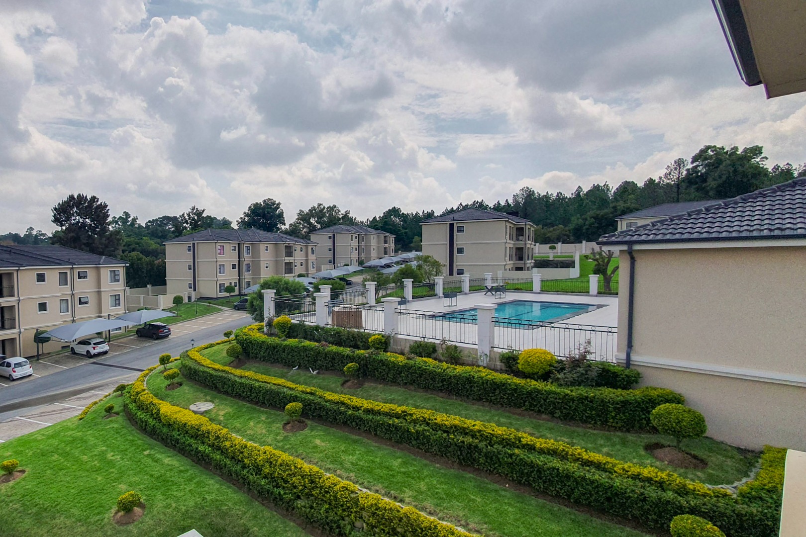 Residents benefit from an array of exceptional estate amenities, including access to a refreshing swimming pool, well-maintained gardens, and a dedicated club house, fostering a sense of community and leisure. The estate also offers aquatic activities, enhancing the lifestyle appeal. Practical features such as two dedicated parking spaces, laundry facilities, and paved areas contribute to a hassle-free living experience.