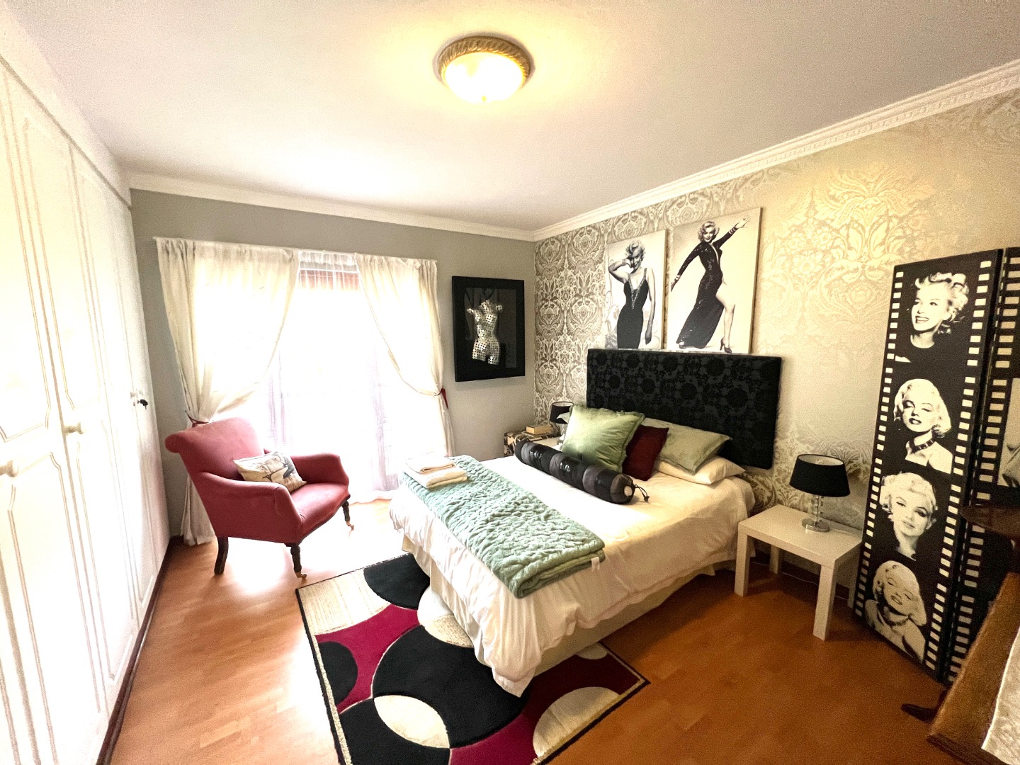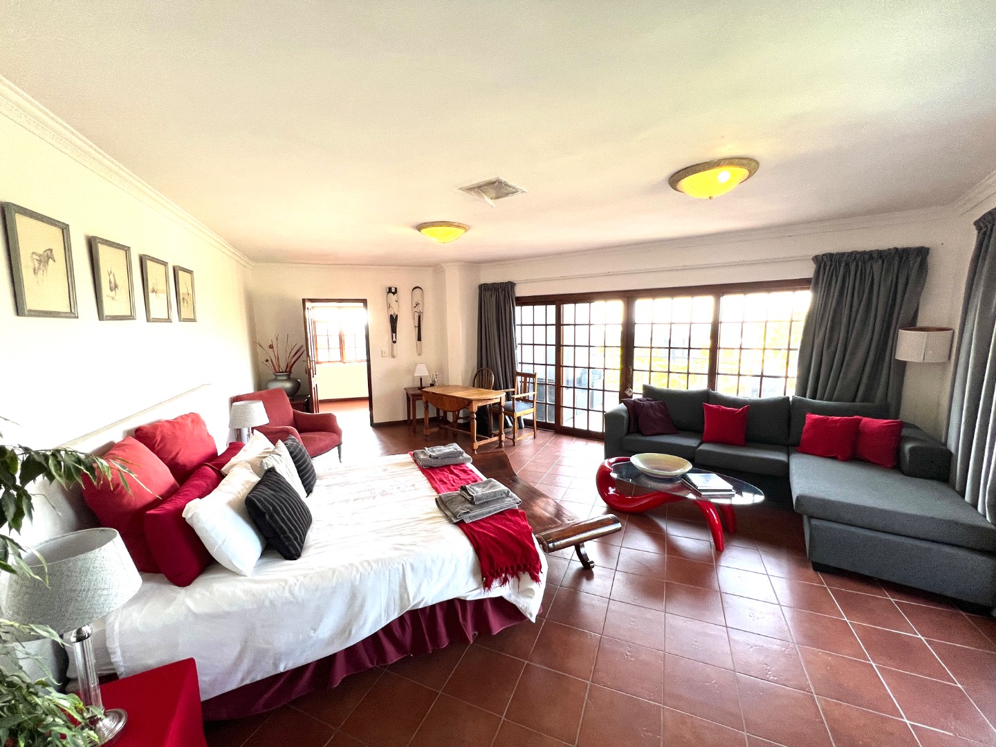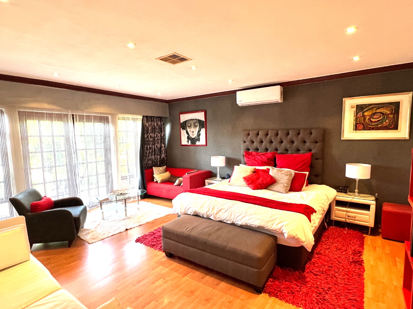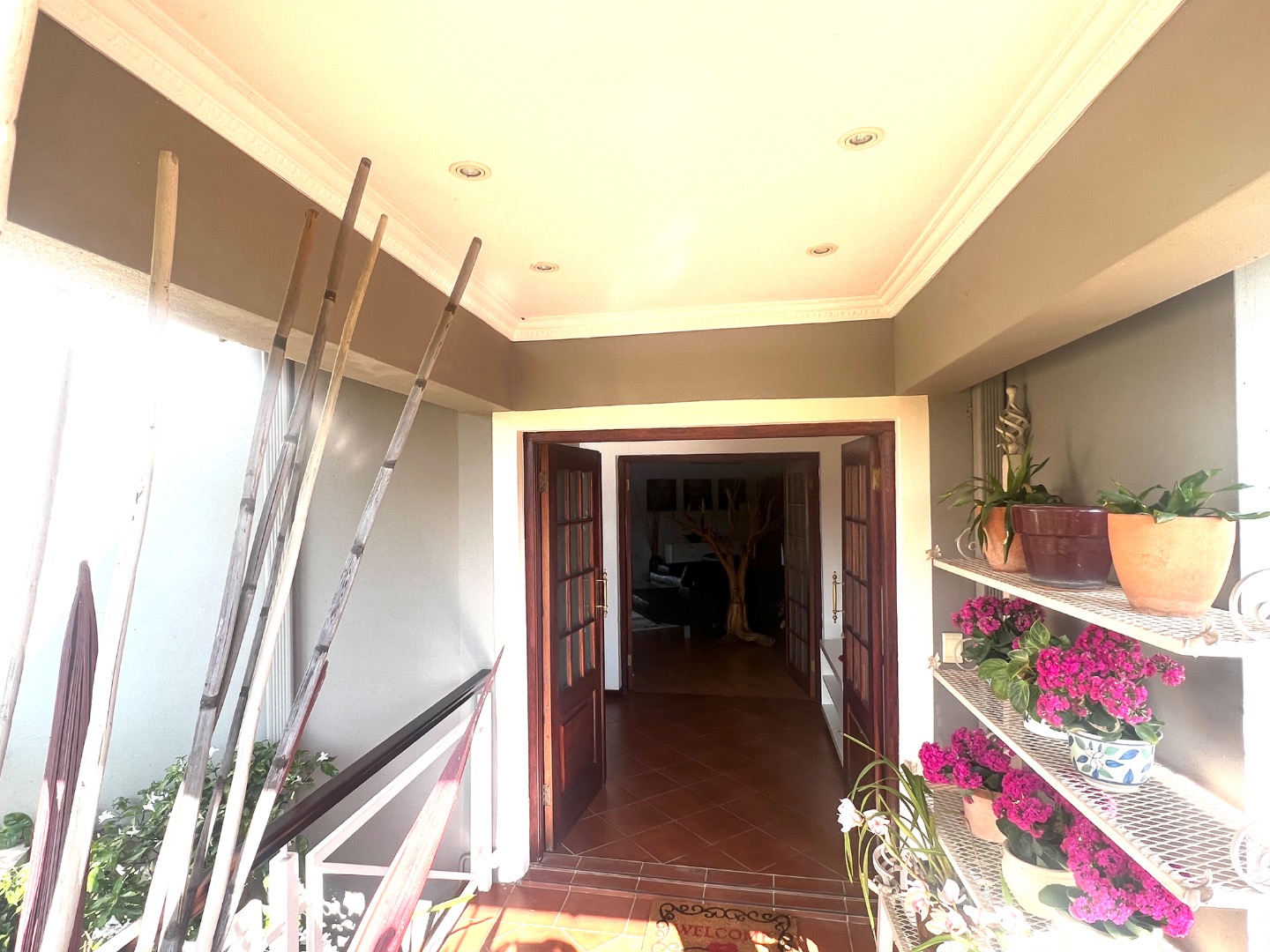 - Stacking glass doors opening to a covered patio with views of the manicured garden, sparkling pool, and boma area complete with pizza oven and outdoor braai – an entertainer’s dream.