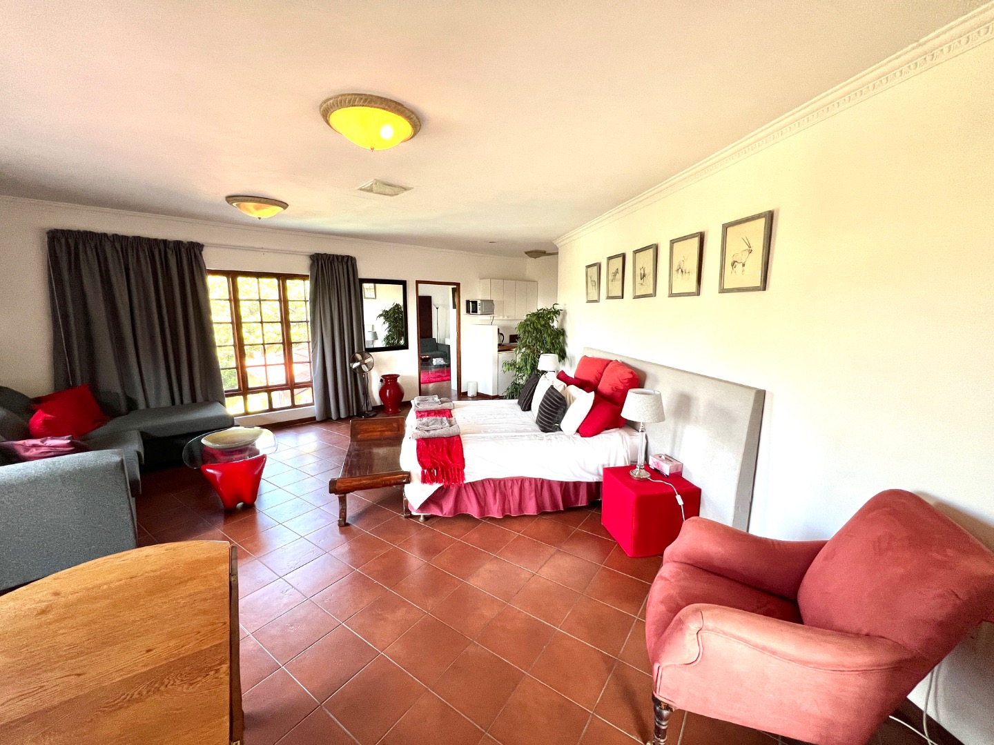 - Spacious lounge/dining area with kitchen and private balcony.