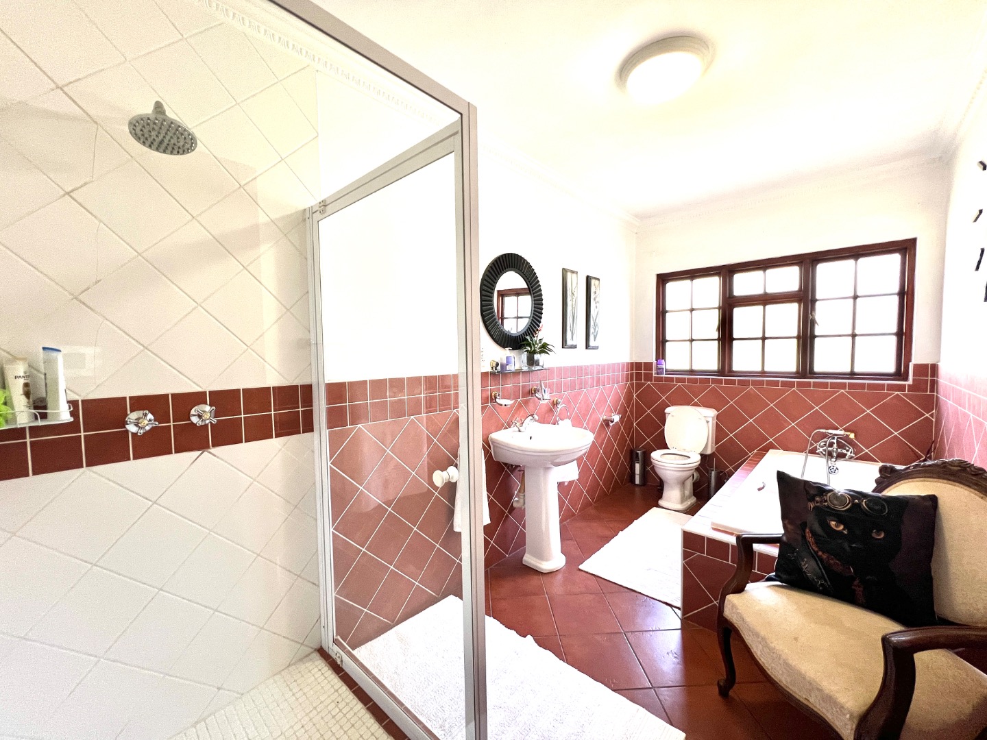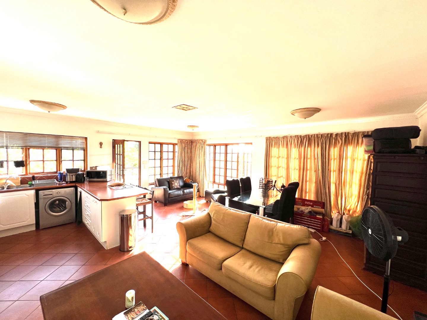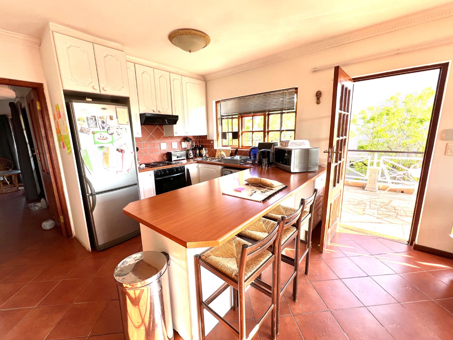 - A warm, farm-style kitchen, Gas Stove & electric Oven, serene garden views, flowing into a scullery with walk-in pantry, ample space for all your appliances, and direct access to the double garage.
