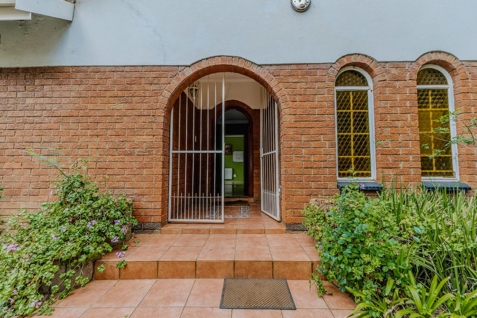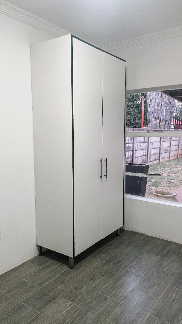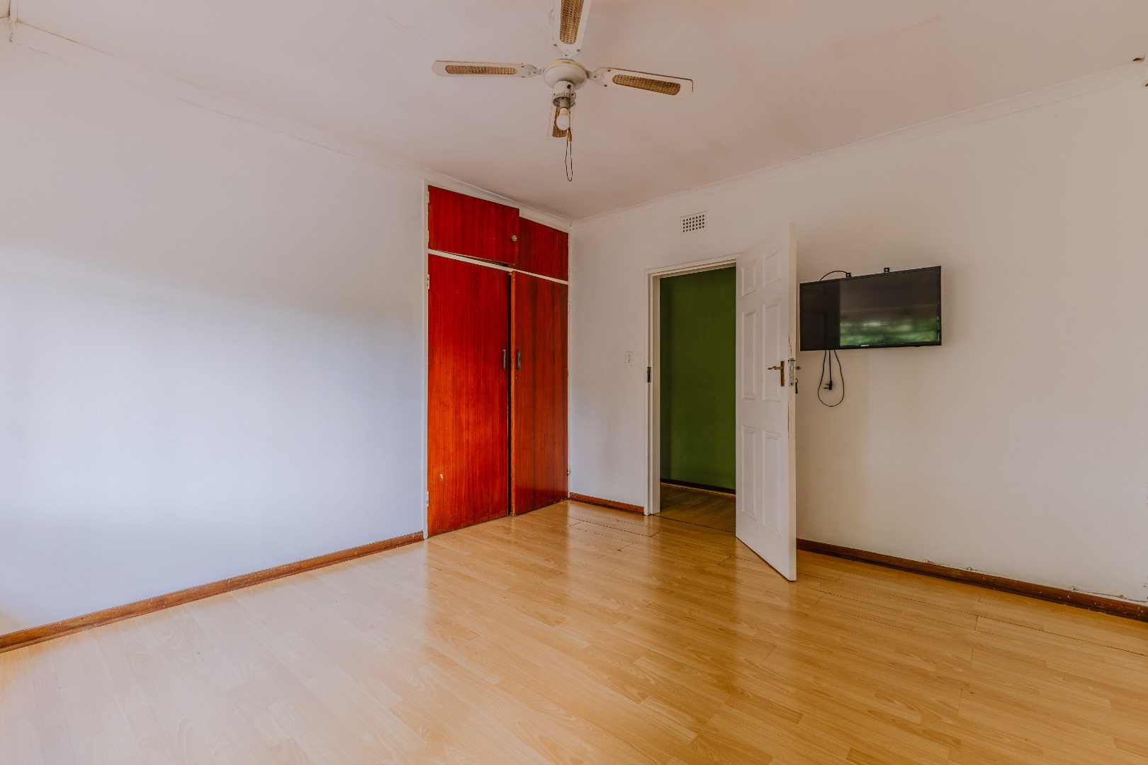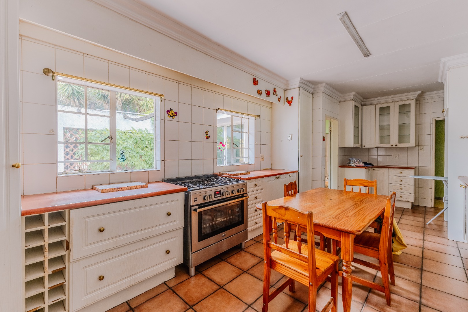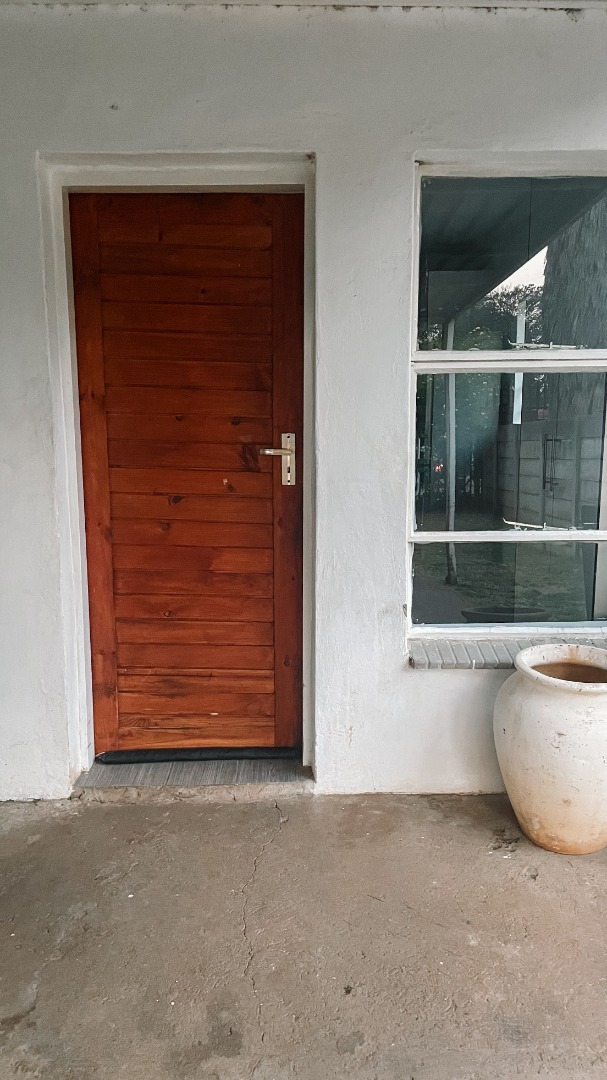 Outdoor living is a highlight, with a vast green lawn, a private swimming pool, and a unique thatch-roofed lapa, ideal for year-round entertainment and relaxation. Mature trees provide natural shade and privacy, creating a serene environment. The property is further enhanced by an irrigation system and a borehole, ensuring a lush garden with ease.