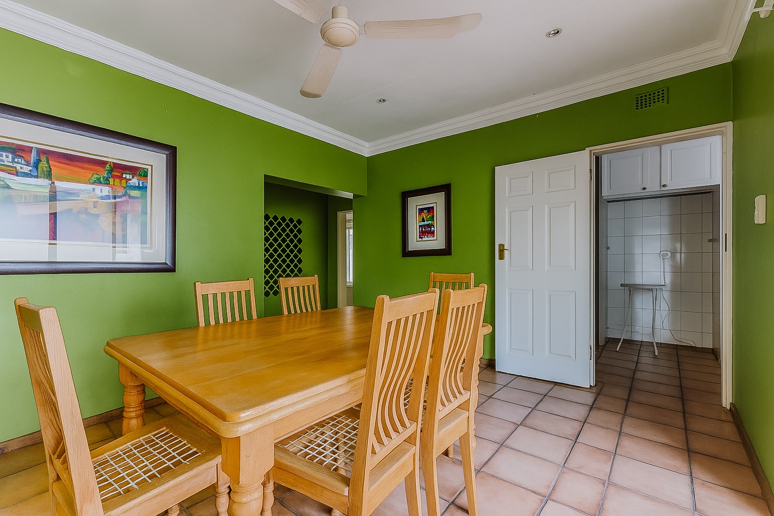 Step inside to a generous 335 sqm floor plan featuring durable tiled flooring throughout. The interior boasts a distinctive dining room, characterized by vibrant green walls and a functional built-in wine rack, perfect for entertaining. An additional study provides a dedicated space for work or quiet contemplation, catering to modern lifestyle needs.