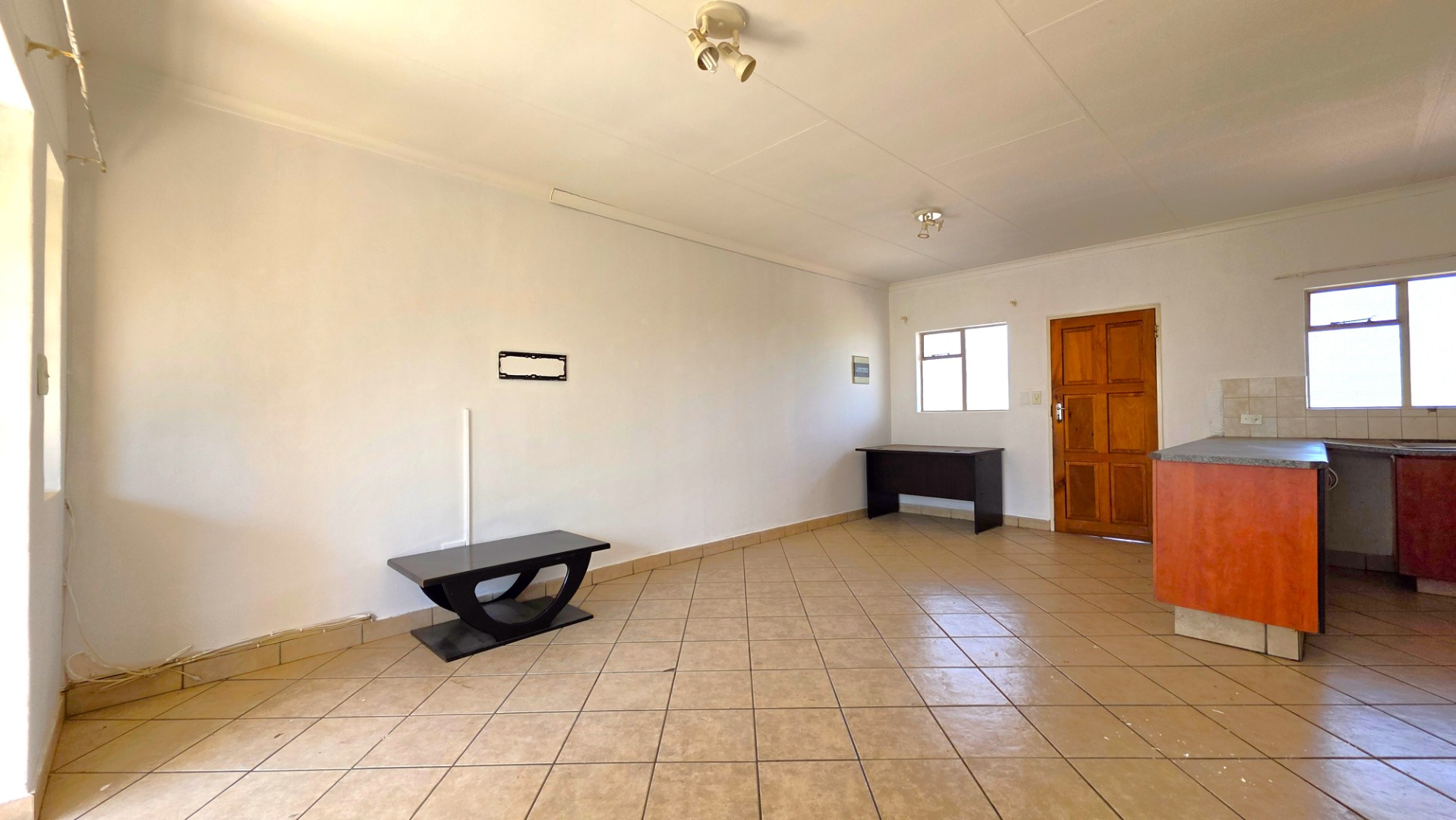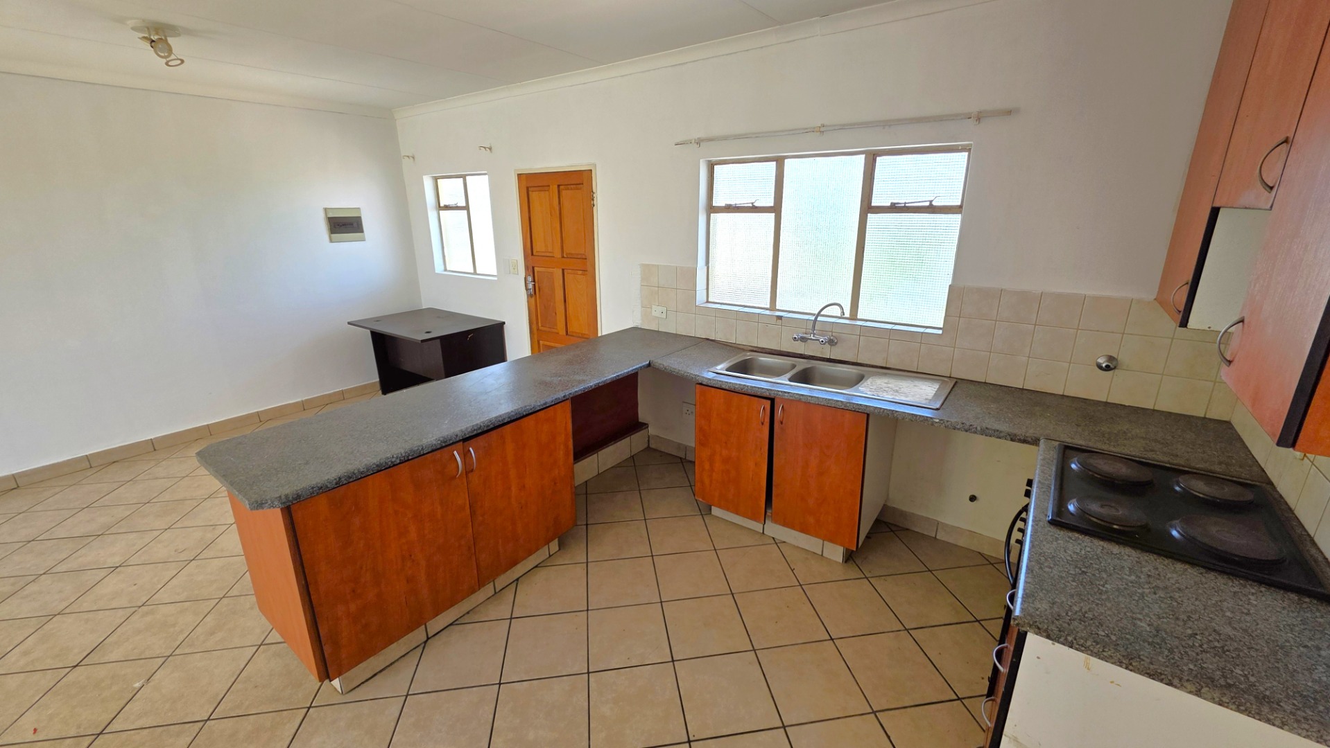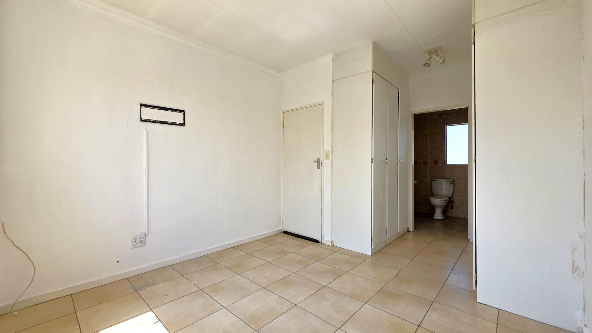 The apartment features two spacious bedrooms fitted with built-in cupboards, including a main bedroom with an en-suite bathroom. The open-plan layout seamlessly connects the kitchen and lounge, with ample space to accommodate a dining area and a double-door fridge, creating a functional and welcoming living environment.