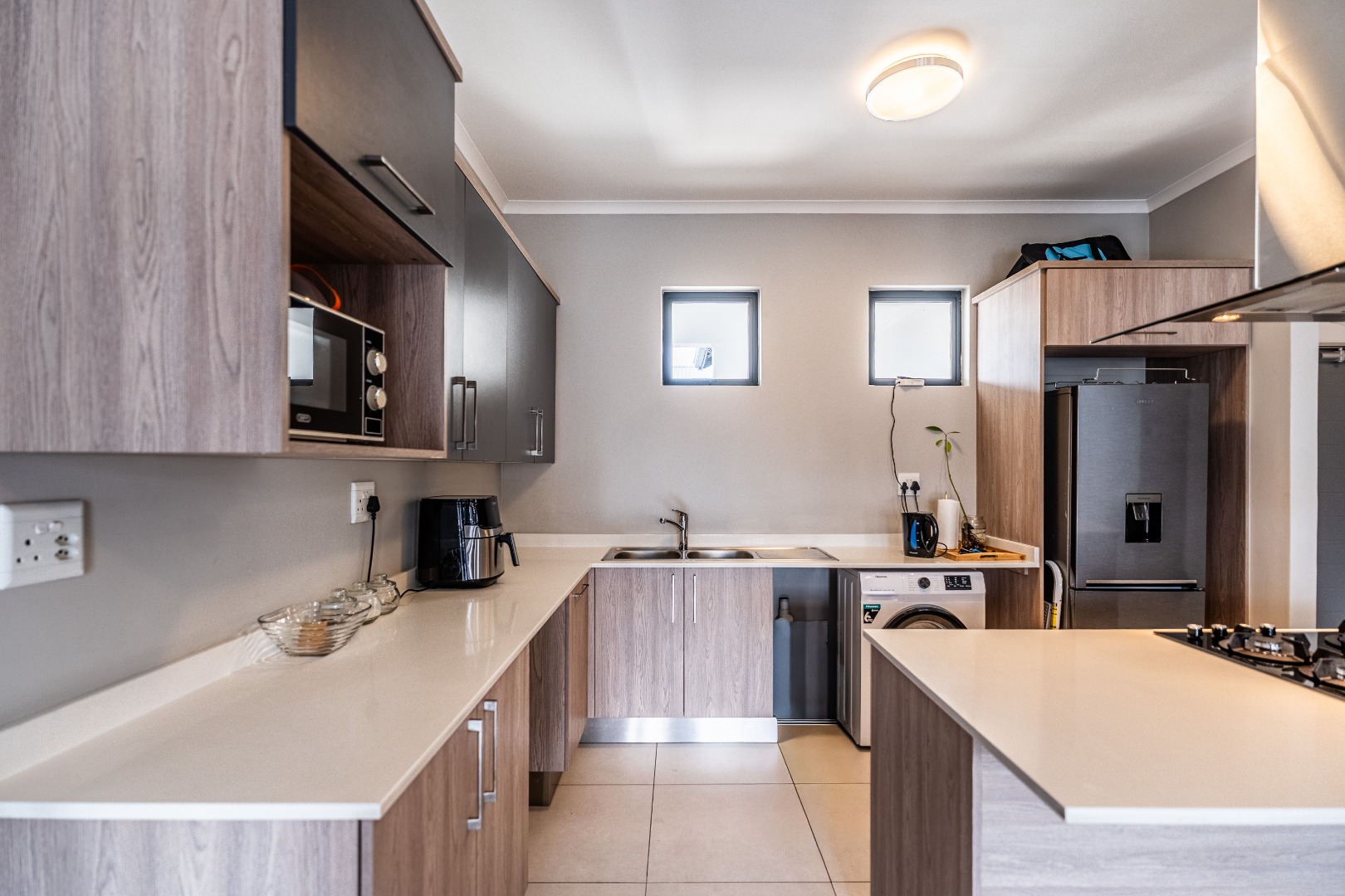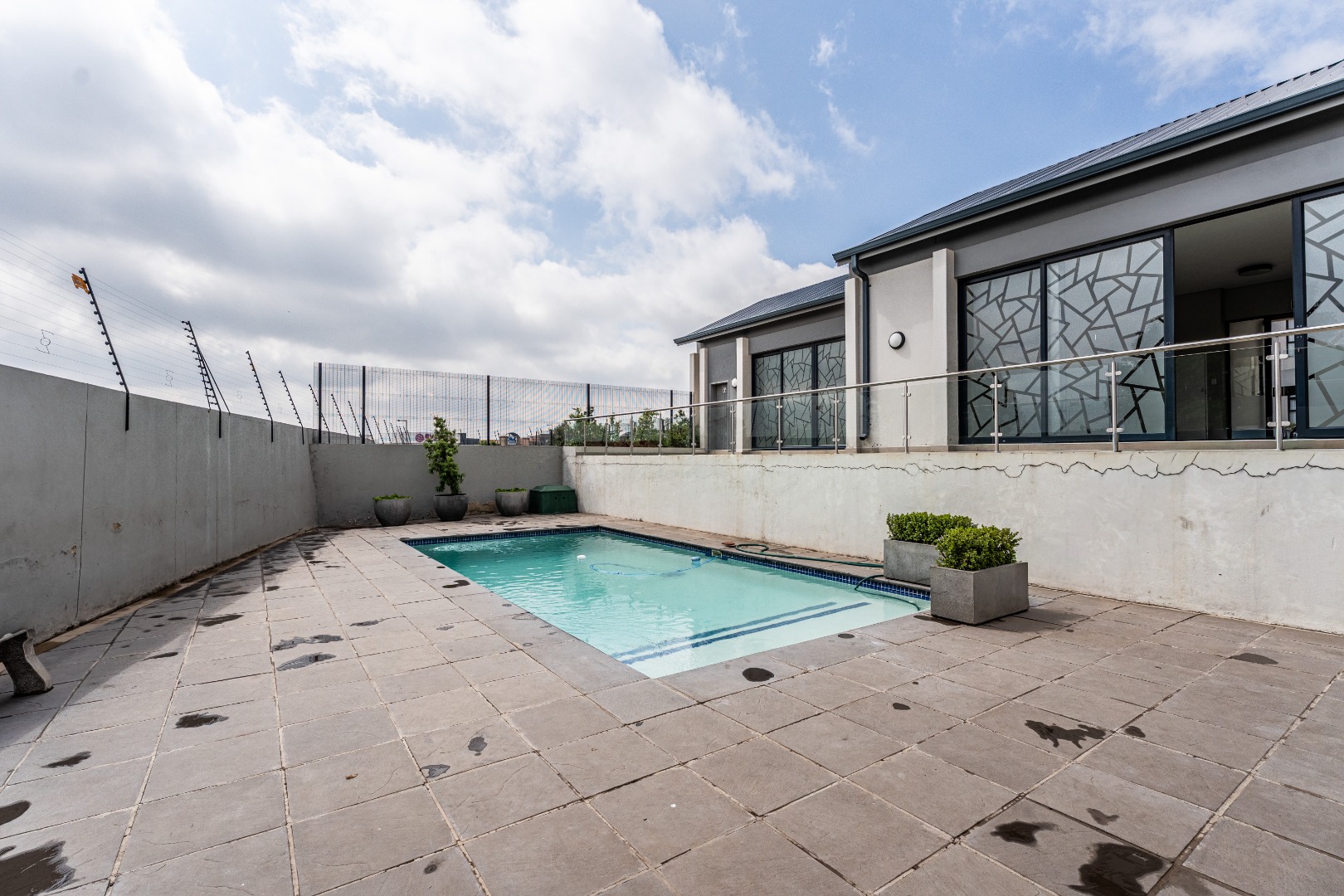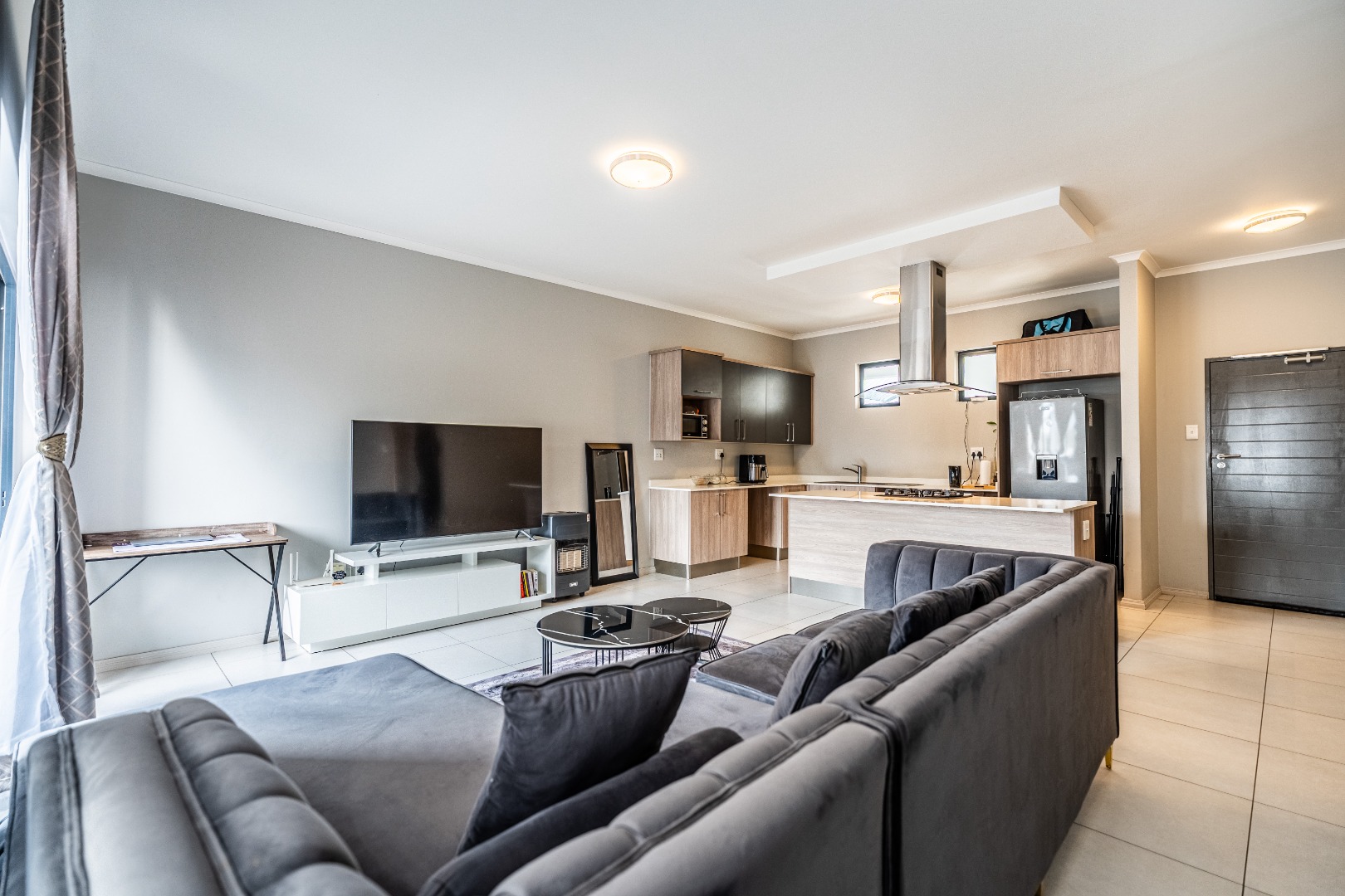 Discover this inviting 2-bedroom, 2-bathroom apartment located in the desirable Midridge Park, Midrand. This residential sale offers a comfortable and modern living experience within a secure complex. The interior boasts a well-appointed lounge area, providing a versatile space for relaxation and entertaining. The functional kitchen is designed for everyday convenience, ensuring a seamless culinary experience. The apartment features two comfortable bedrooms, each offering a tranquil retreat with neutral-coloured walls and durable tiled flooring. Modern zebra blinds adorn the windows, providing excellent light control and privacy. The two bathrooms are designed with a clean, contemporary aesthetic, featuring neutral tones. Each includes a vanity with basin and under-sink storage, and a built-in bathtub, complemented by natural light from high-set windows. Step outside to a private elevated space featuring a small rectangular swimming pool, perfect for leisure and relaxation. The outdoor area includes a spacious paved patio, ideal for enjoying the South African climate and offering distant scenic views. Modern stainless steel railings enhance the contemporary feel. Residents also benefit from access to a clubhouse, adding to the lifestyle amenities available within this complex. Security is paramount in this gated community, offering peace of mind with 24-hour security, a security post, and a secure fence with a security gate. This property is part of a wellness estate, promoting a healthy and active lifestyle. Enjoy the benefits of country living within a well-maintained complex, complete with aquatic activities for residents. Situated in the suburban area of Midridge Park, Midrand, this location provides convenient access to local amenities and transport routes. Midrand is a vibrant city in South Africa, known for its growth and accessibility. Key Features: • 2 Bedrooms • 2 Bathrooms • 1 Lounge • 1 Kitchen • Private Swimming Pool • Paved Patio Area • 1 Parking Bay • 24-Hour Security • Clubhouse Access • Scenic Views