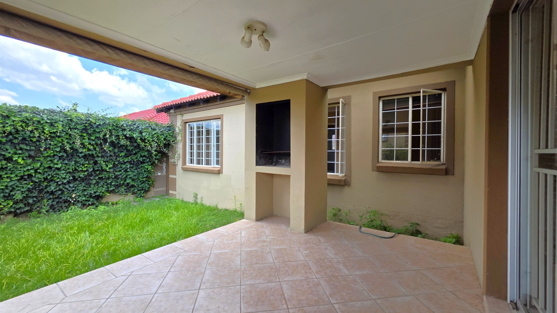 Step outside to a well-maintained wrap-around garden and a lovely covered patio with a built-in braai overlooking the back garden, ideal for relaxing or hosting guests.