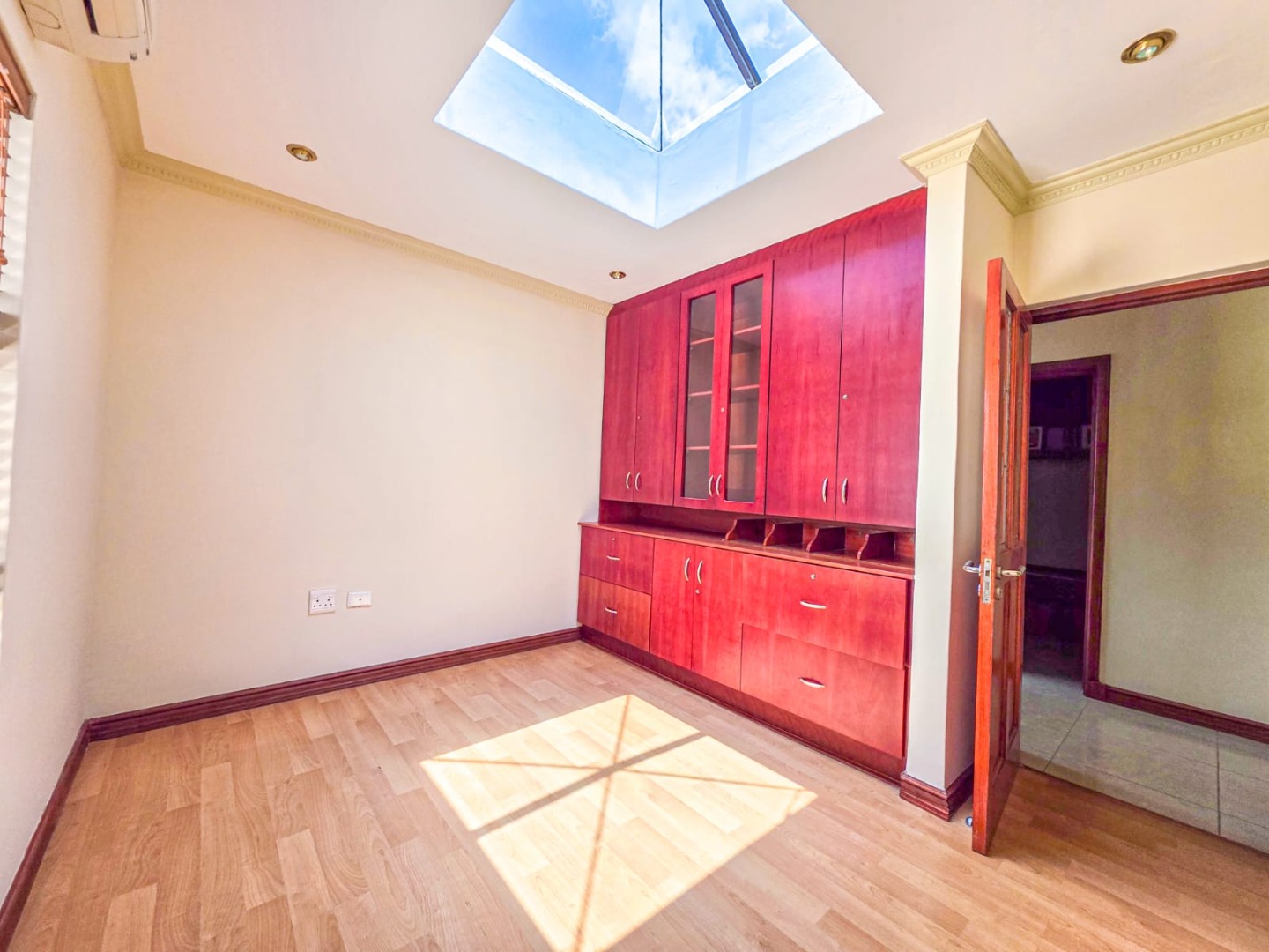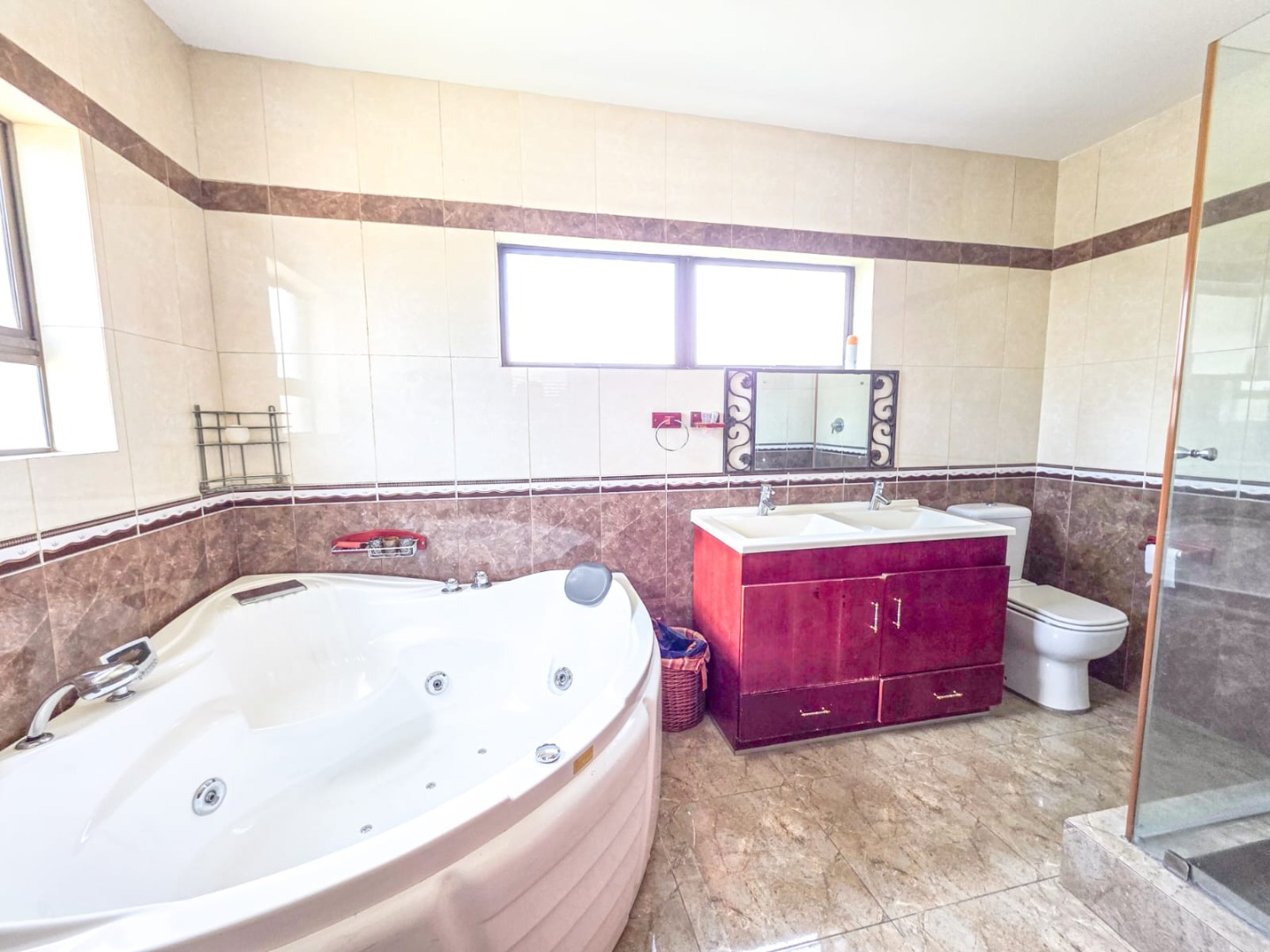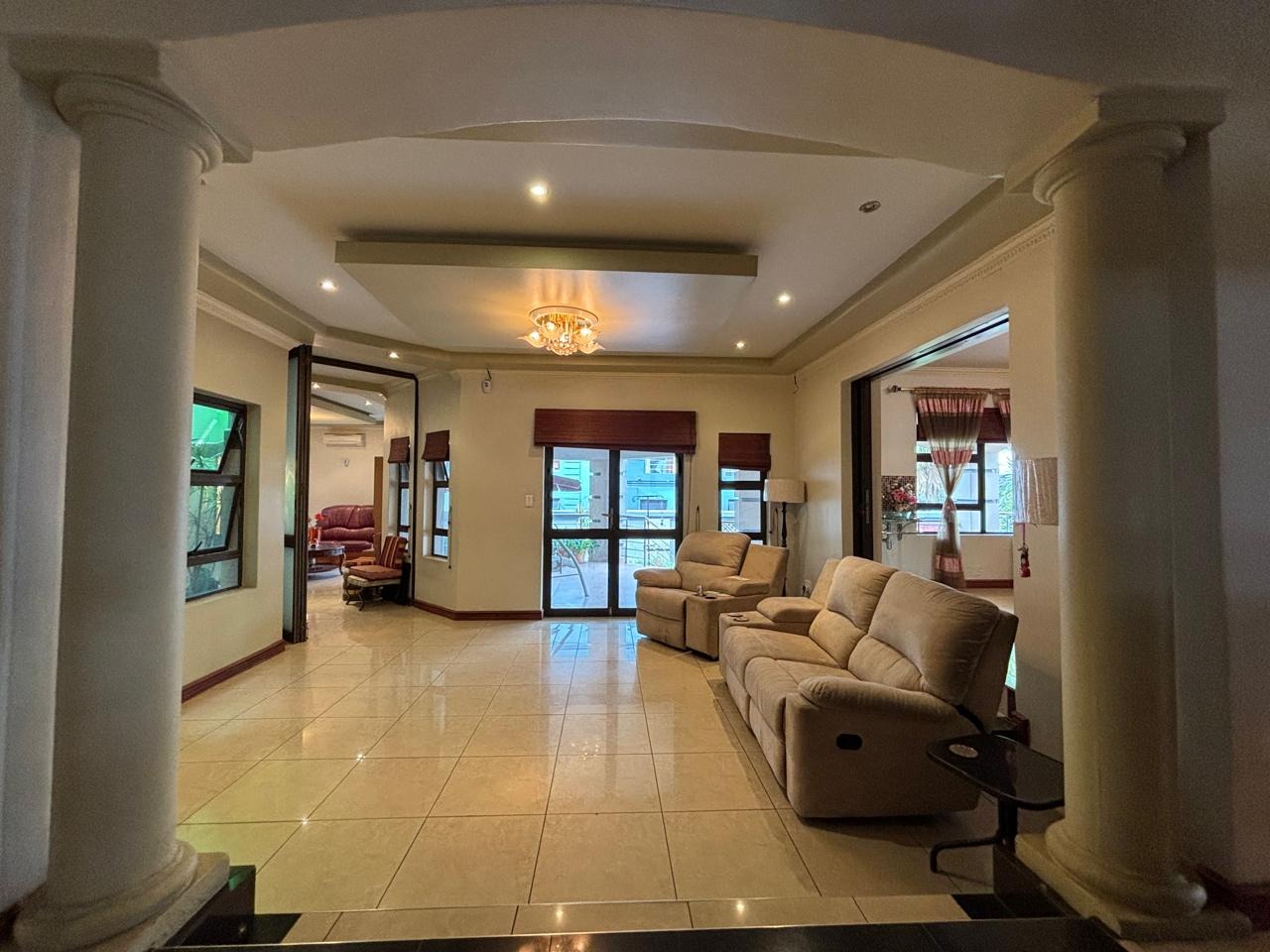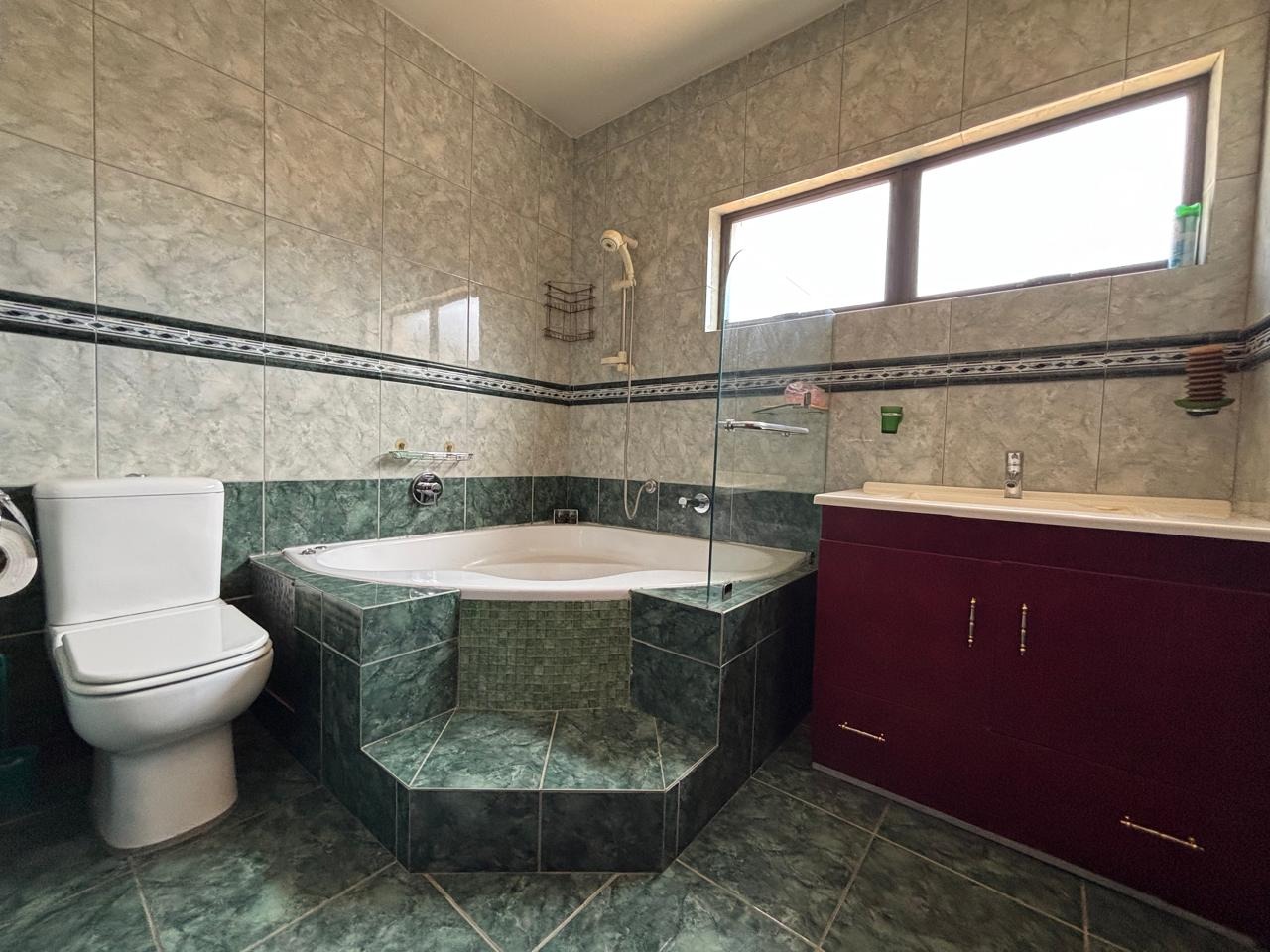 Discover this expansive 4-bedroom, 4.5-bathroom residence spanning 486 sqm in Savannah Hills Estate, Midrand. It features three lounges, a dining room, and a family TV room, all with tiled flooring and natural light. The spacious kitchen offers extensive cabinetry, granite-style countertops, a breakfast bar, and a pantry. A dedicated study is also present. Outdoors, a large tiled patio, private garden, and swimming pool await. This pet-friendly property includes a triple garage and ensures peace of mind with 24-hour security and access gates within the estate.