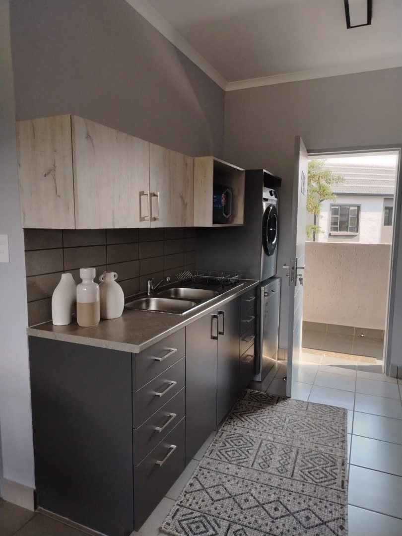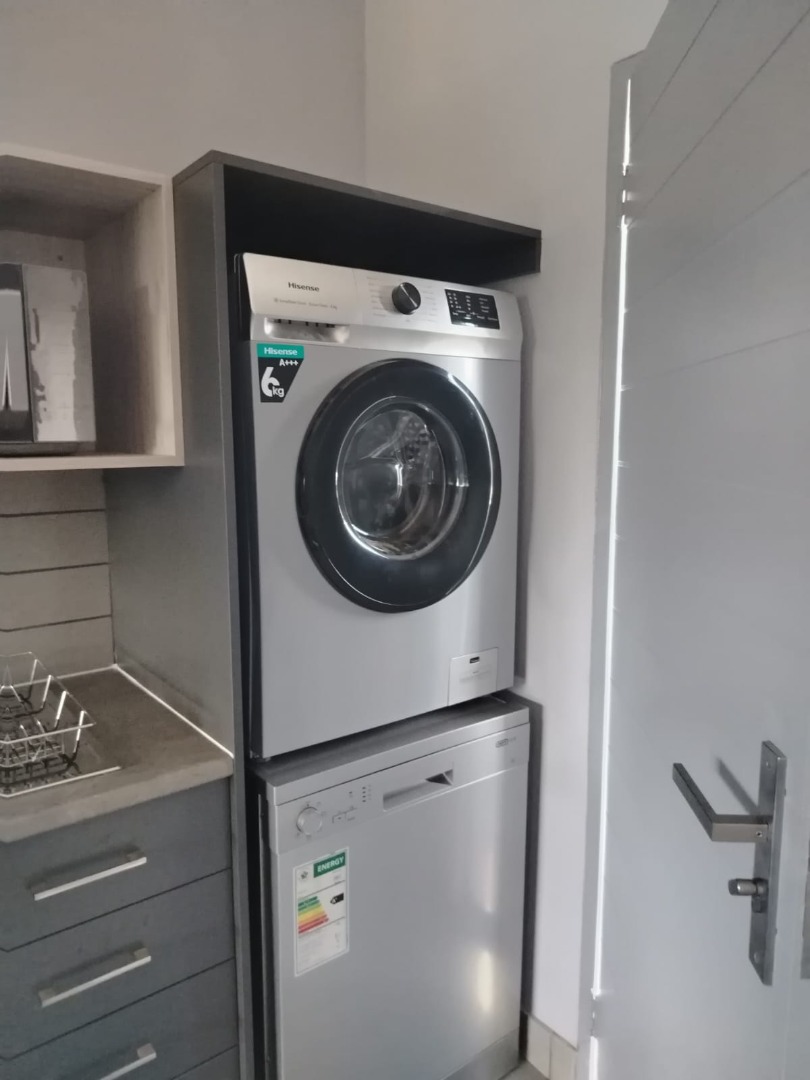 Open-plan kitchen with ample space for laundry machine and dishwasher