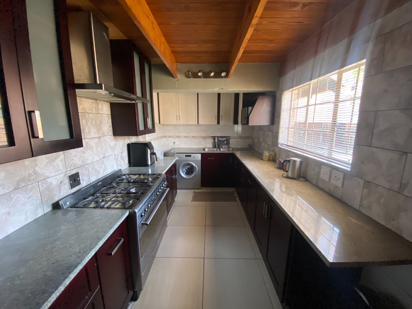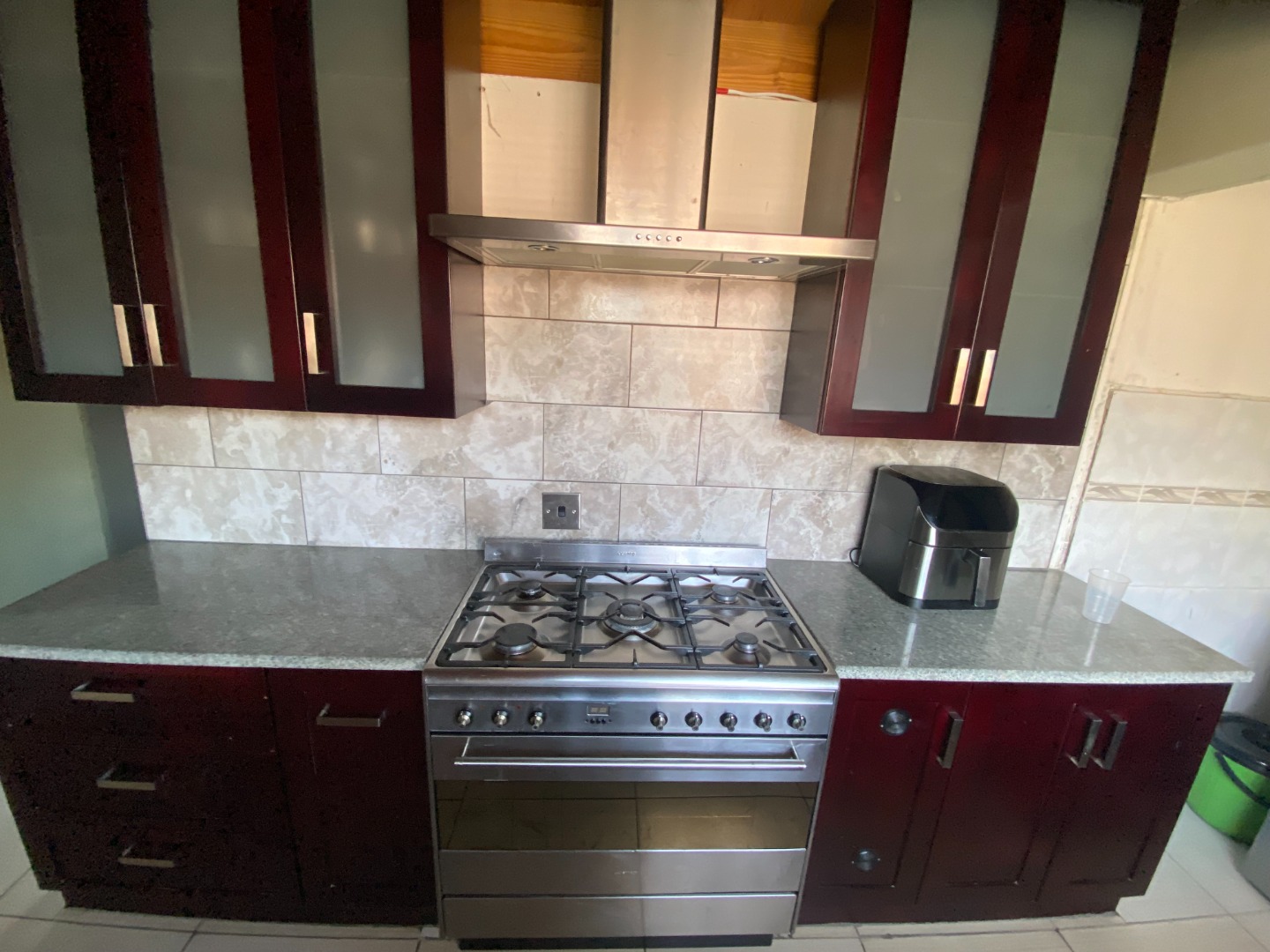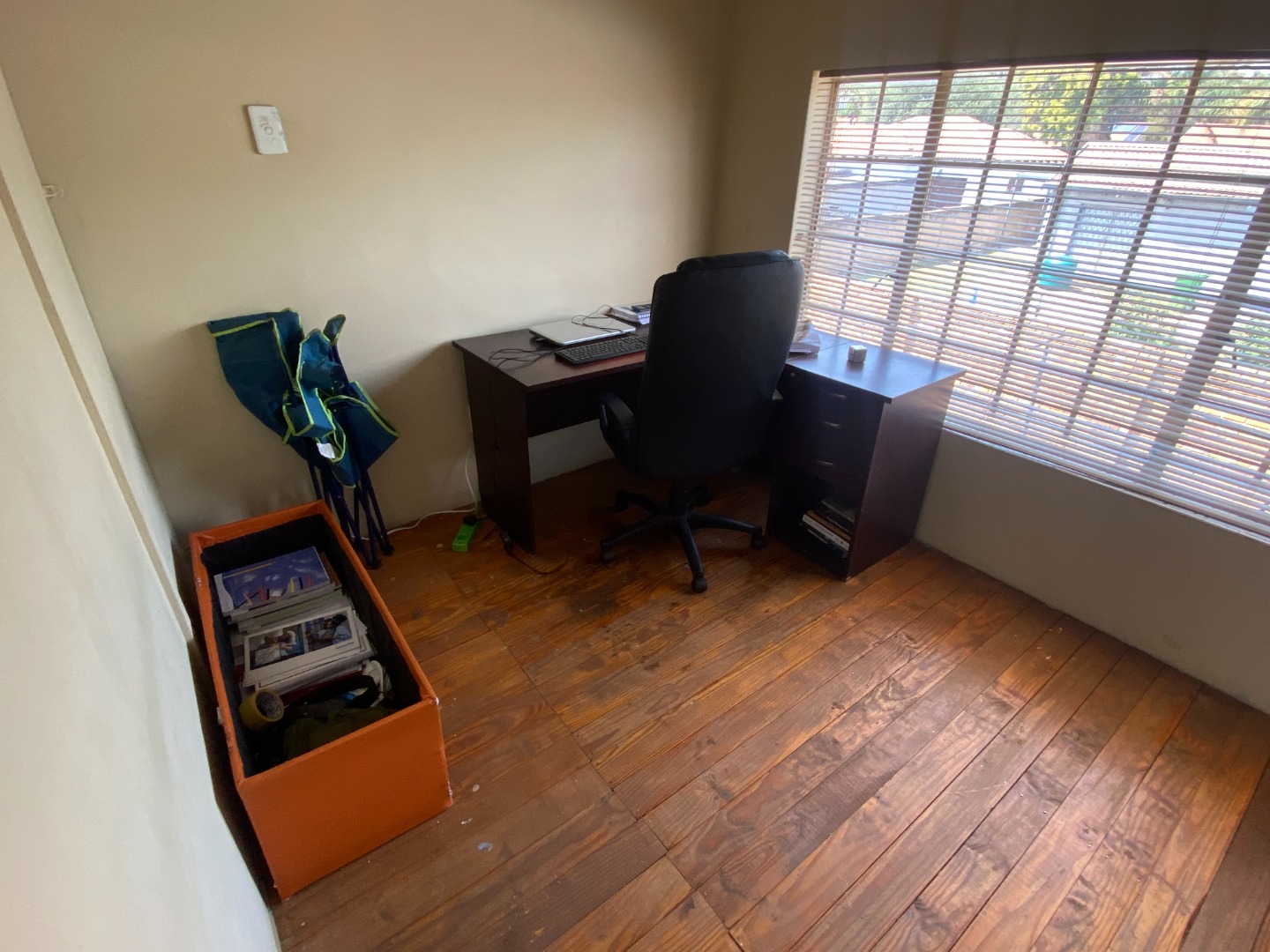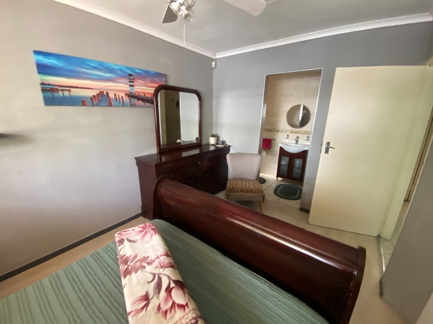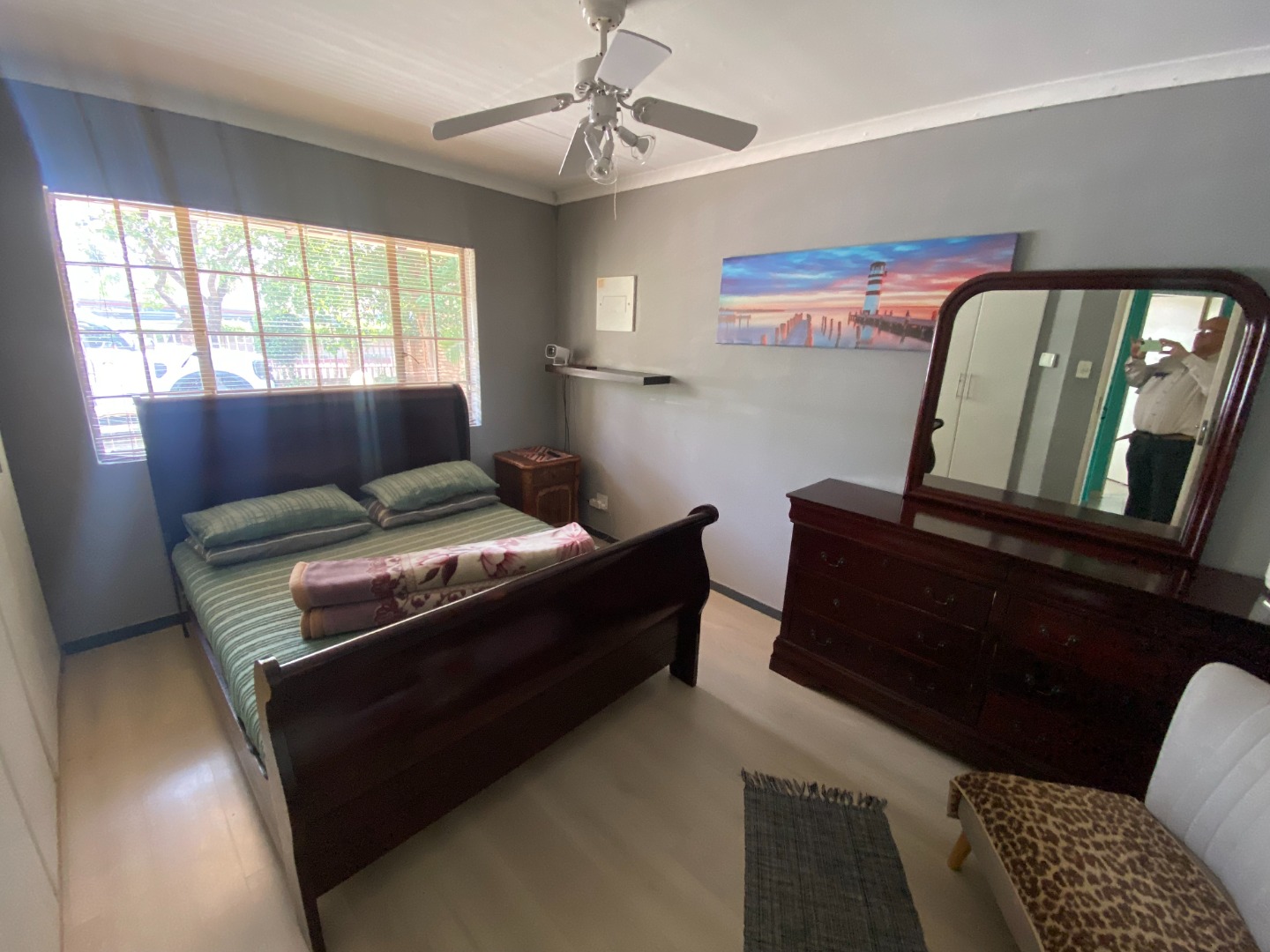 This fully walled well-maintained 3-bedroom home is situated in Annlin. The property is walled all around with automated gate in the front. You enter the home through a security door into the spacious living area. The large kitchen has built-in cupboards, granite tops, Gas Stove with gas hob and extractor fan, washing machine/dishwasher outlet, sink with double basin. The floors in the living room, passage and kitchen are tiled. Ceilings of the living room and kitchen are wood.
