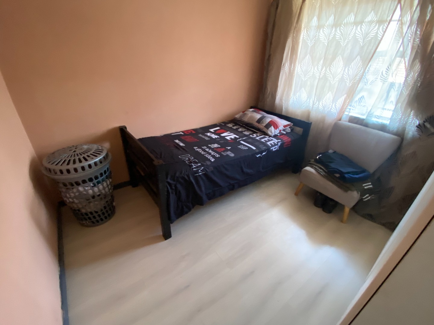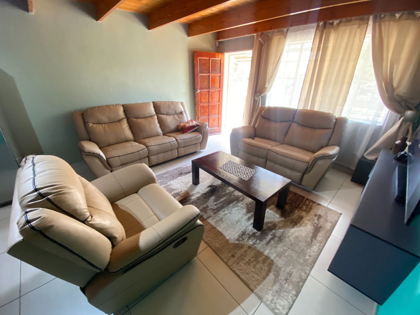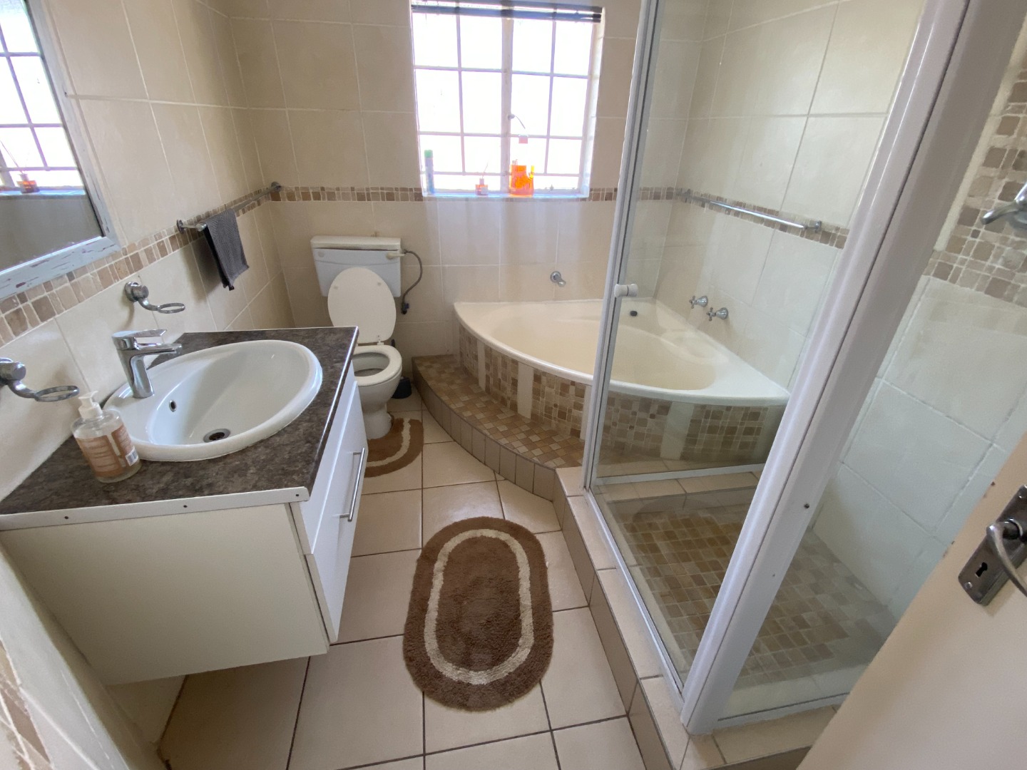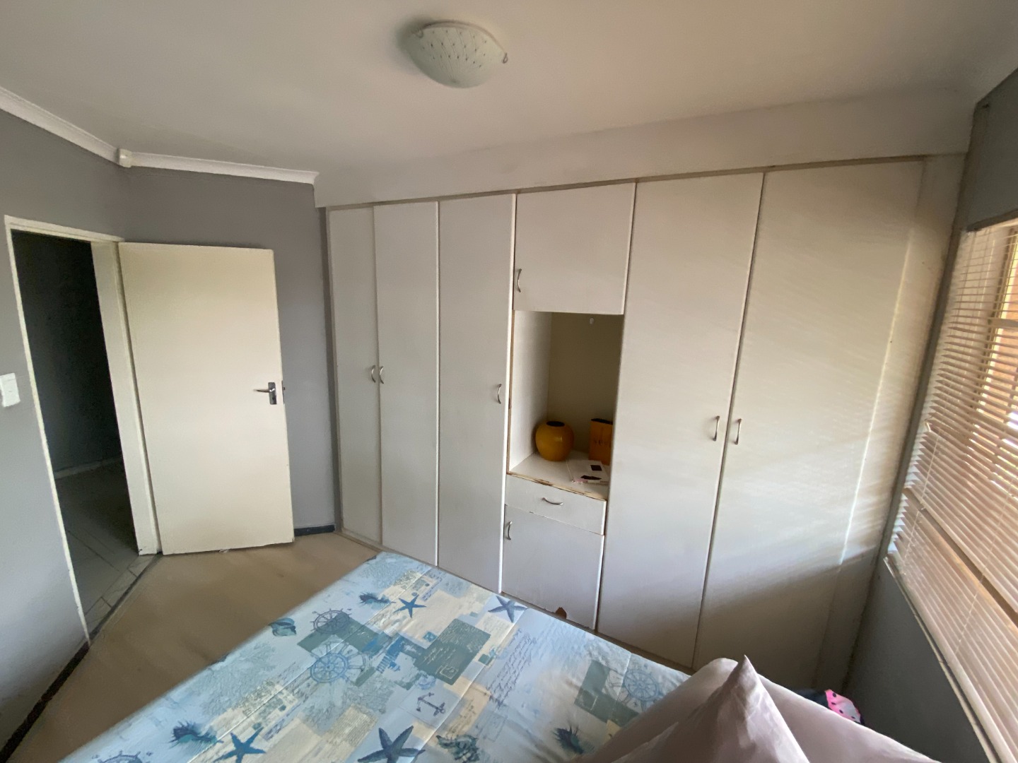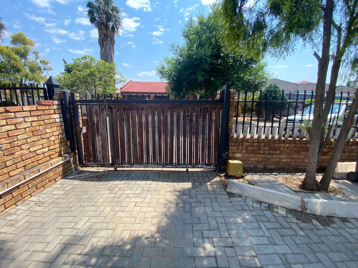 This fully walled well-maintained 3-bedroom home is situated in Annlin. The property is walled all around with automated gate in the front. You enter the home through a security door into the spacious living area. The large kitchen has built-in cupboards, granite tops, Gas Stove with gas hob and extractor fan, washing machine/dishwasher outlet, sink with double basin. The floors in the living room, passage and kitchen are tiled. Ceilings of the living room and kitchen are wood.