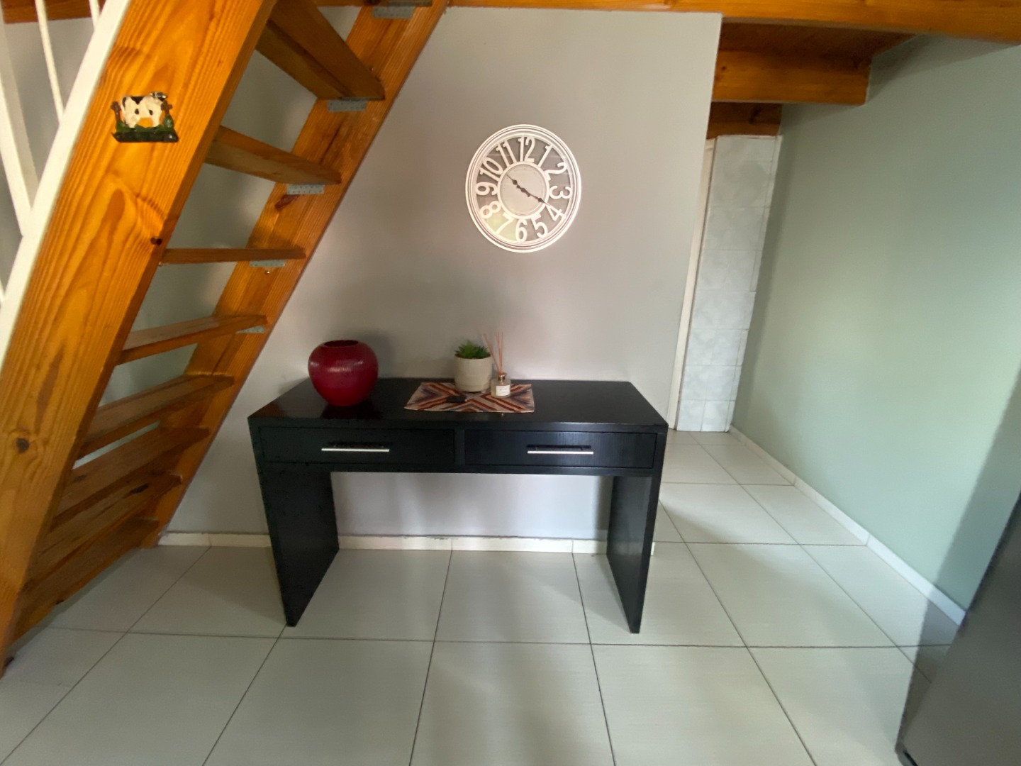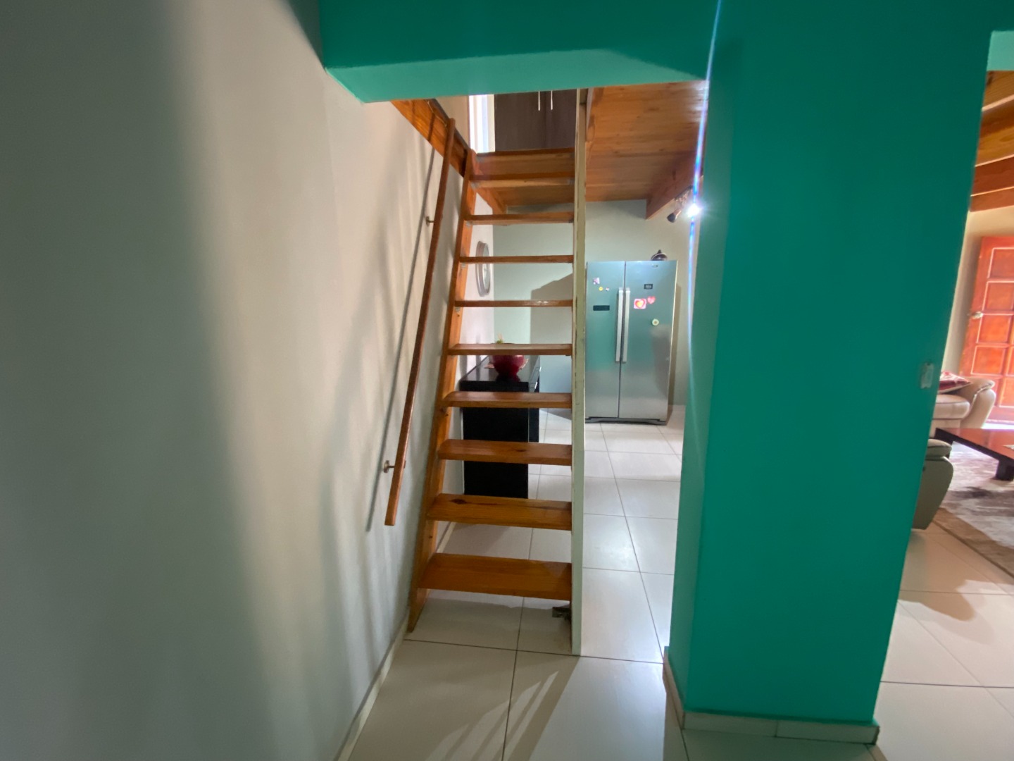 There is a loft accessed by wooden stairs. There is a spacious family room and a study. Both rooms have built-in cupboards, and the floors are from wood.