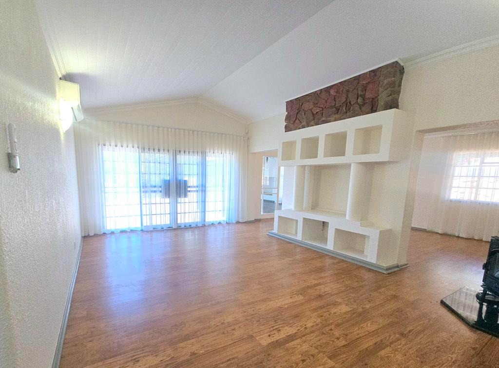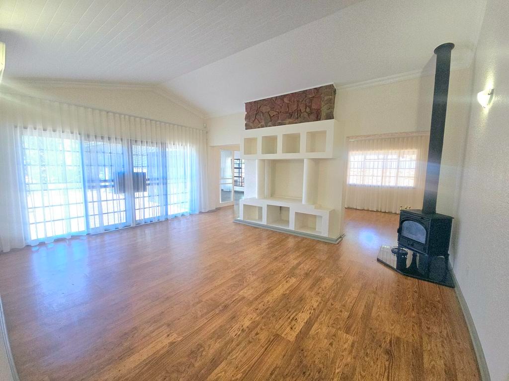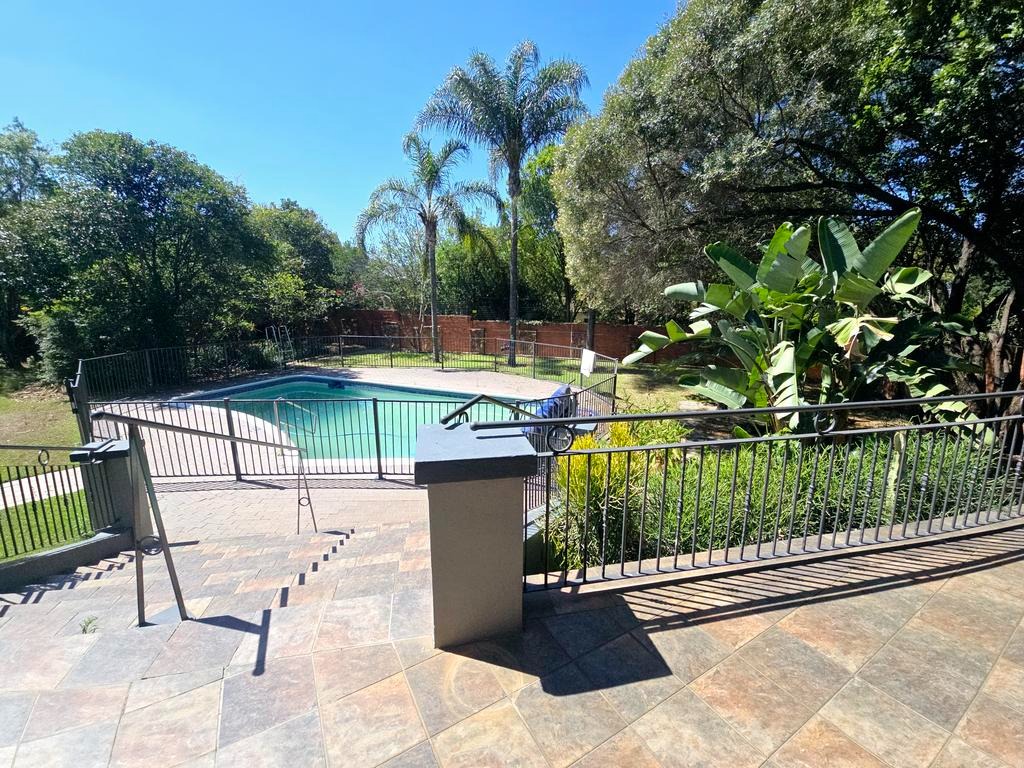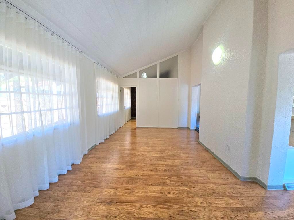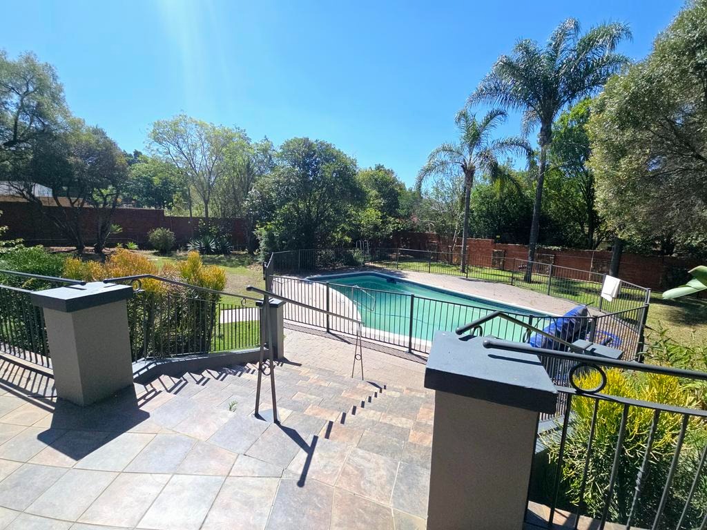 This expansive 4-bedroom, 4-bathroom residence, with three en-suite, offers generous living in the desirable suburban area of Ashlea Gardens, Pretoria. Spanning a substantial 384 sqm under roof on a 1980 sqm erf, this home is designed for comfort and functionality. The interior boasts two spacious lounges and a distinct dining area, providing ample room for both relaxation and entertaining. A large entertainment area opening to a large patio overlooking the pool. High vaulted ceilings with exposed wooden beams creates an inviting atmosphere, complemented by abundant natural light from large windows and sliding doors. Air conditioning ensures year-round comfort.